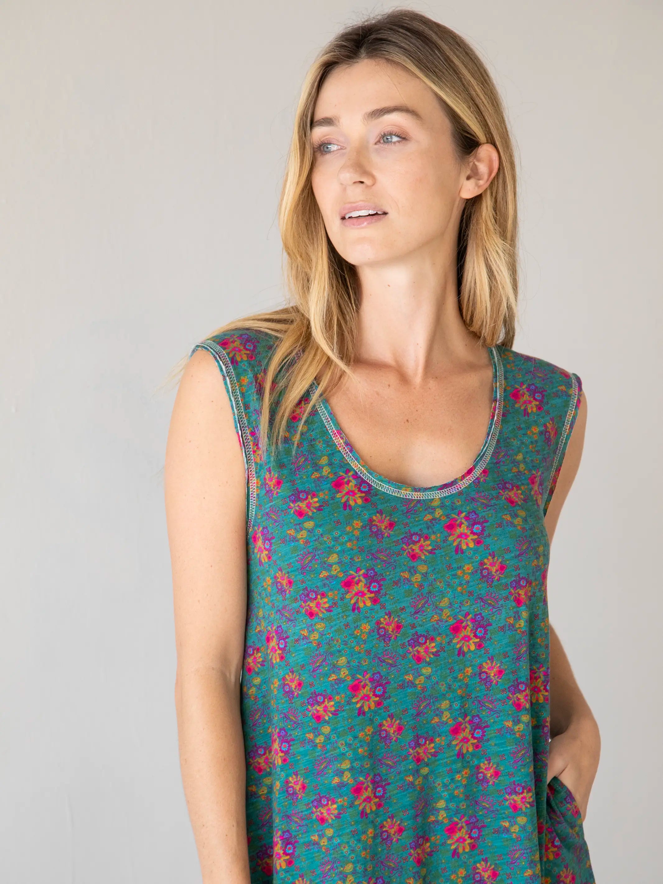 Rowan Top - Cream Turquoise Mix