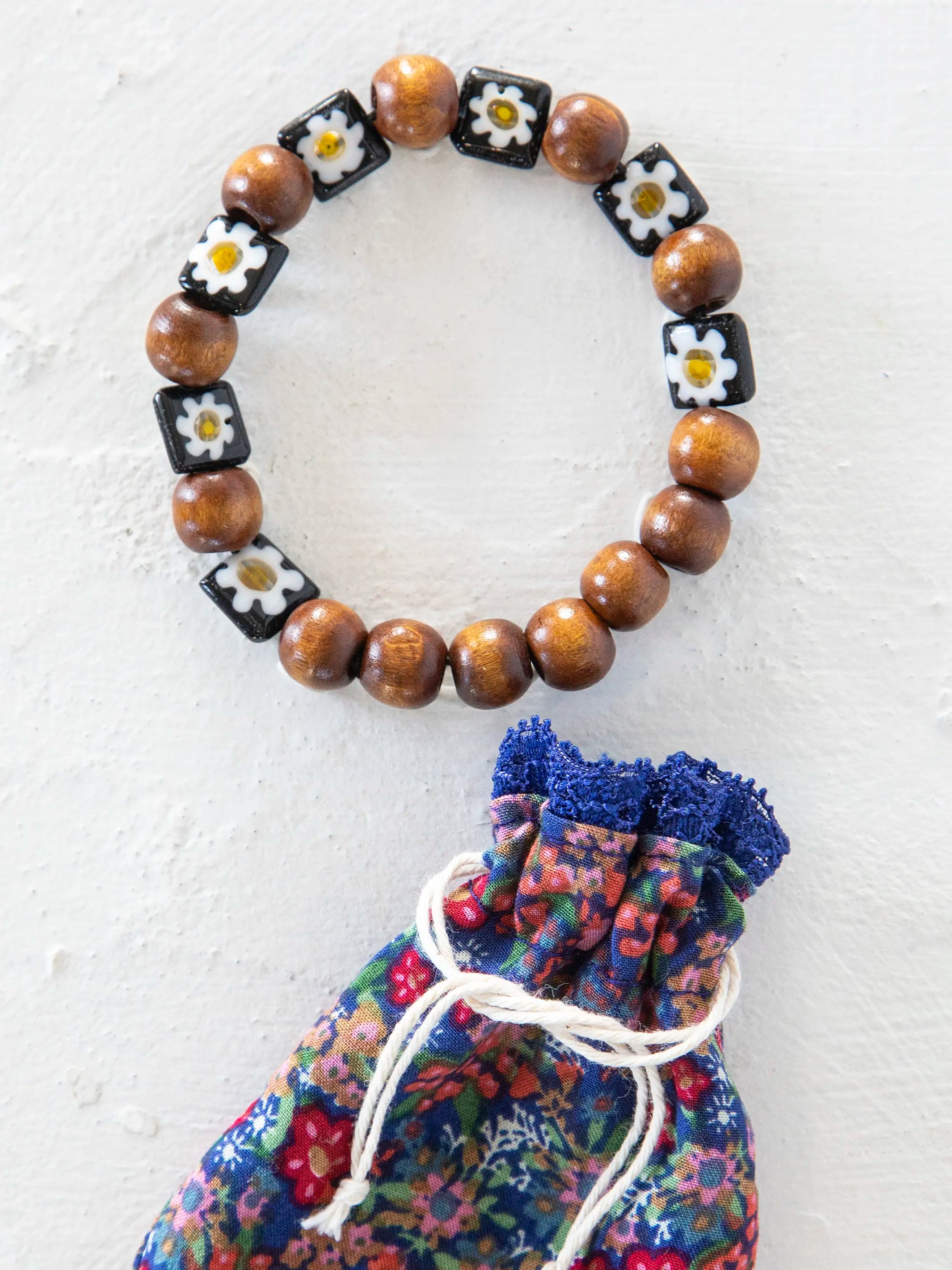 Millefiori & Wood Beaded Bracelet - Black