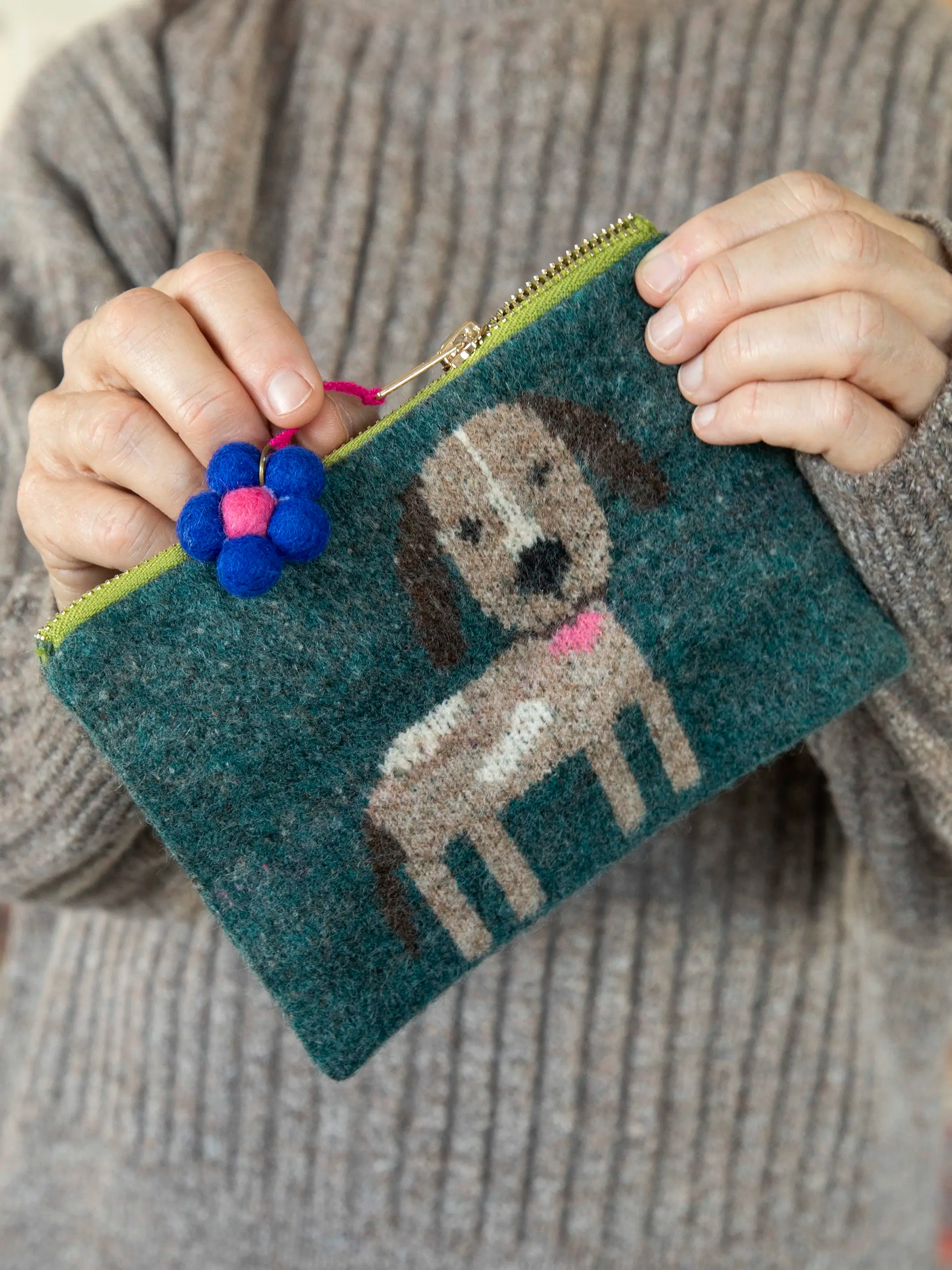 Intarsia Sweater Pouch - Dog