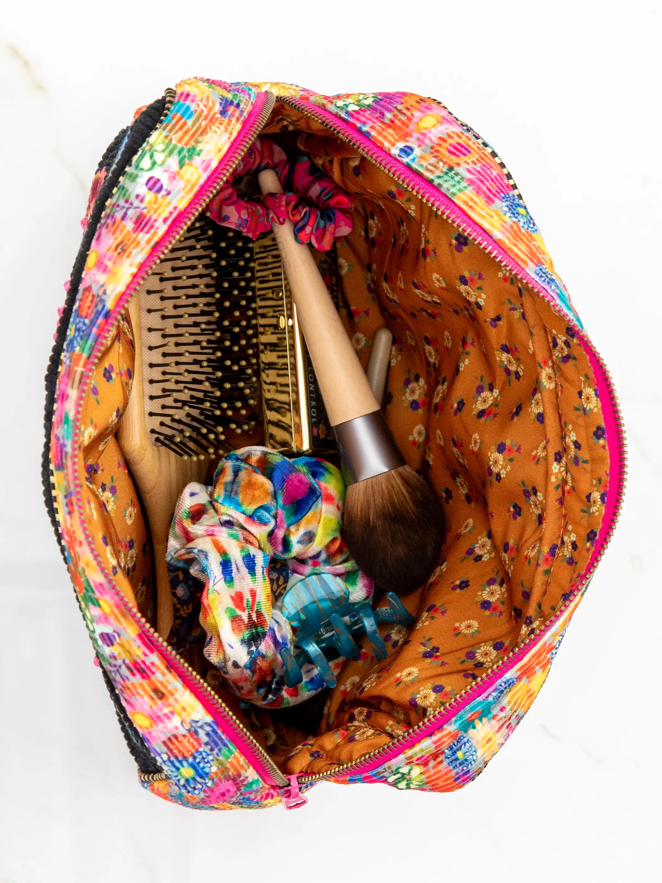 Puffy Cosmetic Pouch - Rainbow Cream Floral