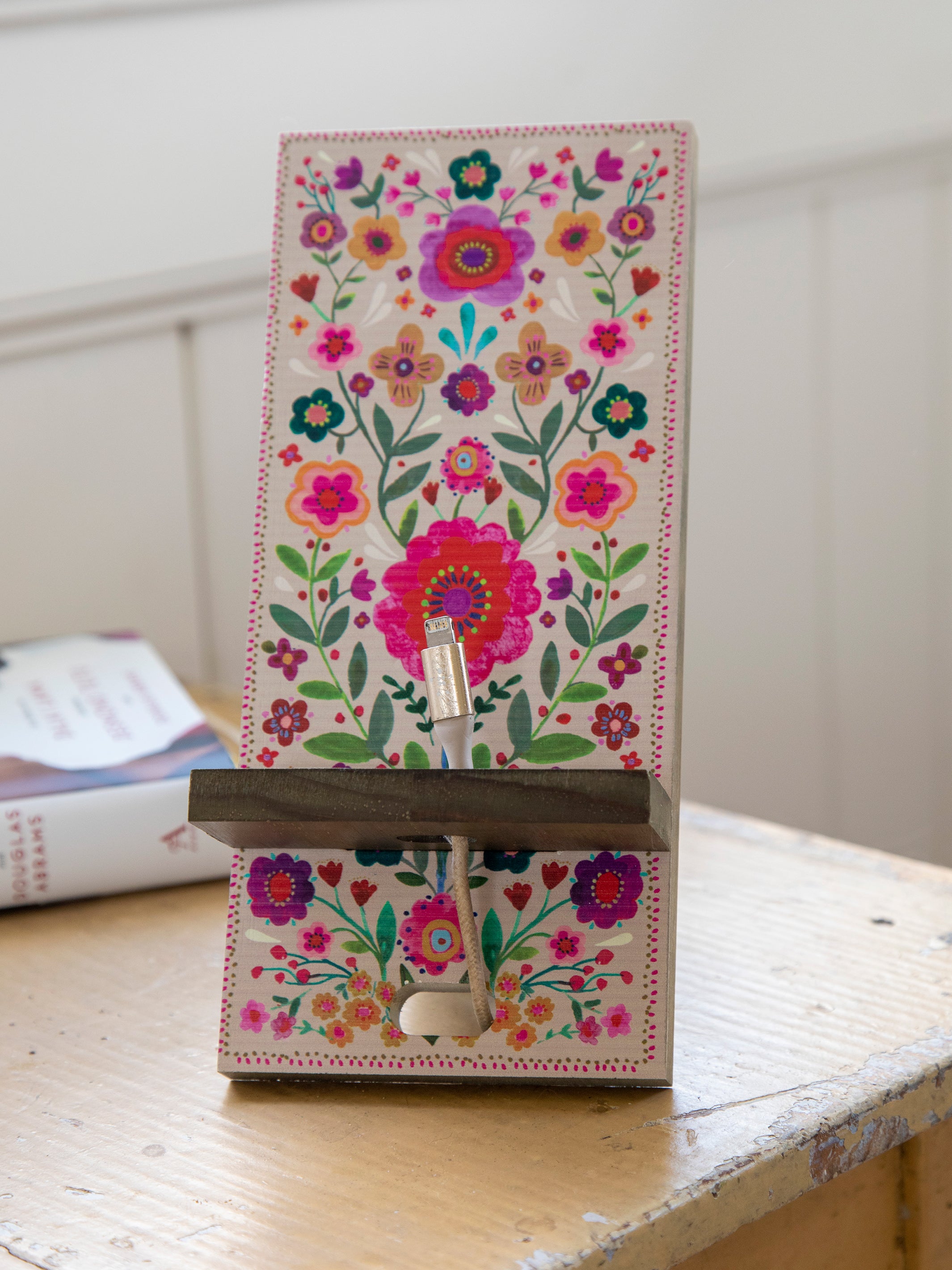 Wooden Phone Stand - Folk Flower