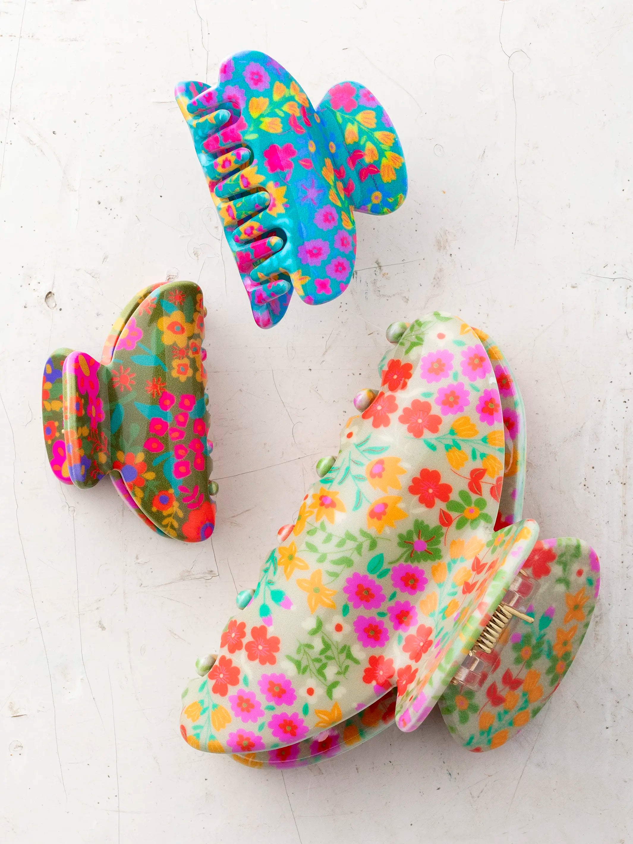 Flora Claw Clips, Set of 3 - Cream Mustard Coral Floral