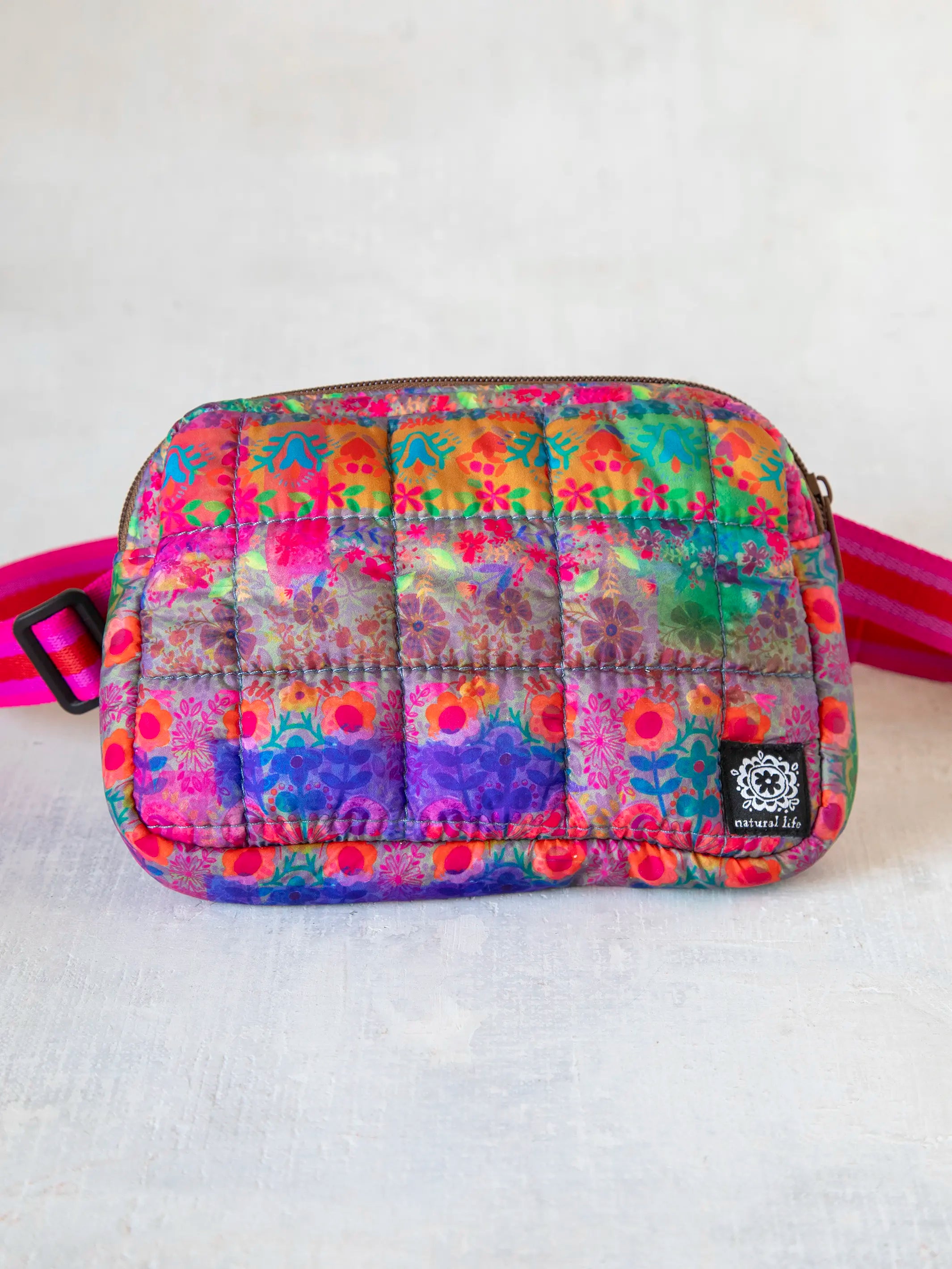 Everyday Puffy Fanny Pack - Purple Pink Floral Border
