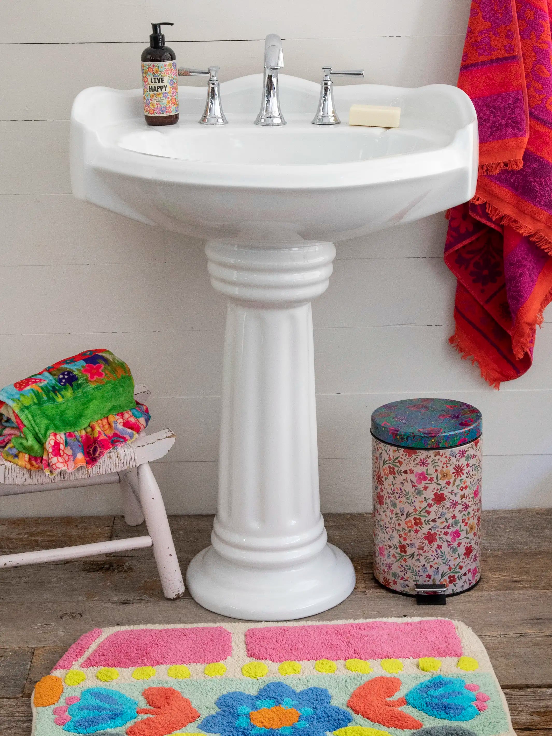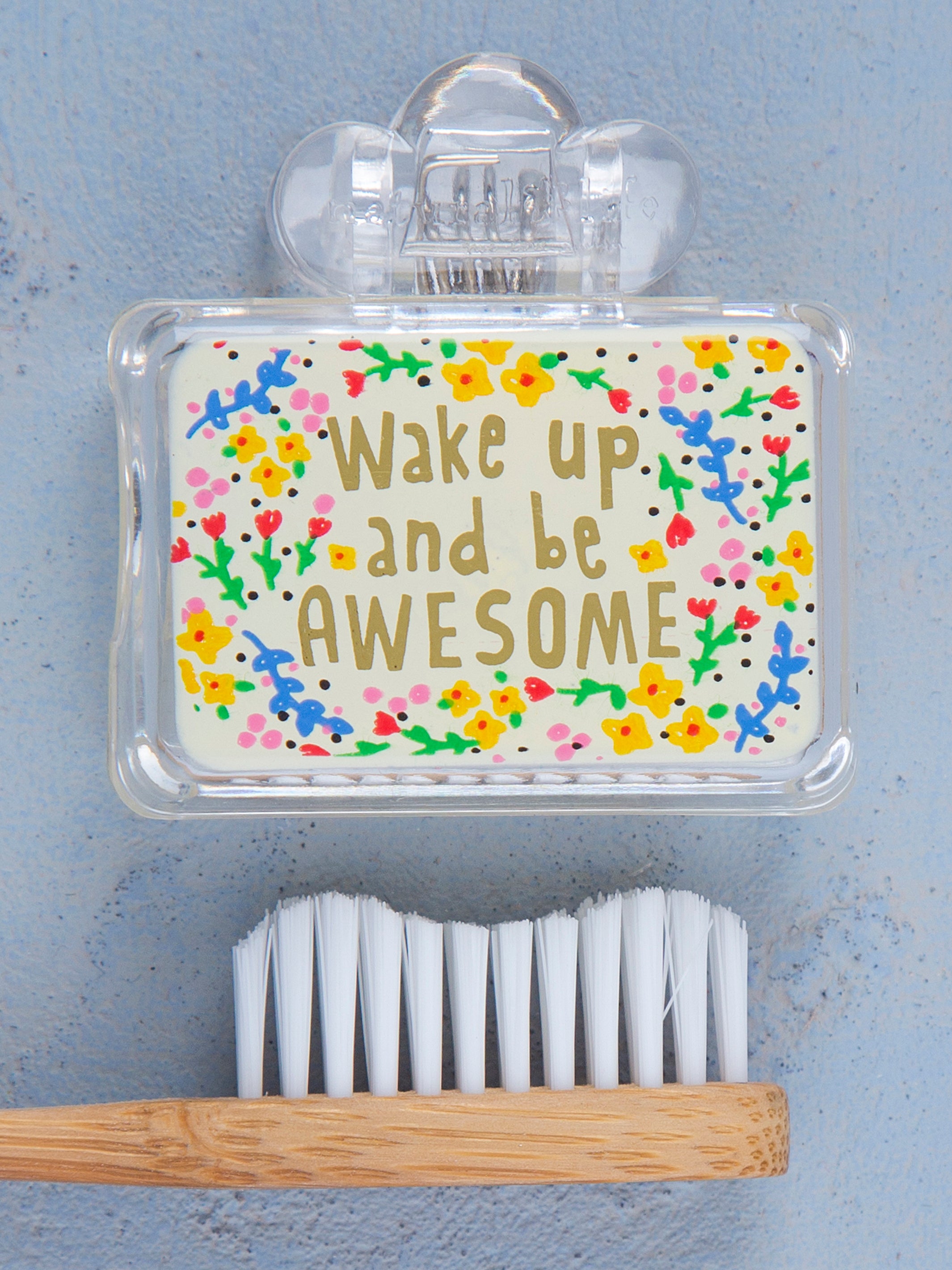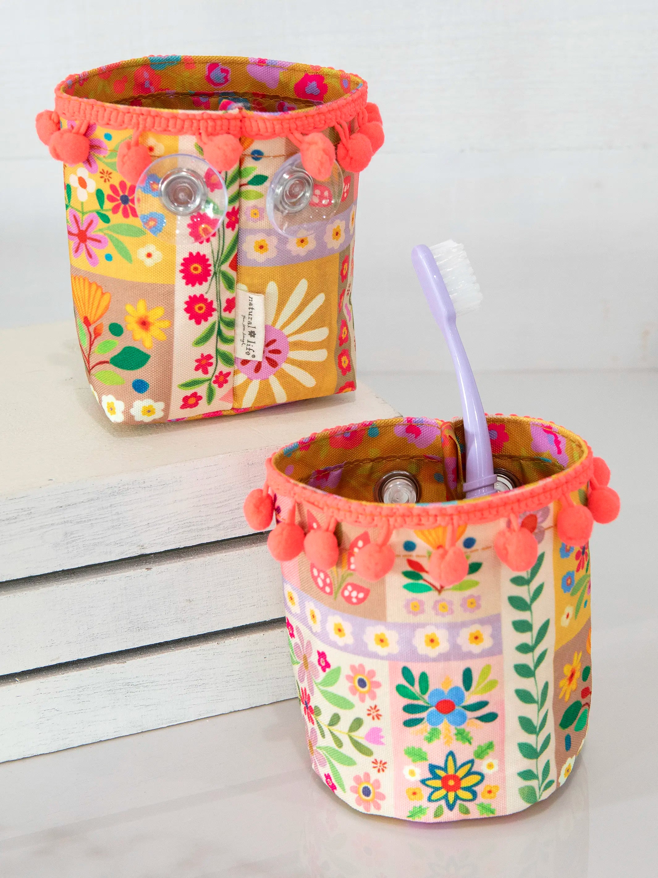 Suction Mounted Toothbrush Holder - Pink Folk Flower
