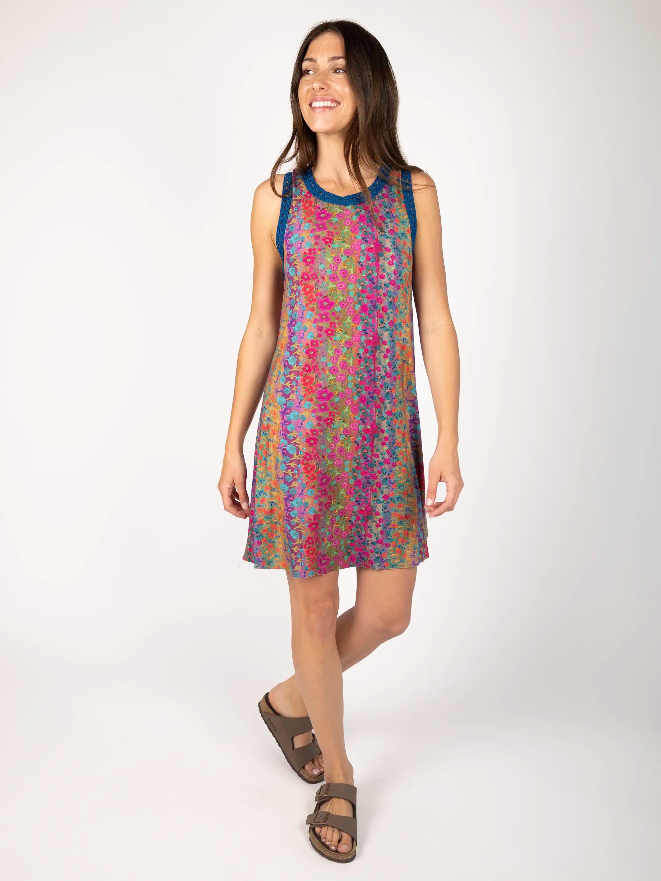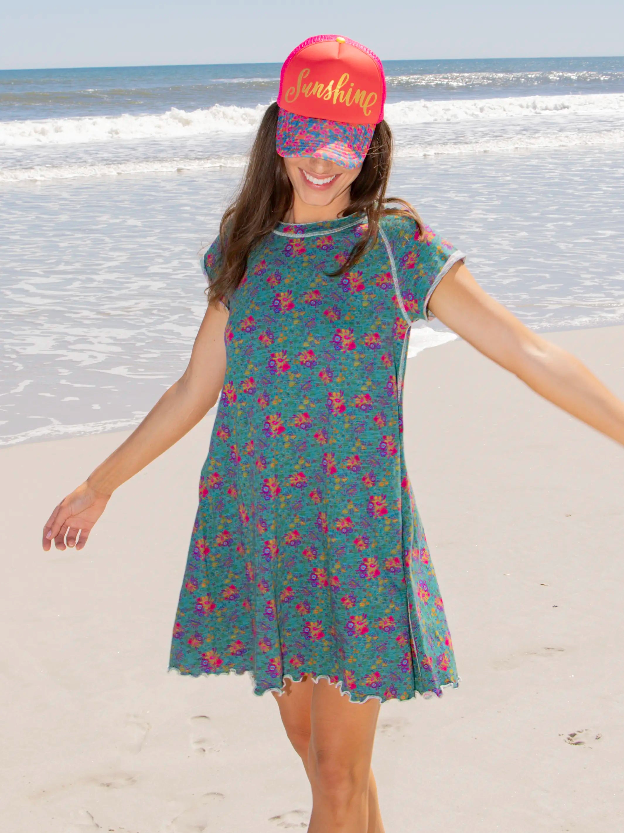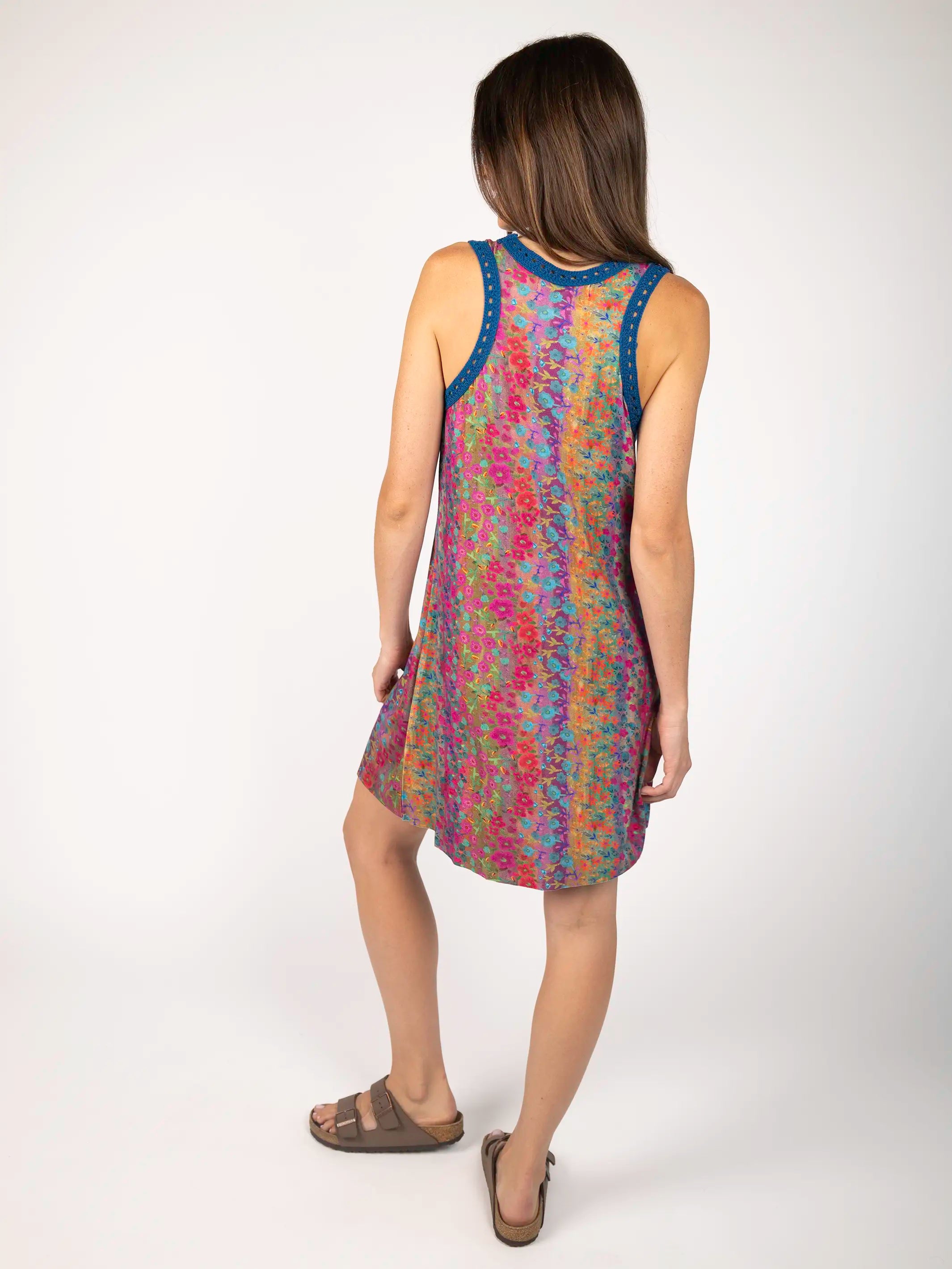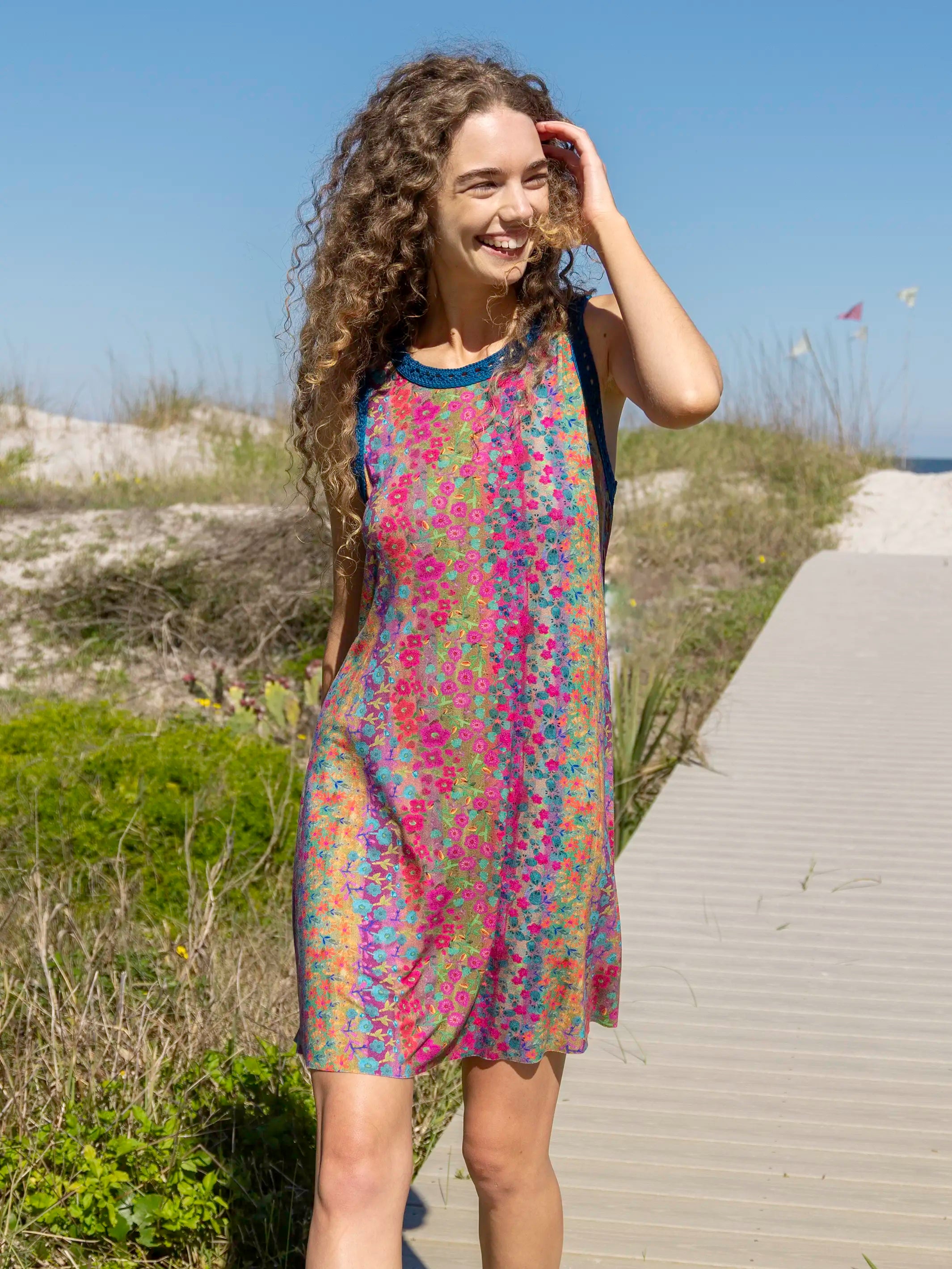 Willow "ButterSoft" Trim Mini Dress - Dark Rainbow Floral
