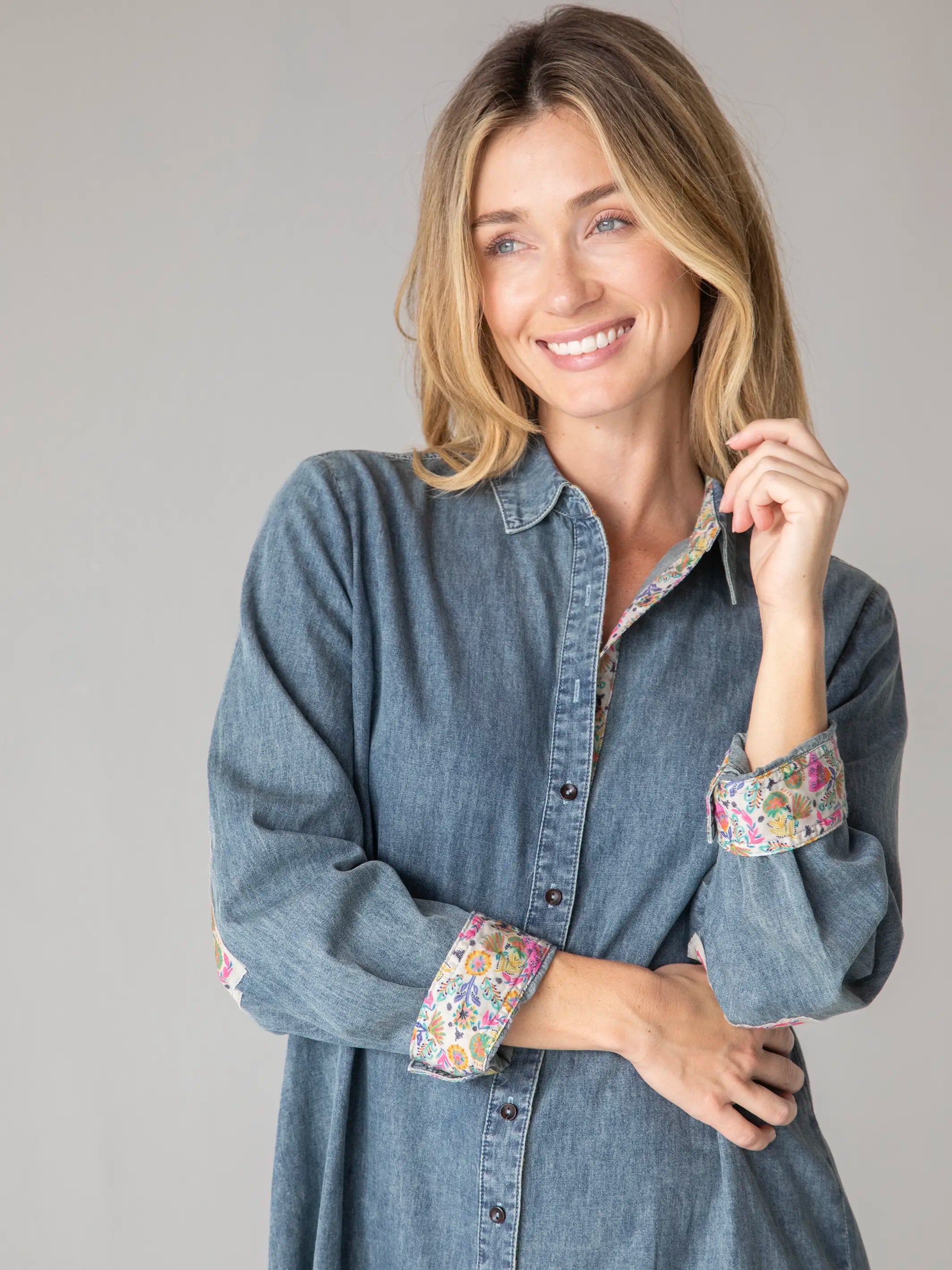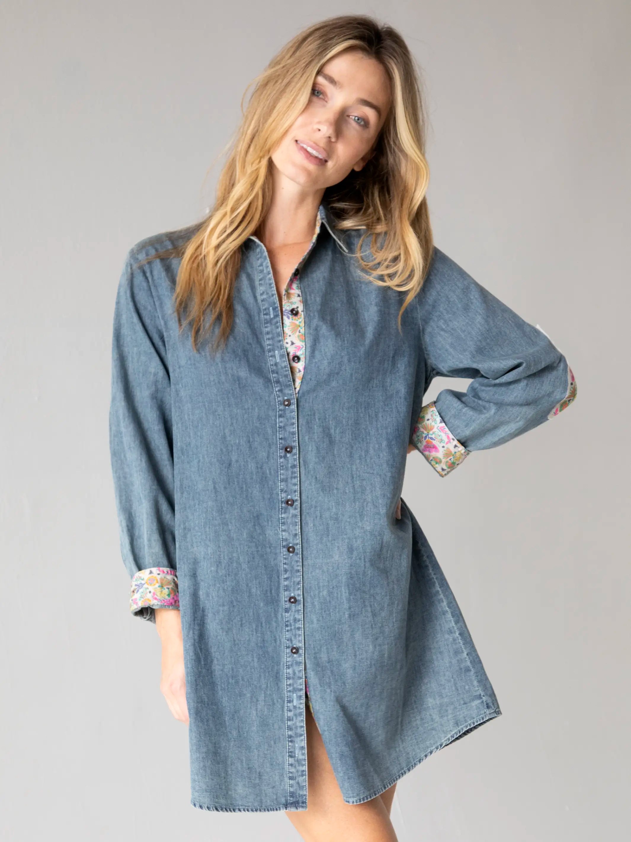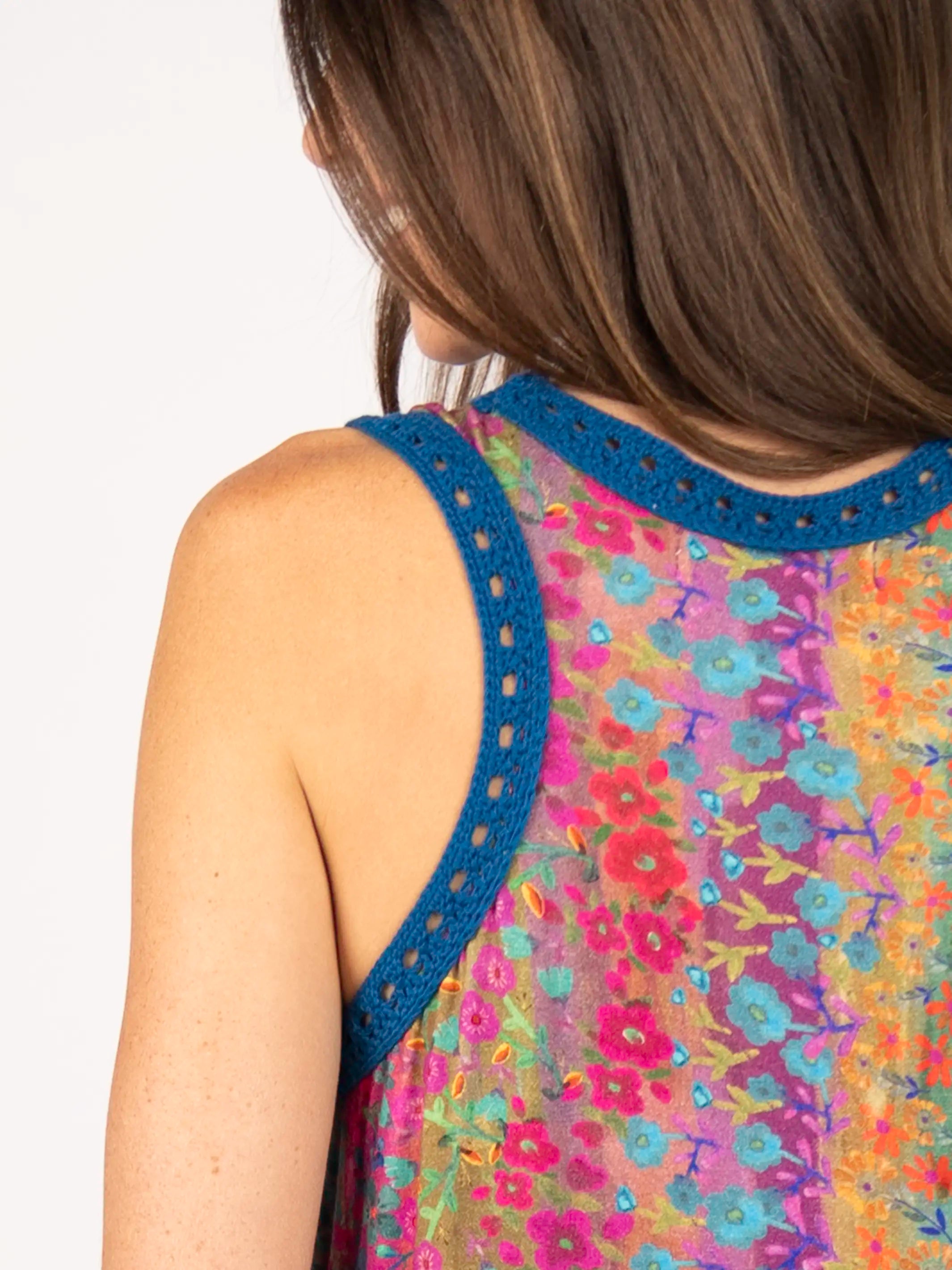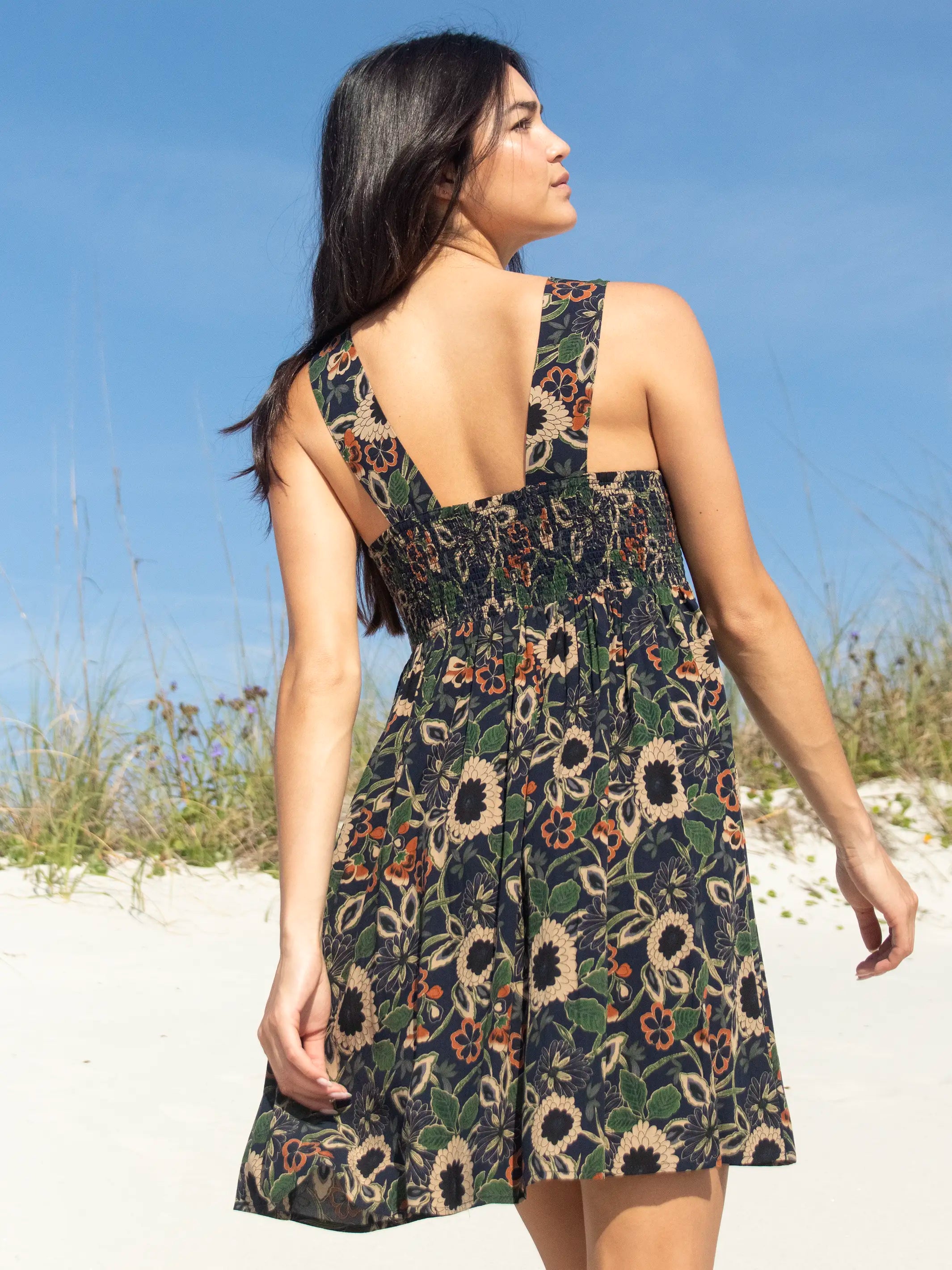 Willow "ButterSoft" Trim Mini Dress - Dark Rainbow Floral