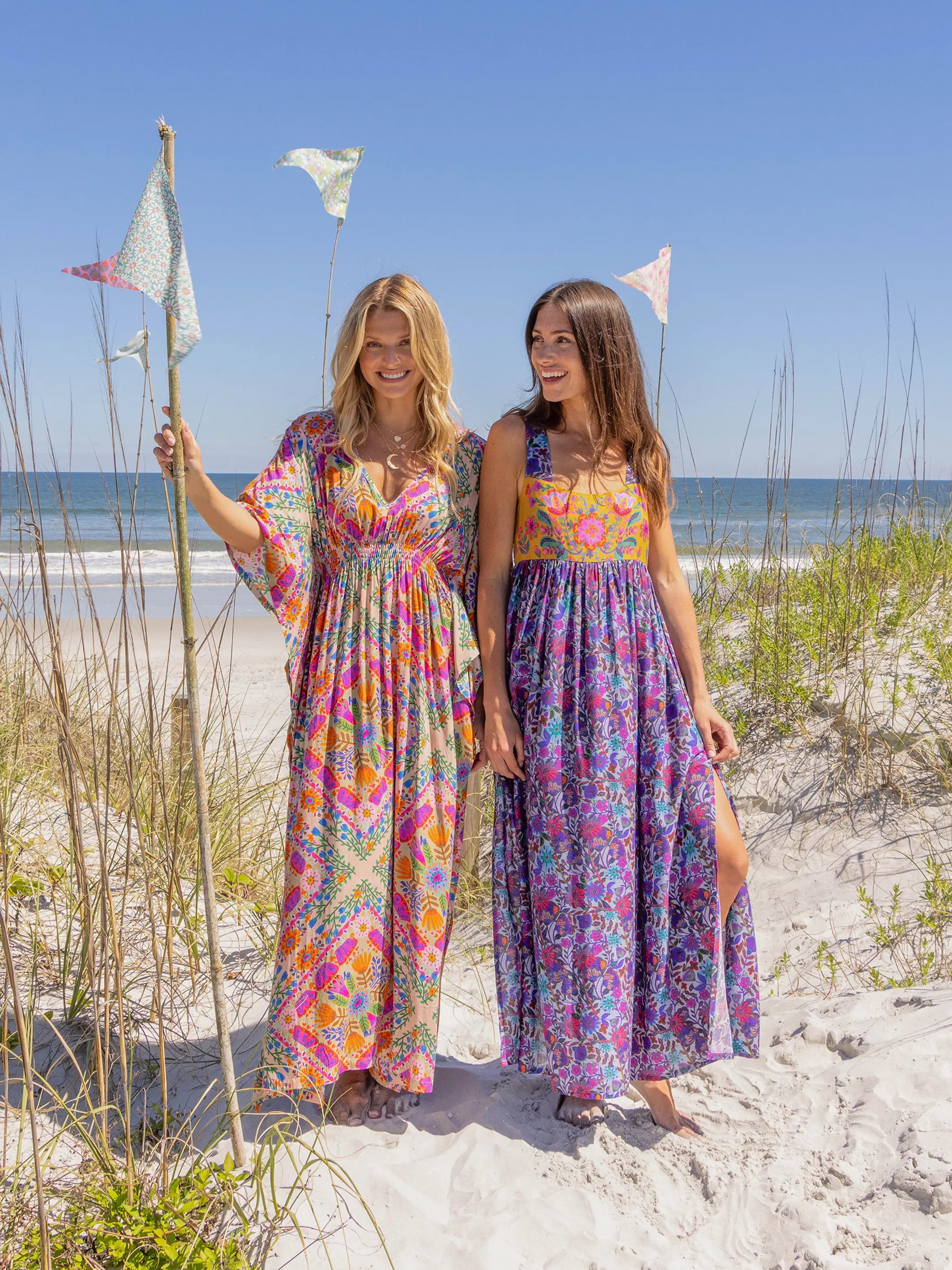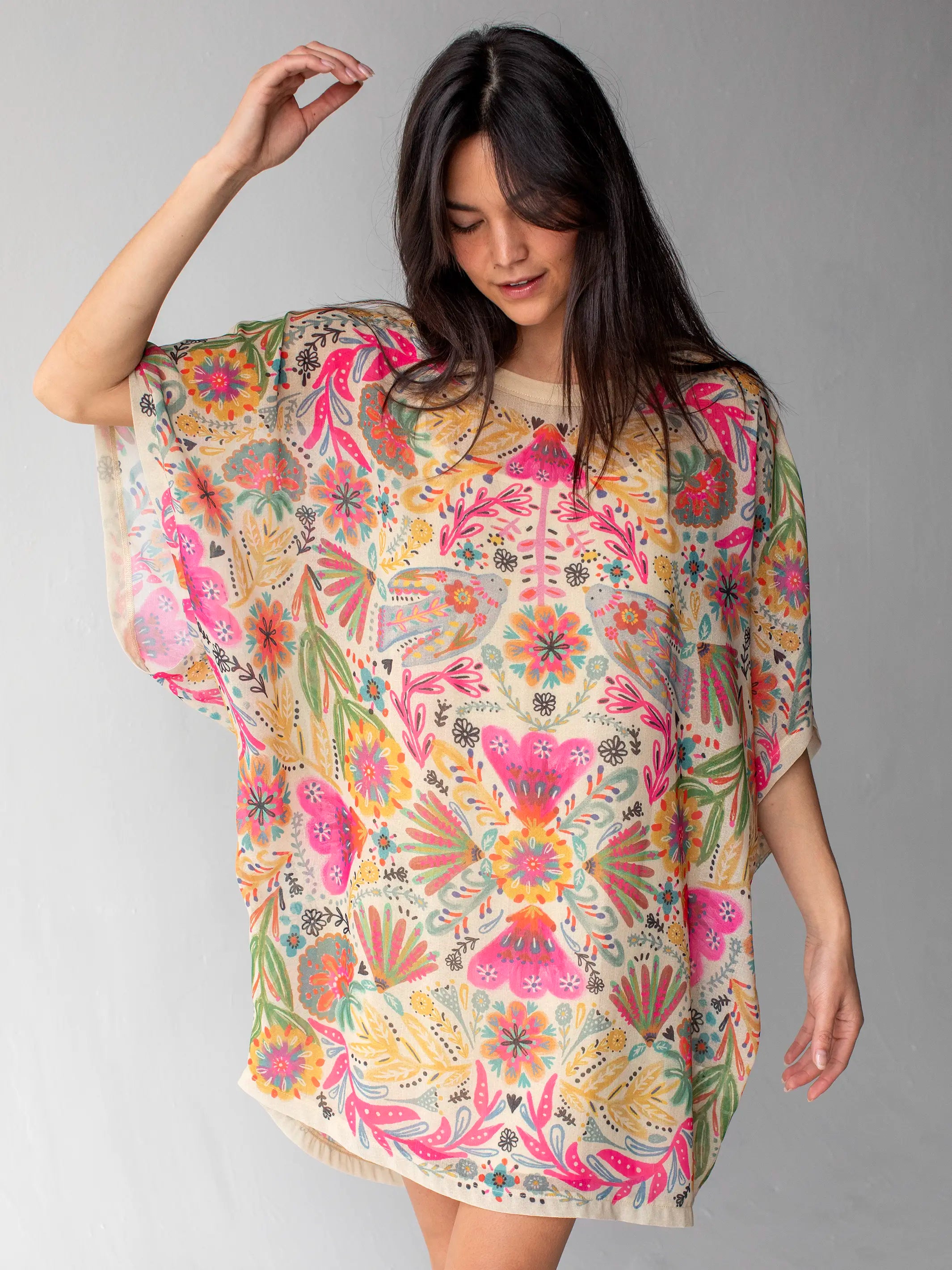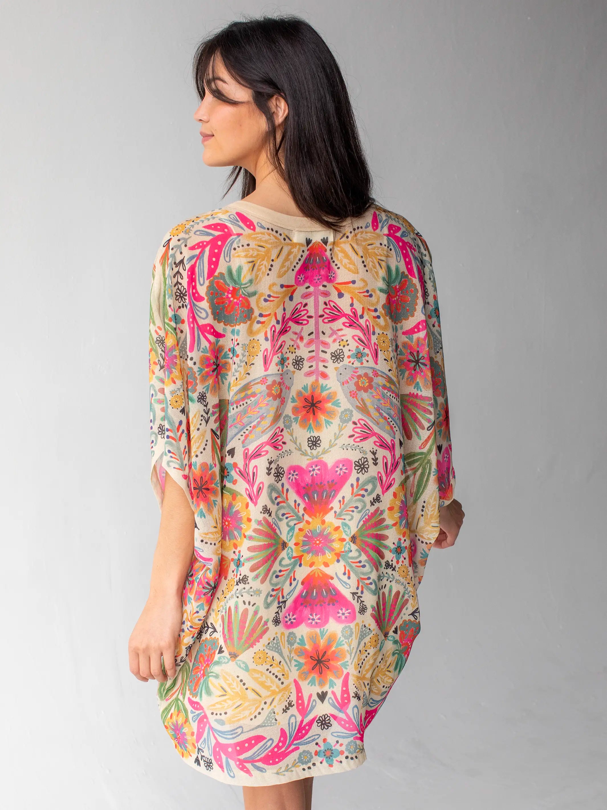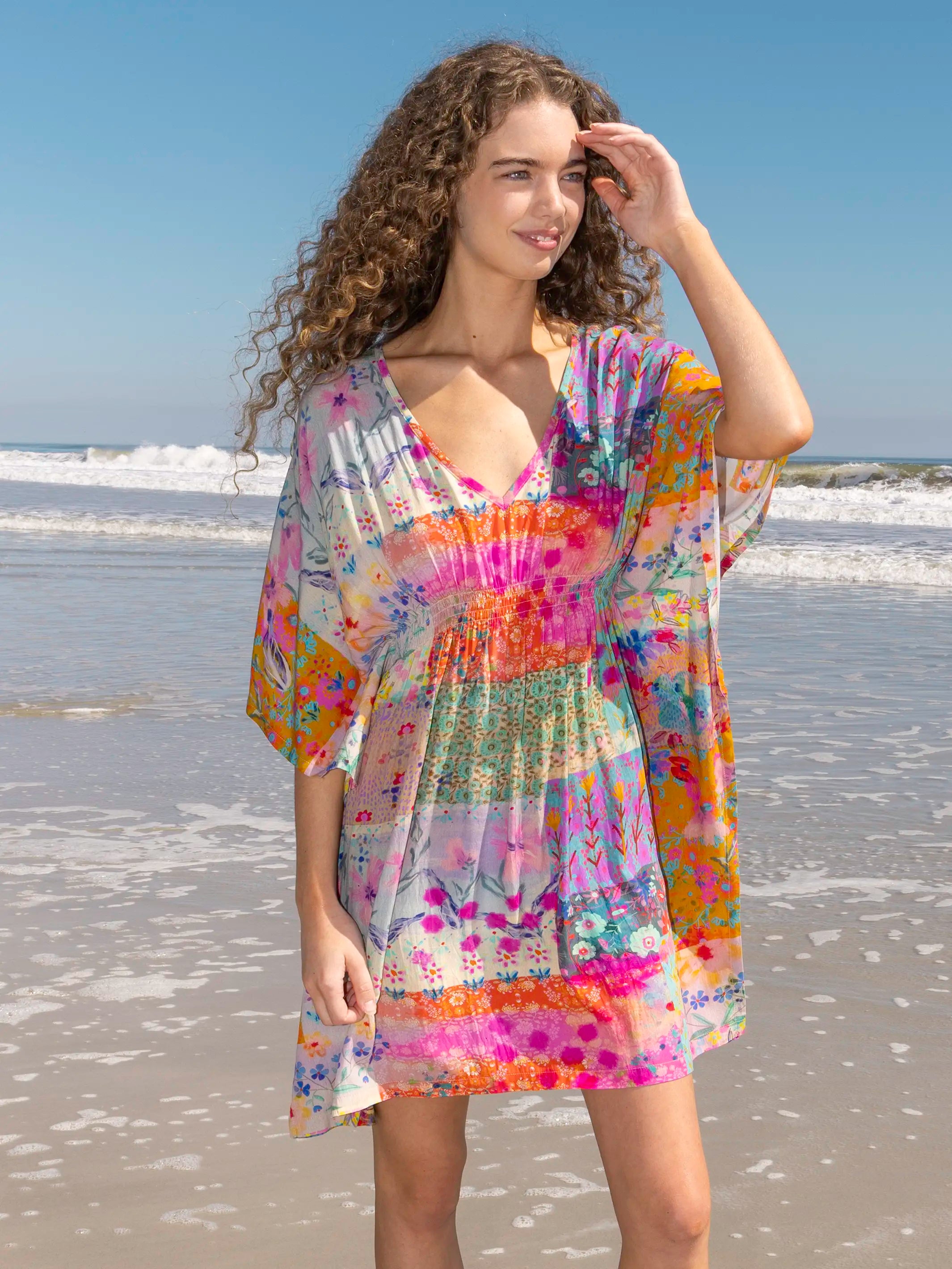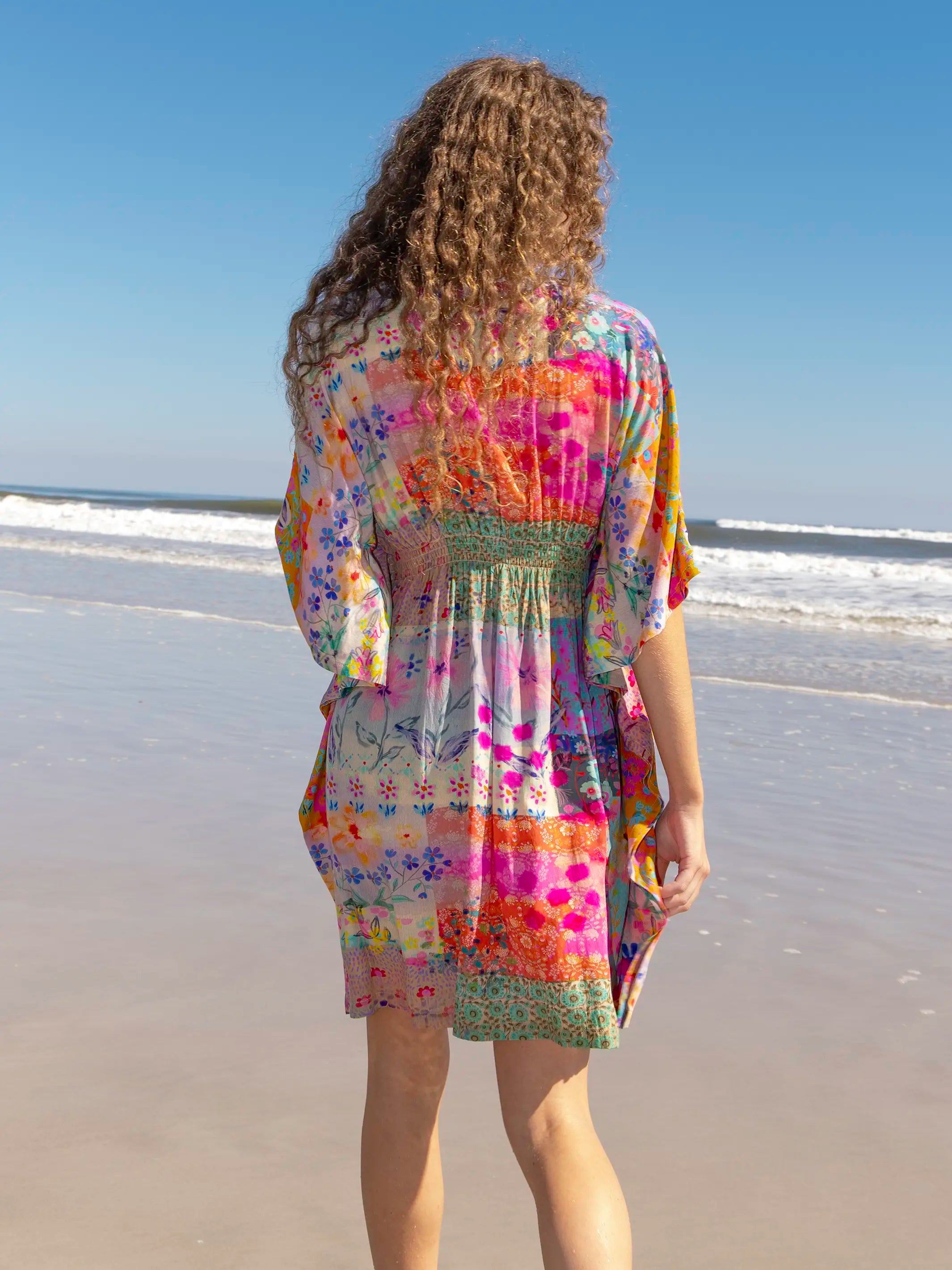 Sanibel Kaftan Mini Dress - Pink Watercolor Patchwork