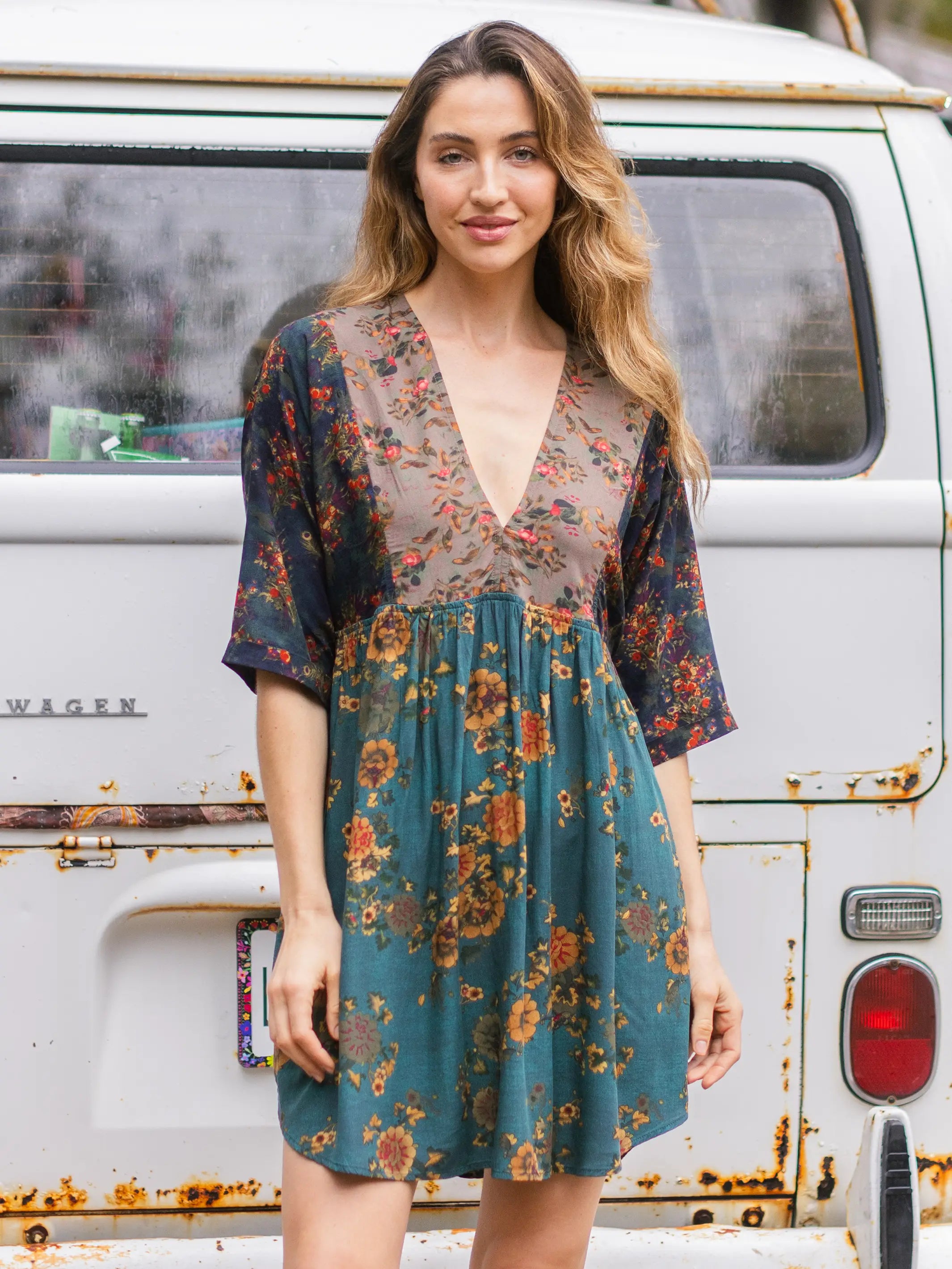 Stella V-Neck Mini Dress - Grey Navy Mixed Floral