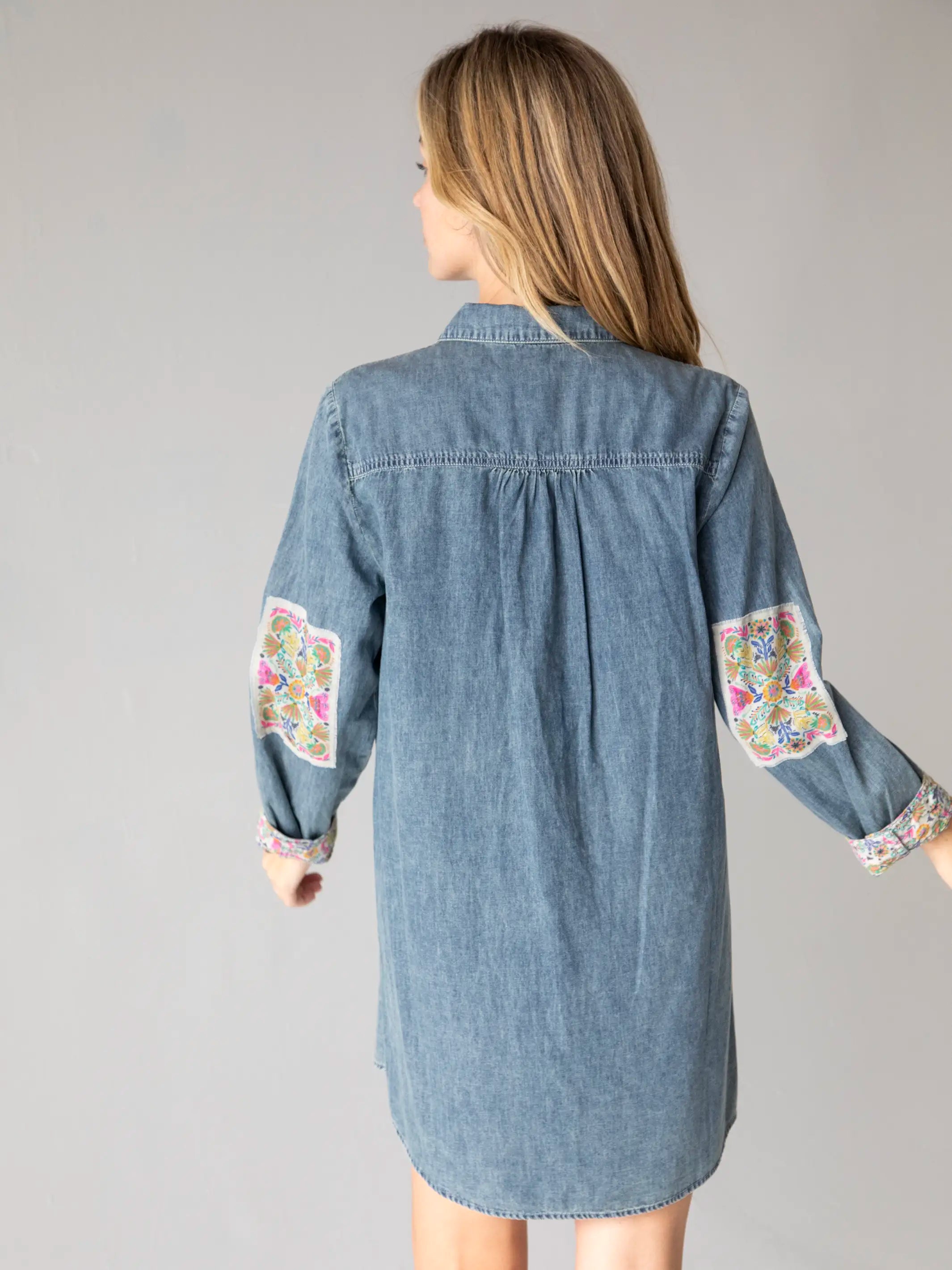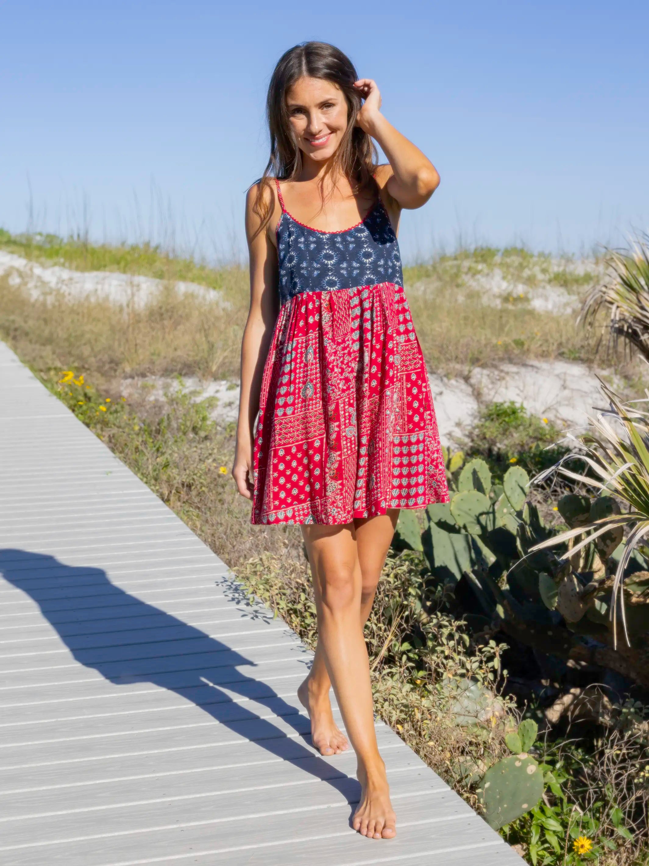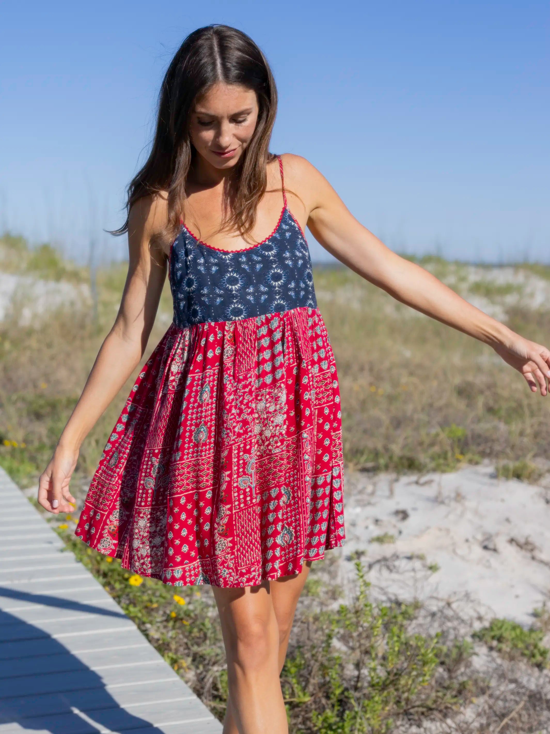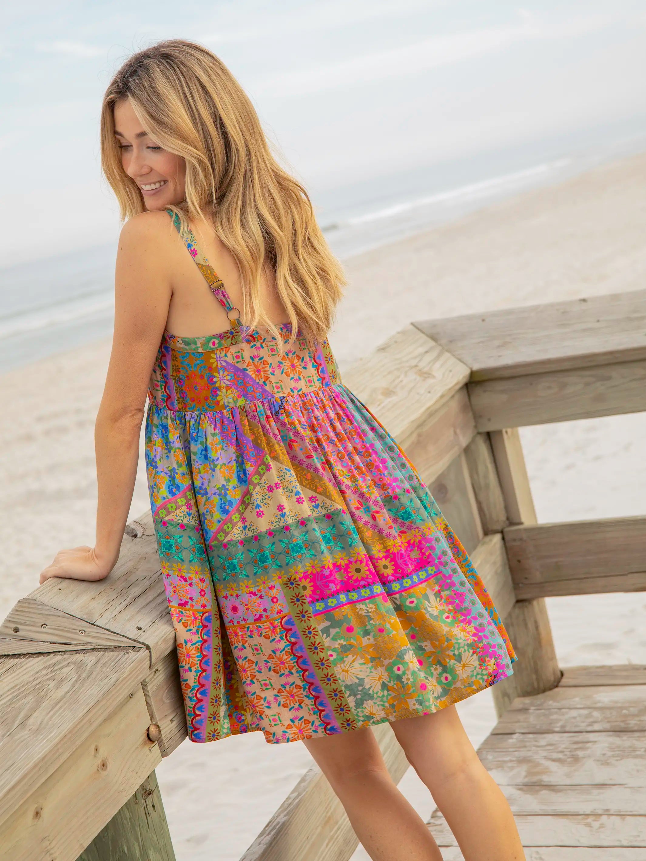 Patti Tie-Front Mini Dress - Folk Flower Patchwork