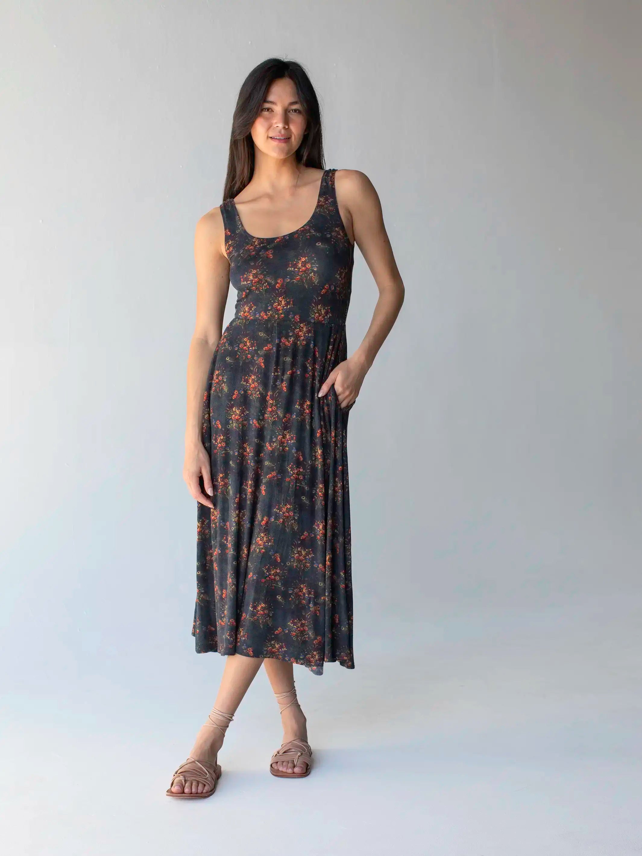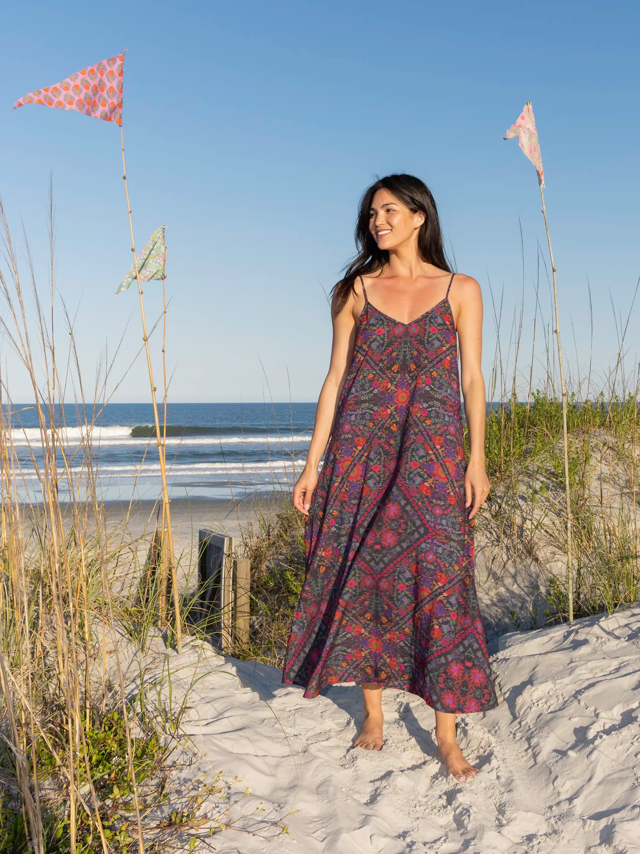 Gracie Slip Maxi Dress - Multicolored Charcoal Floral
