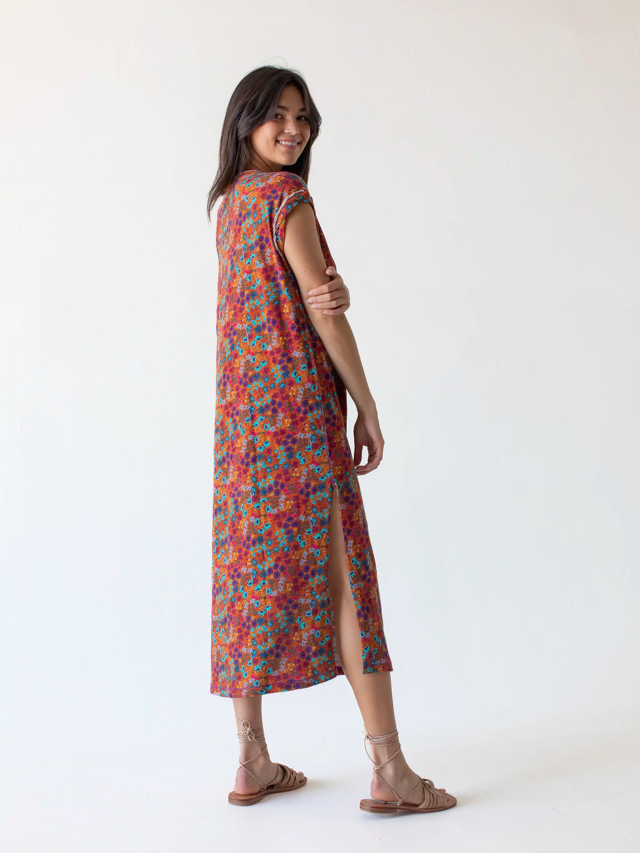 Frankie Knit Cotton Tee Midi Dress - Rust Turquoise Floral