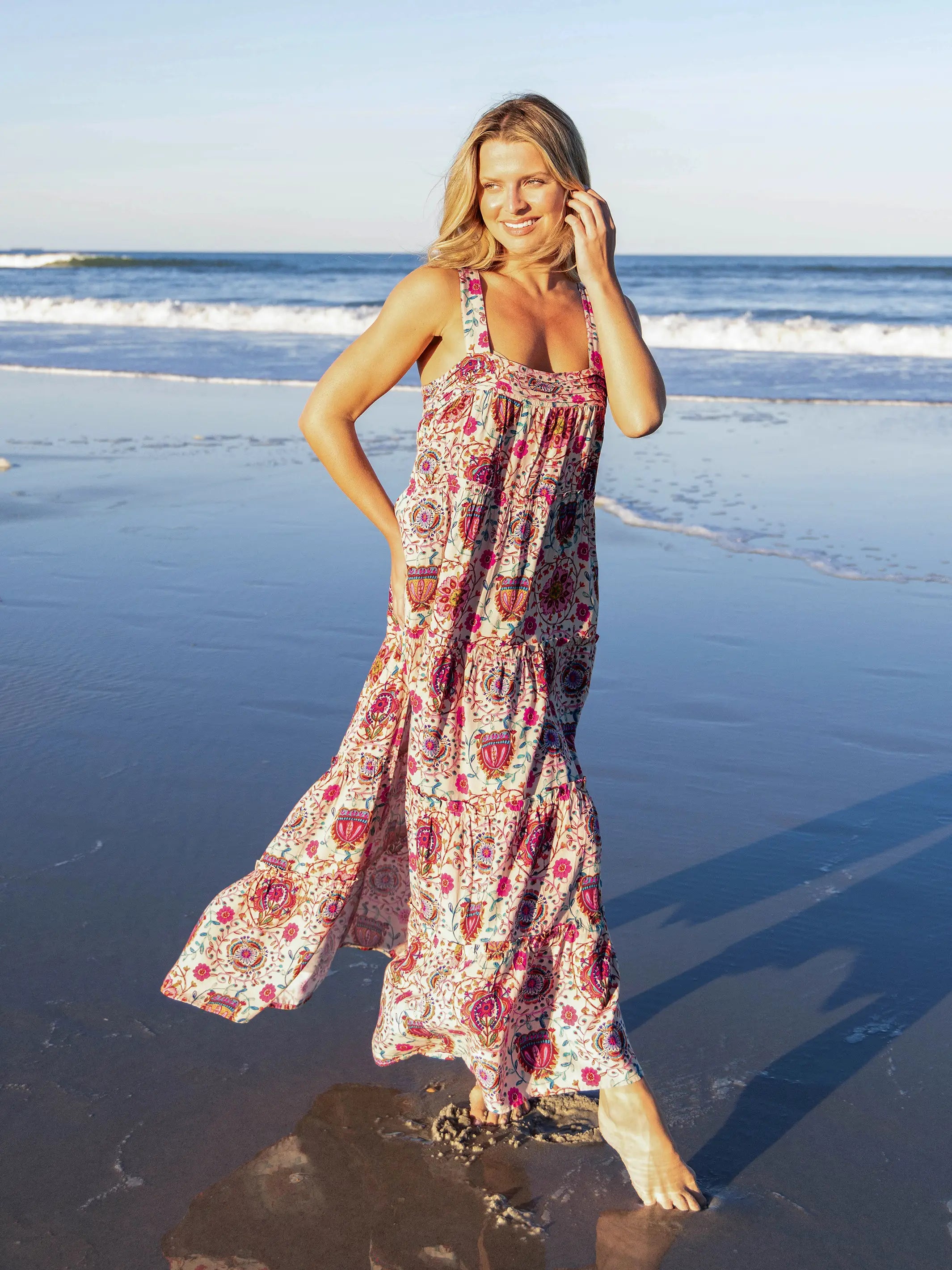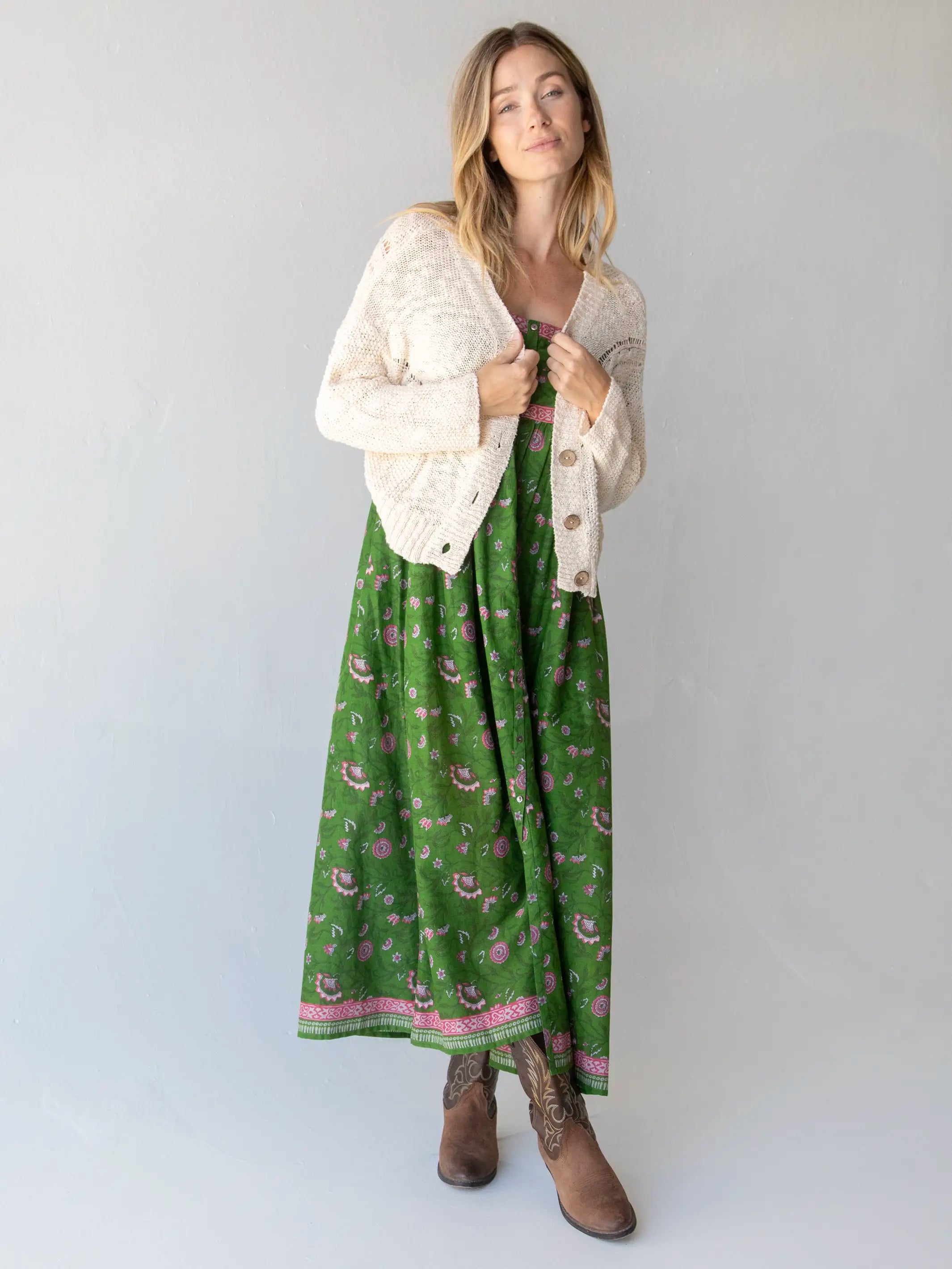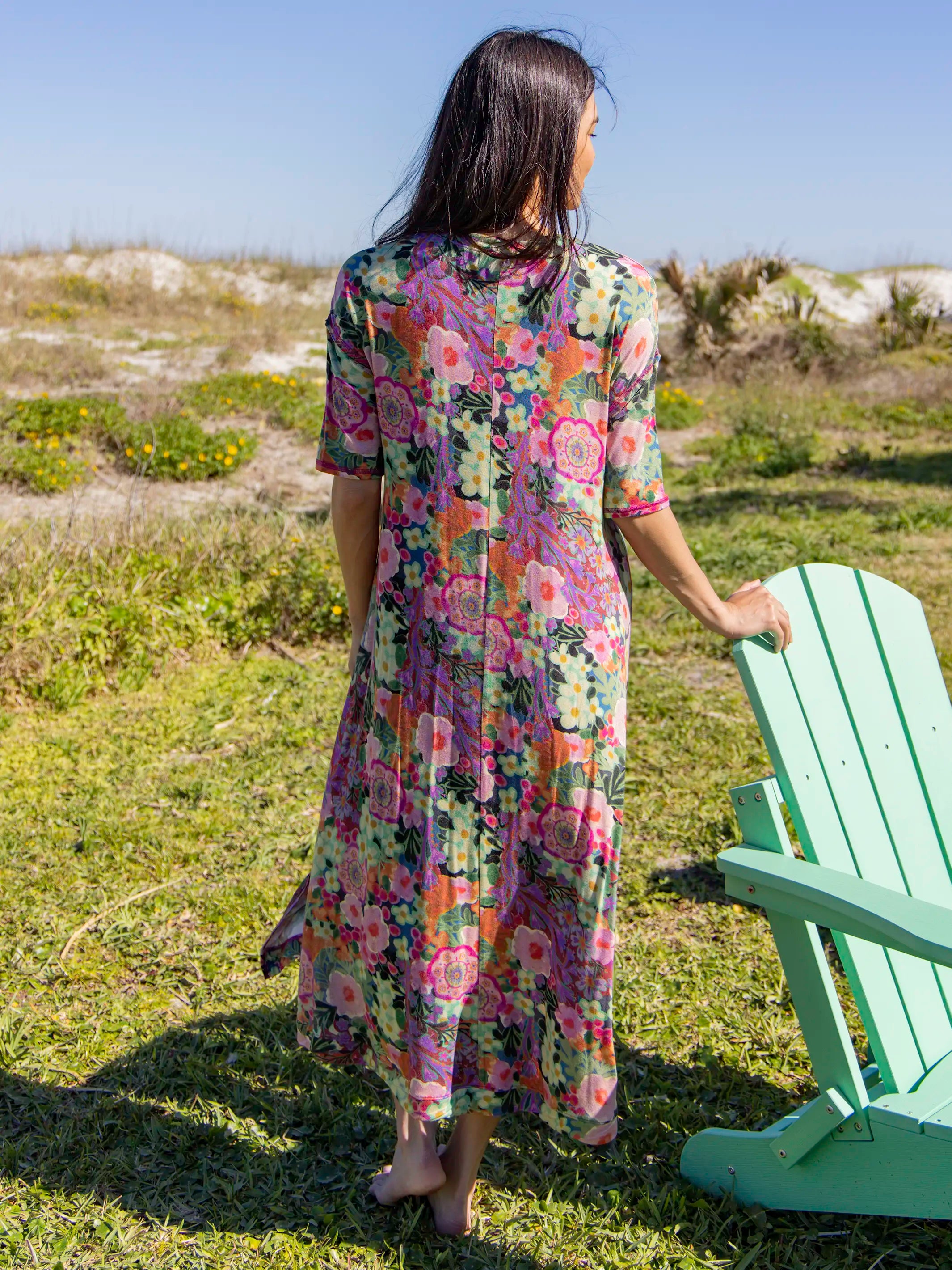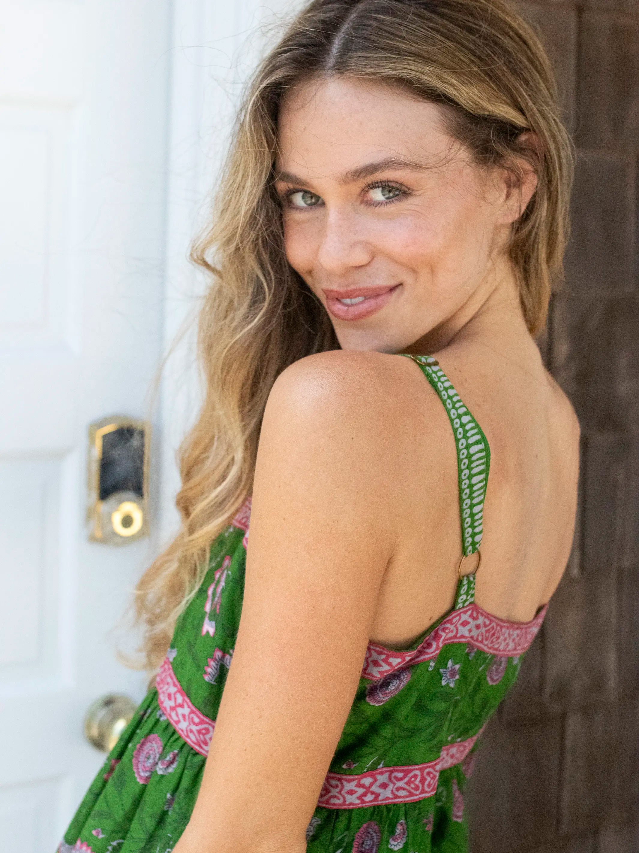 Sidney Maxi Dress - Green Pink Vines Cotton