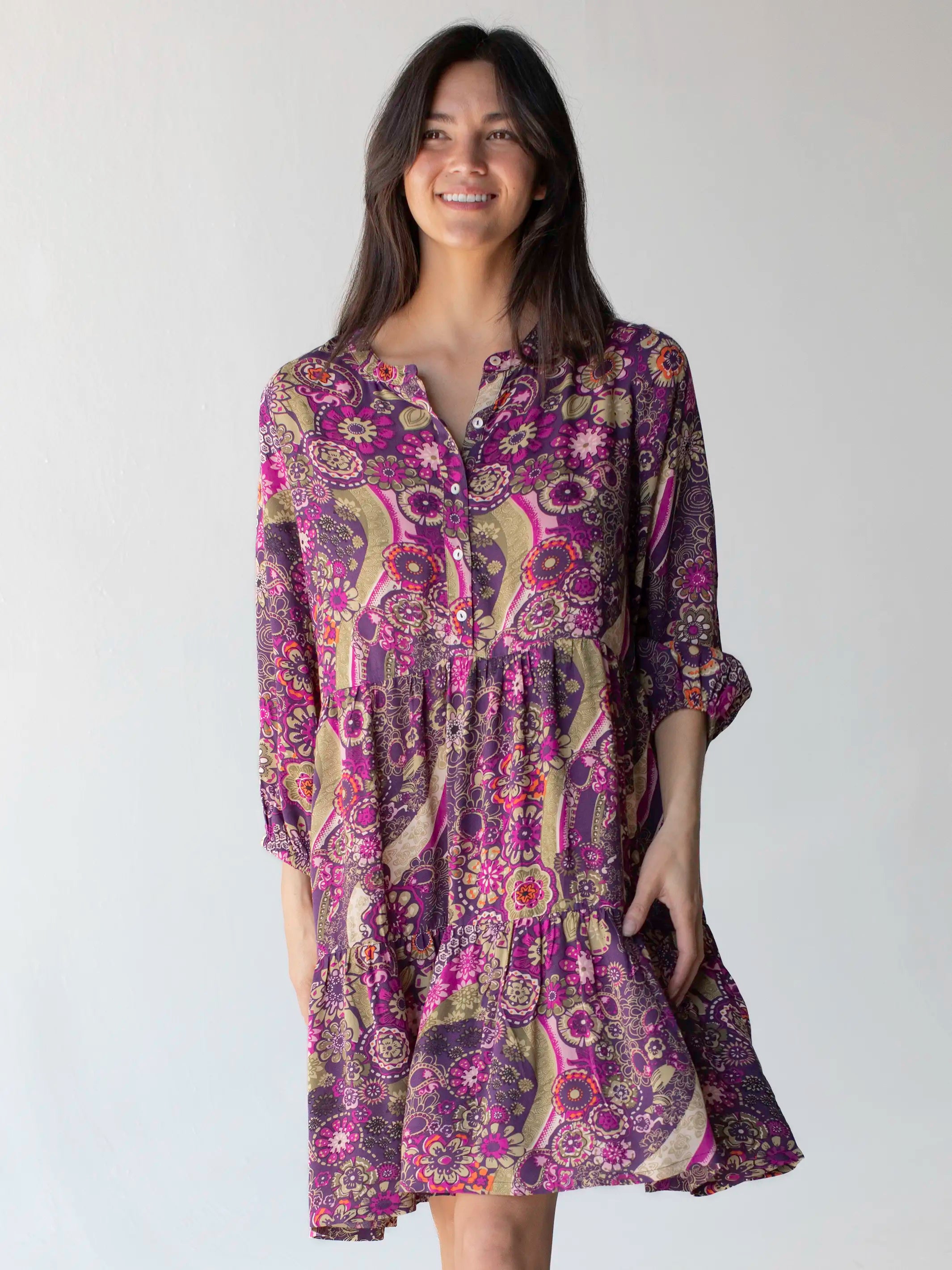 Devon "ButterSoft" Mini Dress - Whimsical Painted Garden