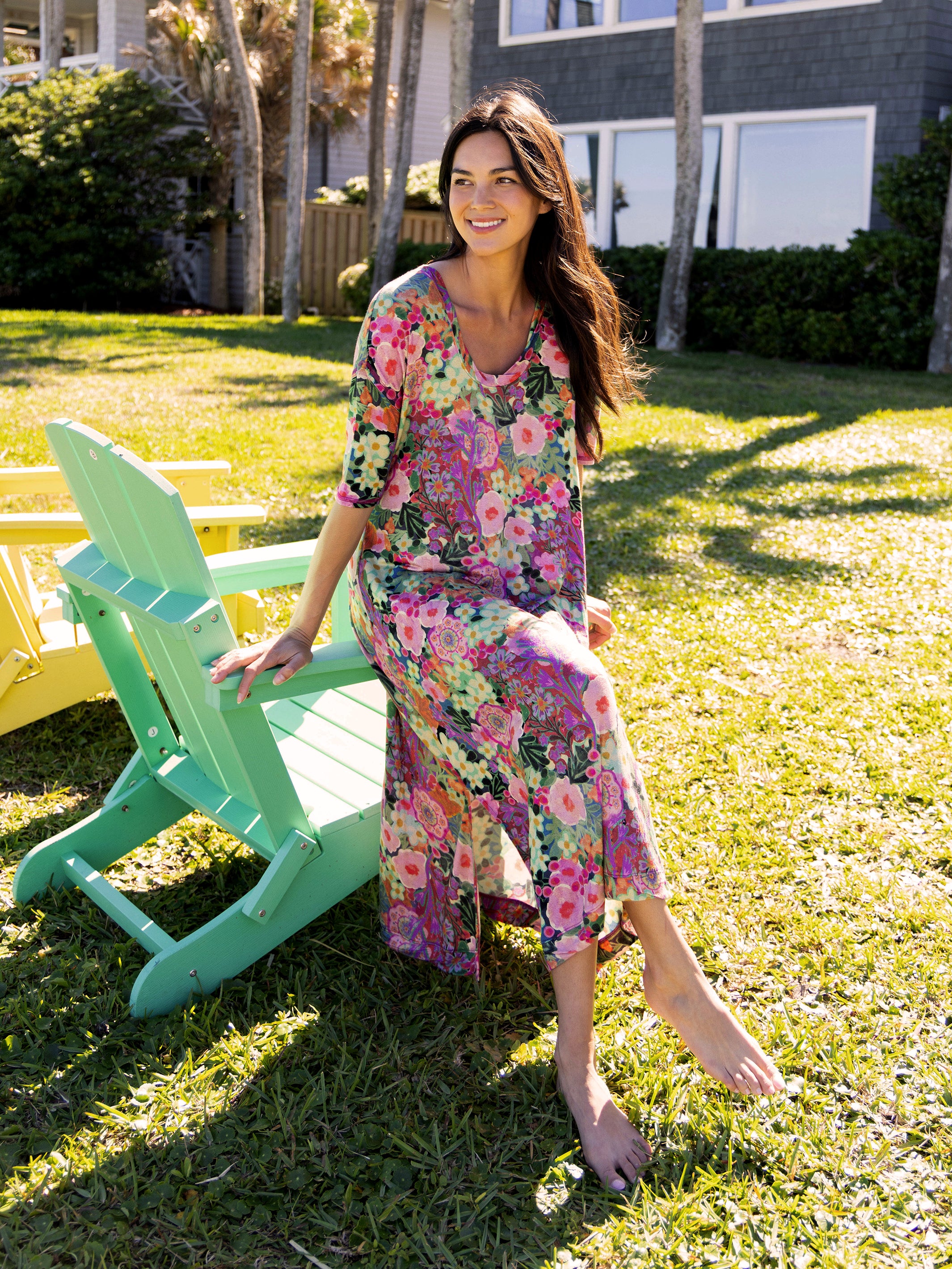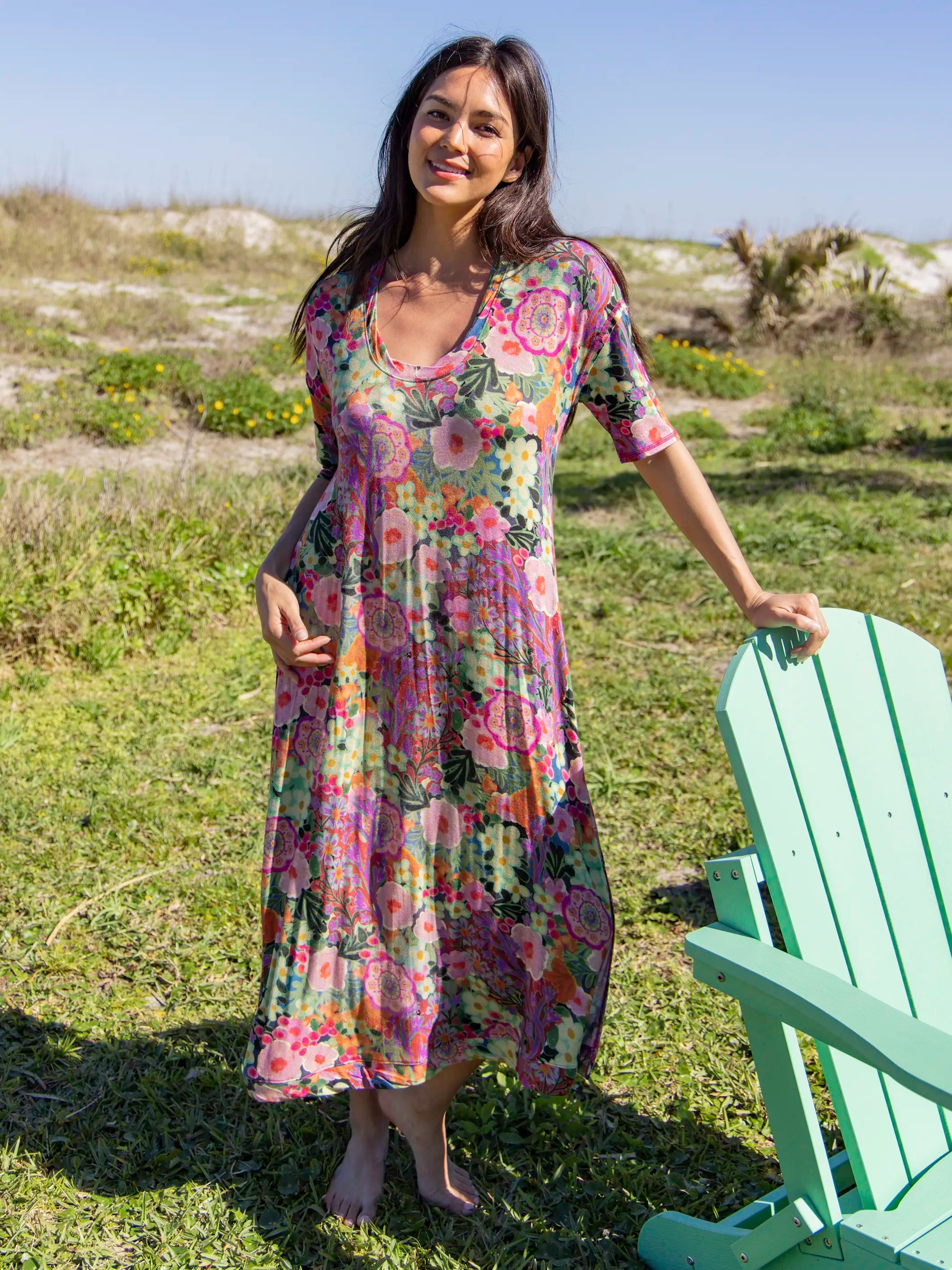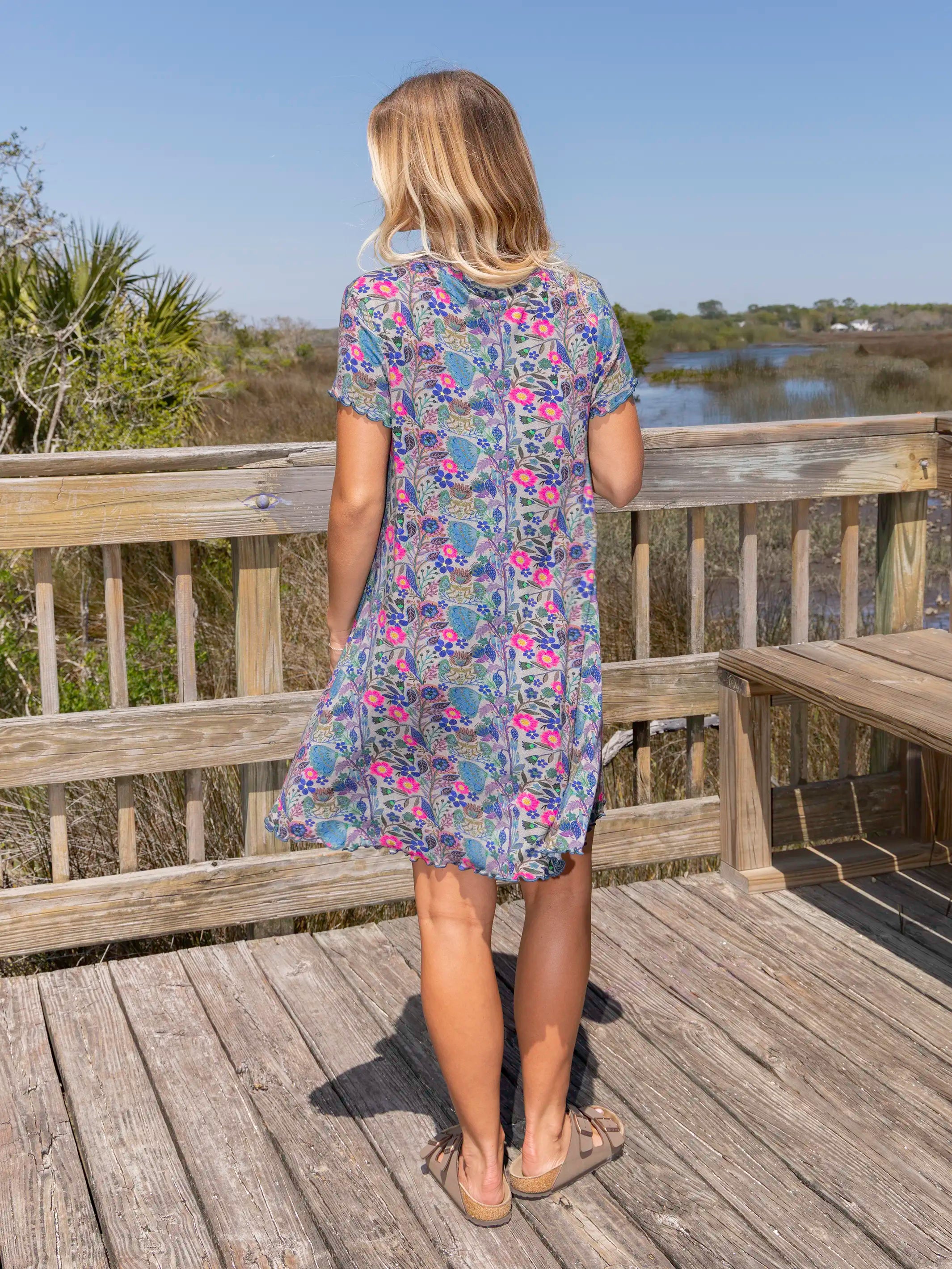 All Day "ButterSoft" Tee Dress - Pink Painted Garden