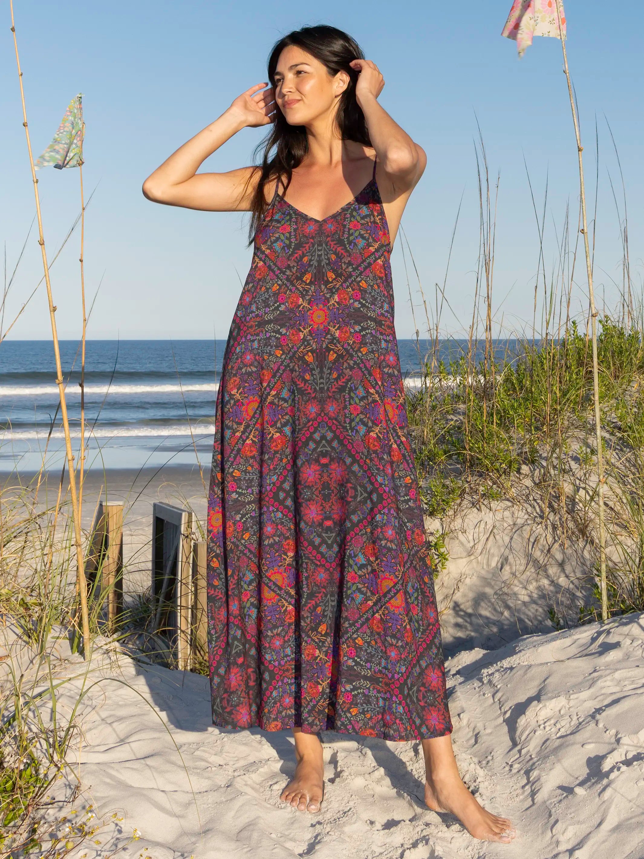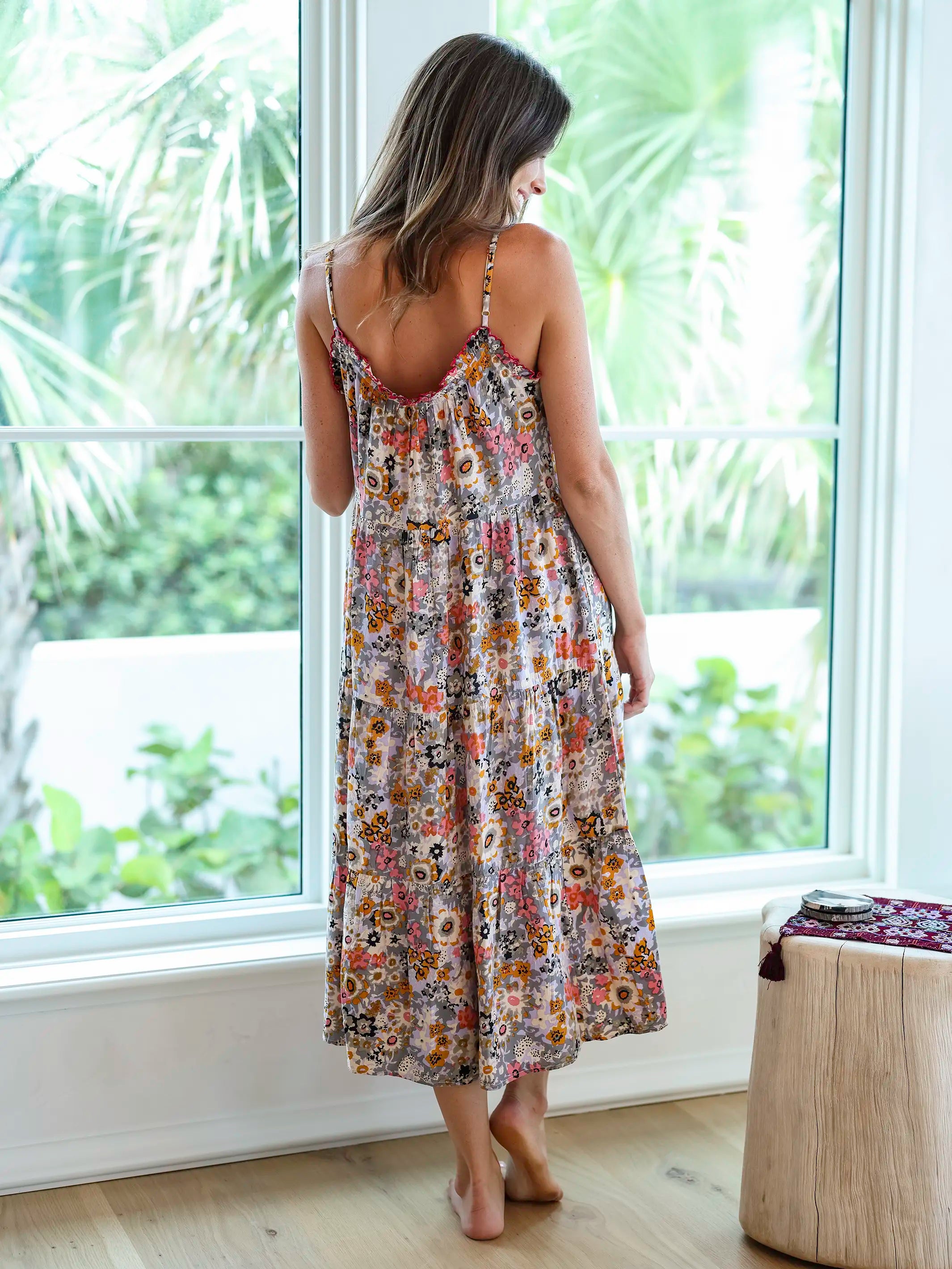 Gracie Slip Maxi Dress - Multicolored Charcoal Floral