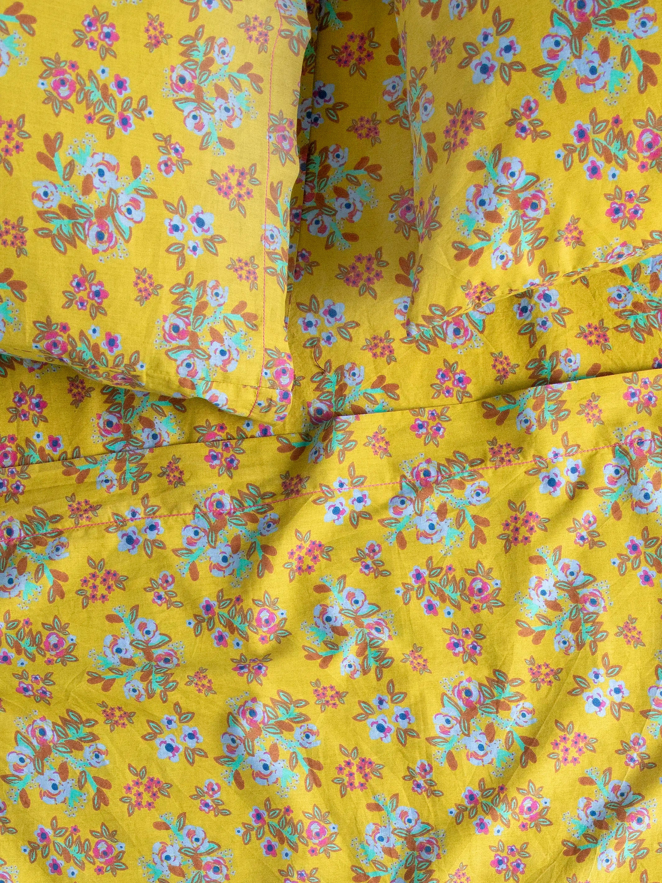 Mix & Match Cotton Pillowcase, Single - Chartreuse Bouquet Blooms