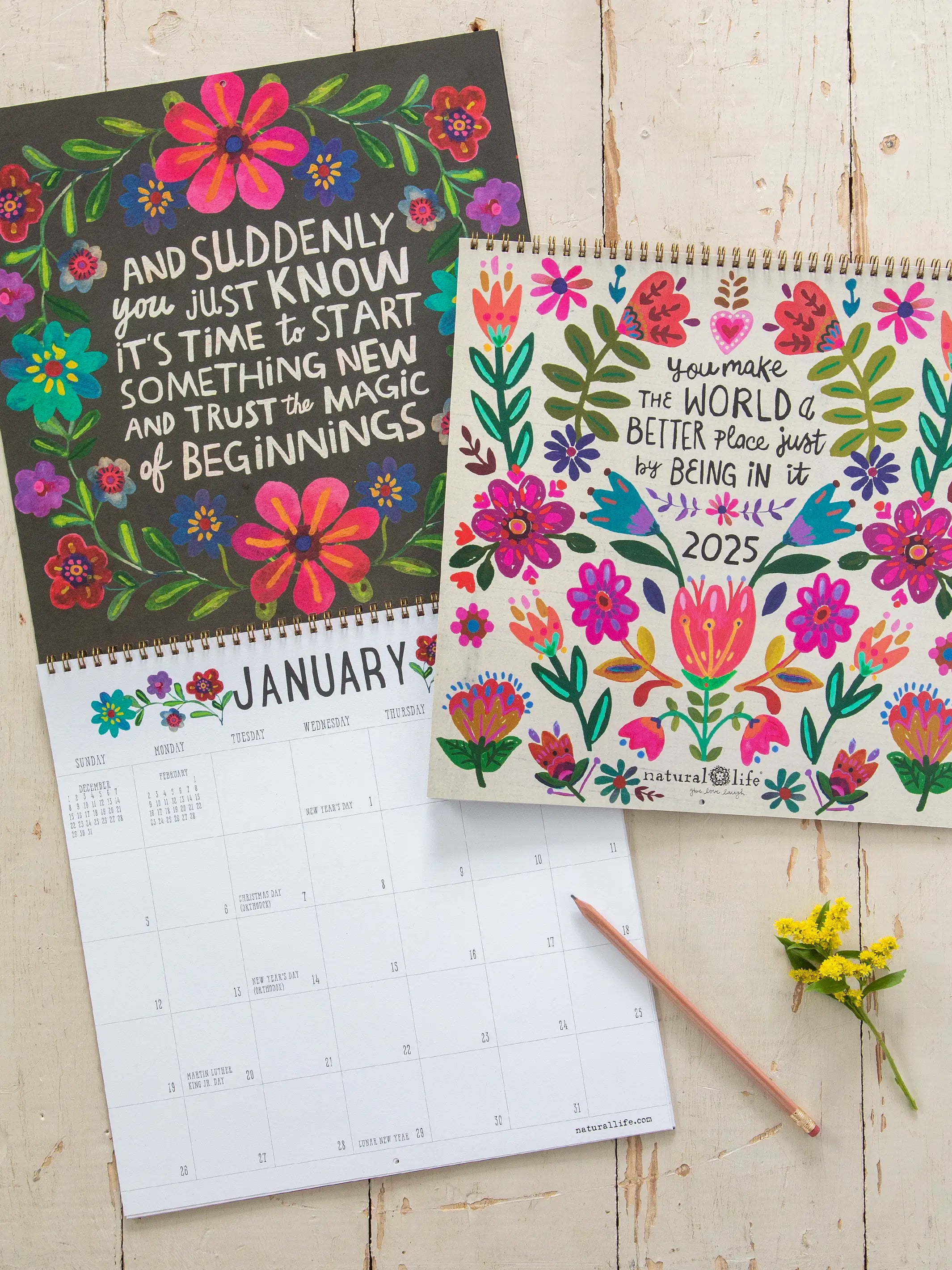 Collapsible Storage Cubes, Set of 2 - Cream Folk Flower