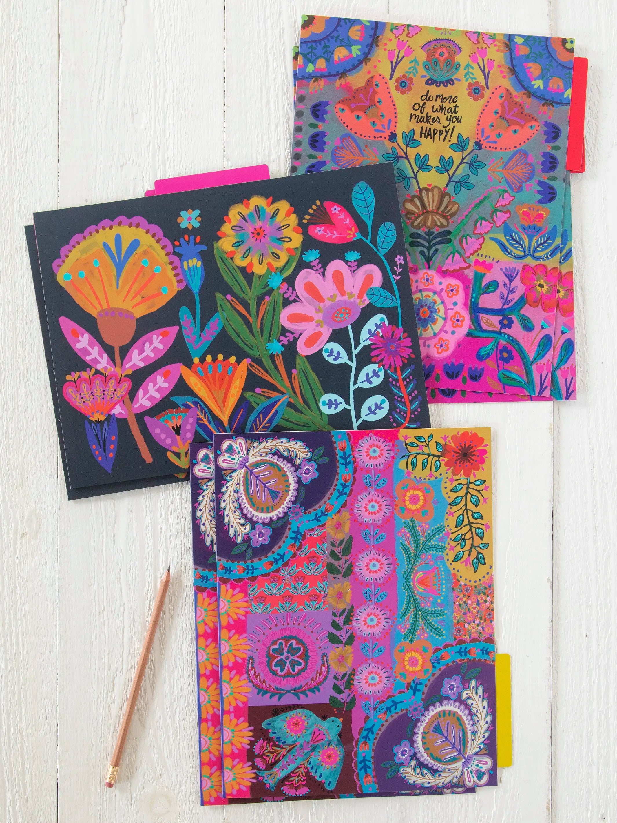 Colorful File Folders, Set of 6 - Navy Folk Flower