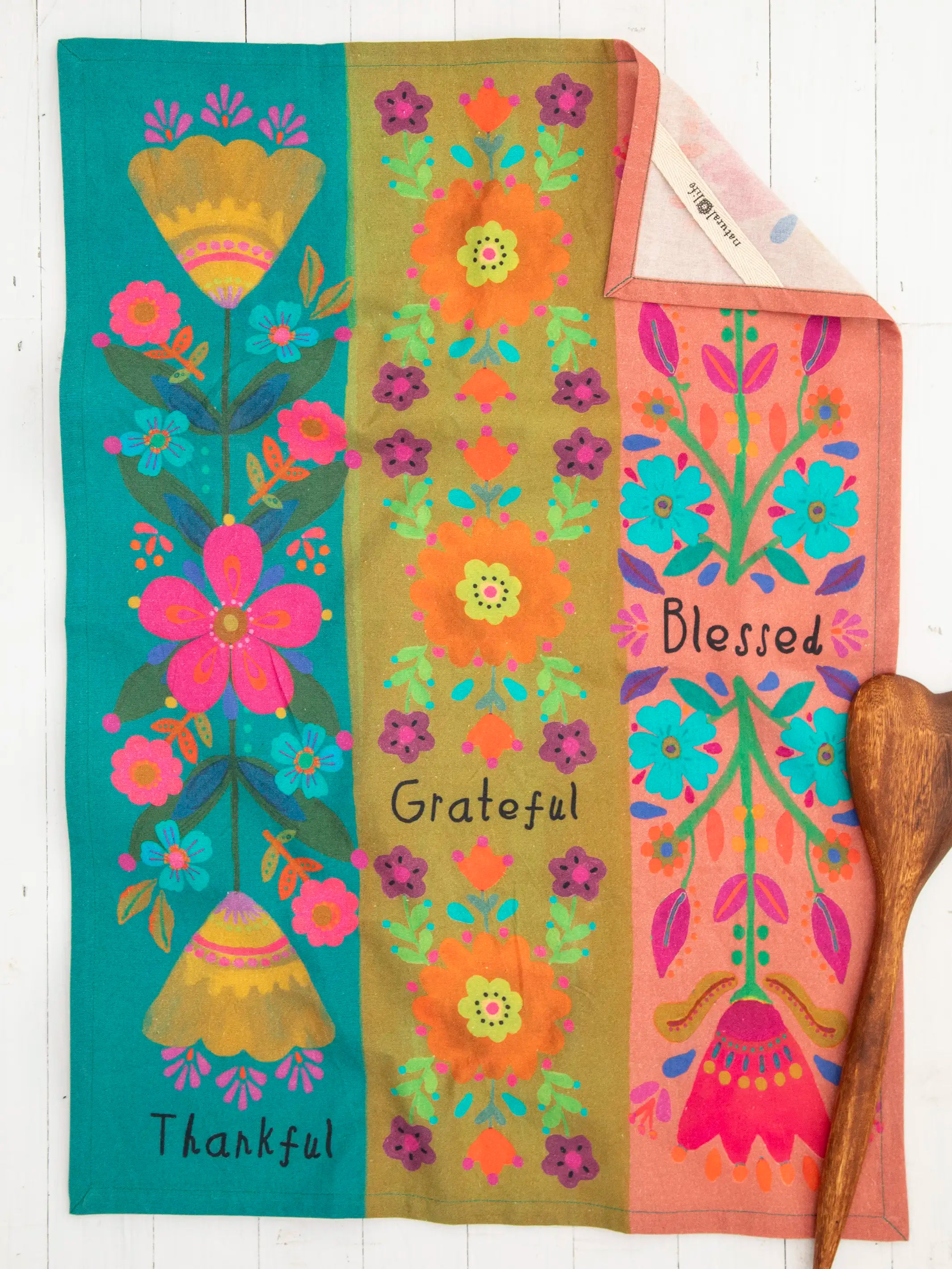 Cotton Dish Towel - Thankful Grateful Floral