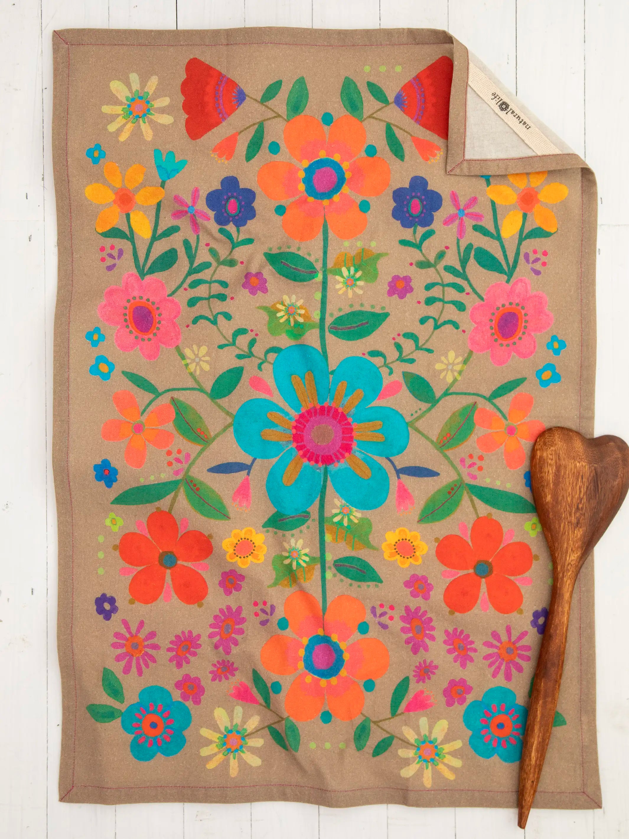 Cotton Dish Towel - Cocoa Folk Flower