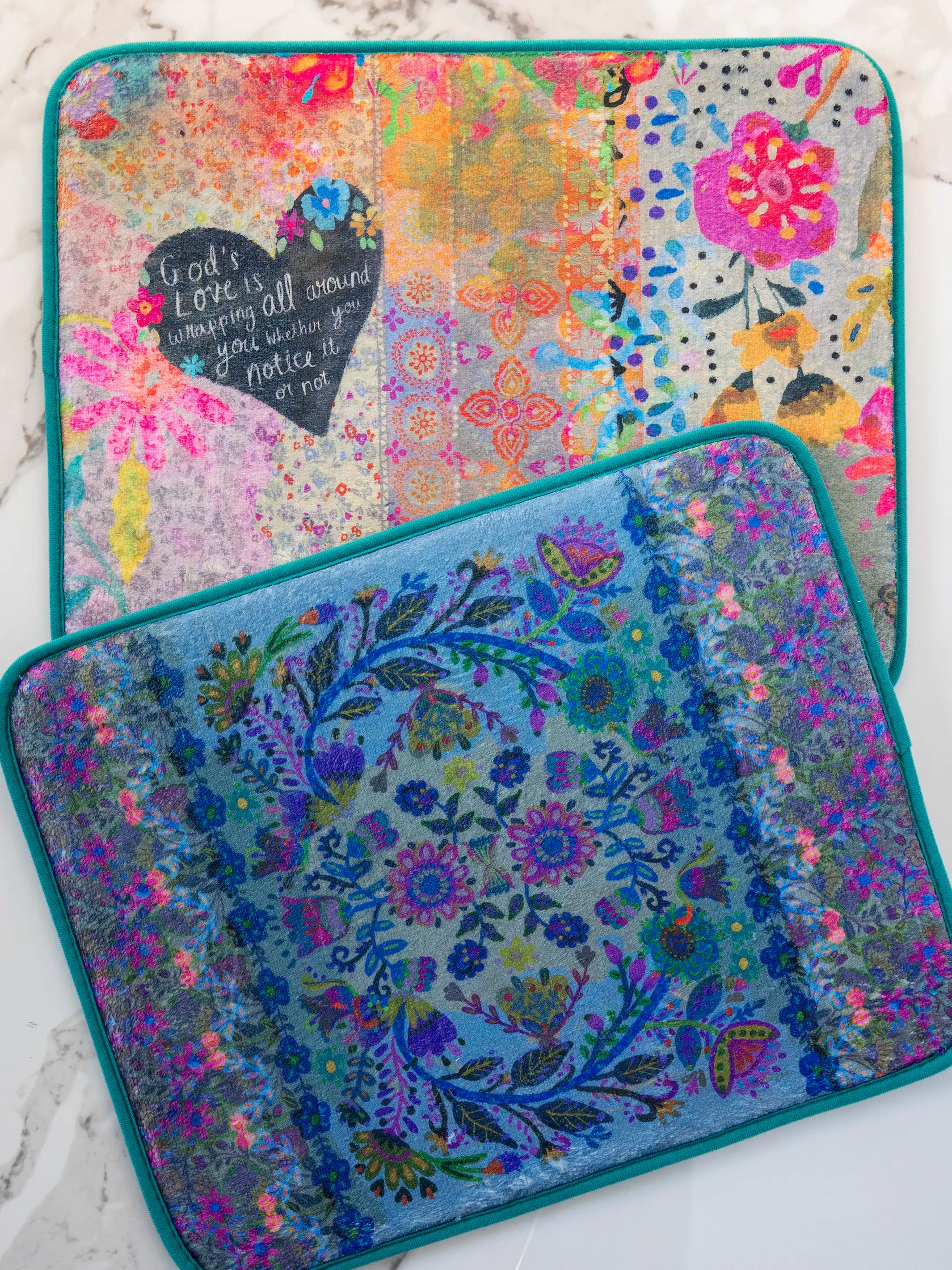 Comfy Kitchen Standing Mat - Navy Folk Flower