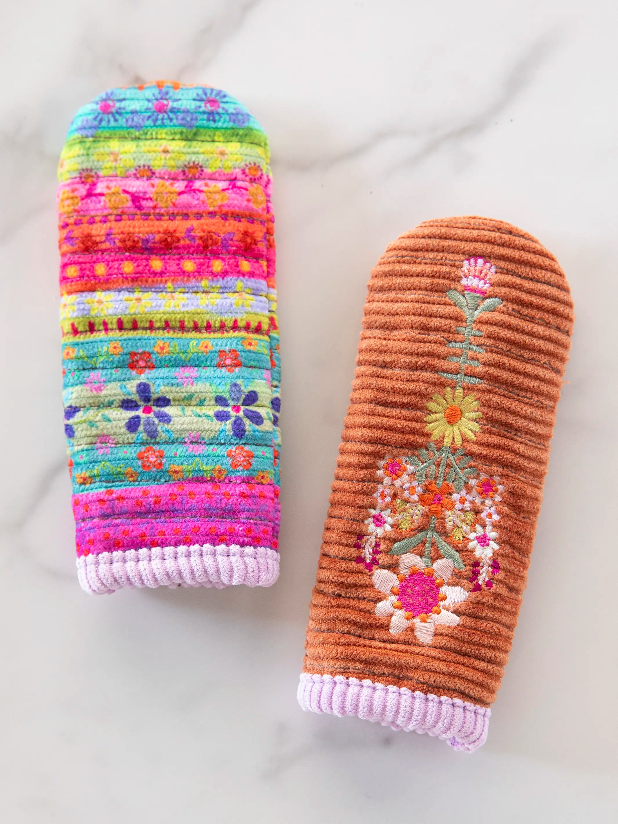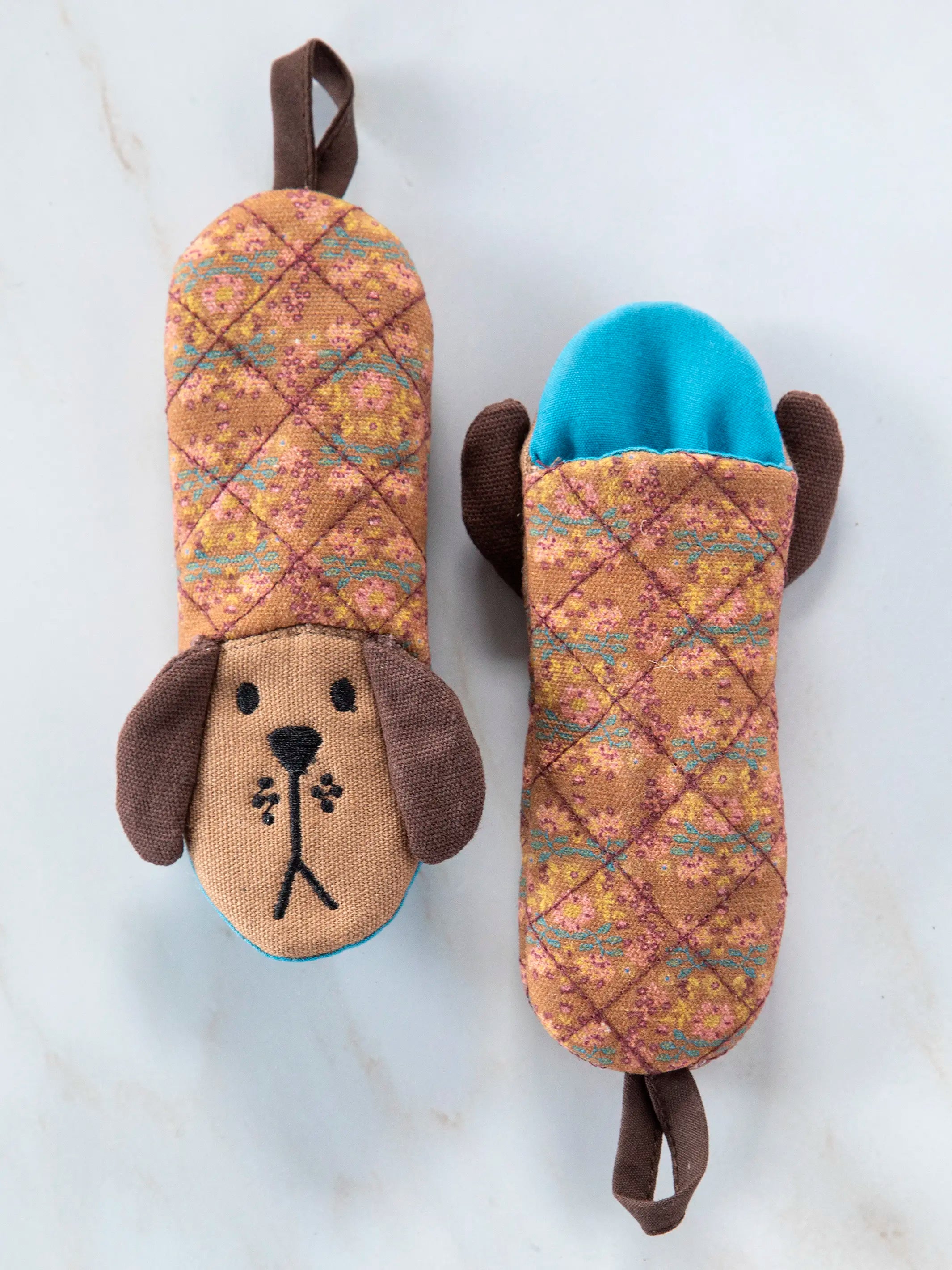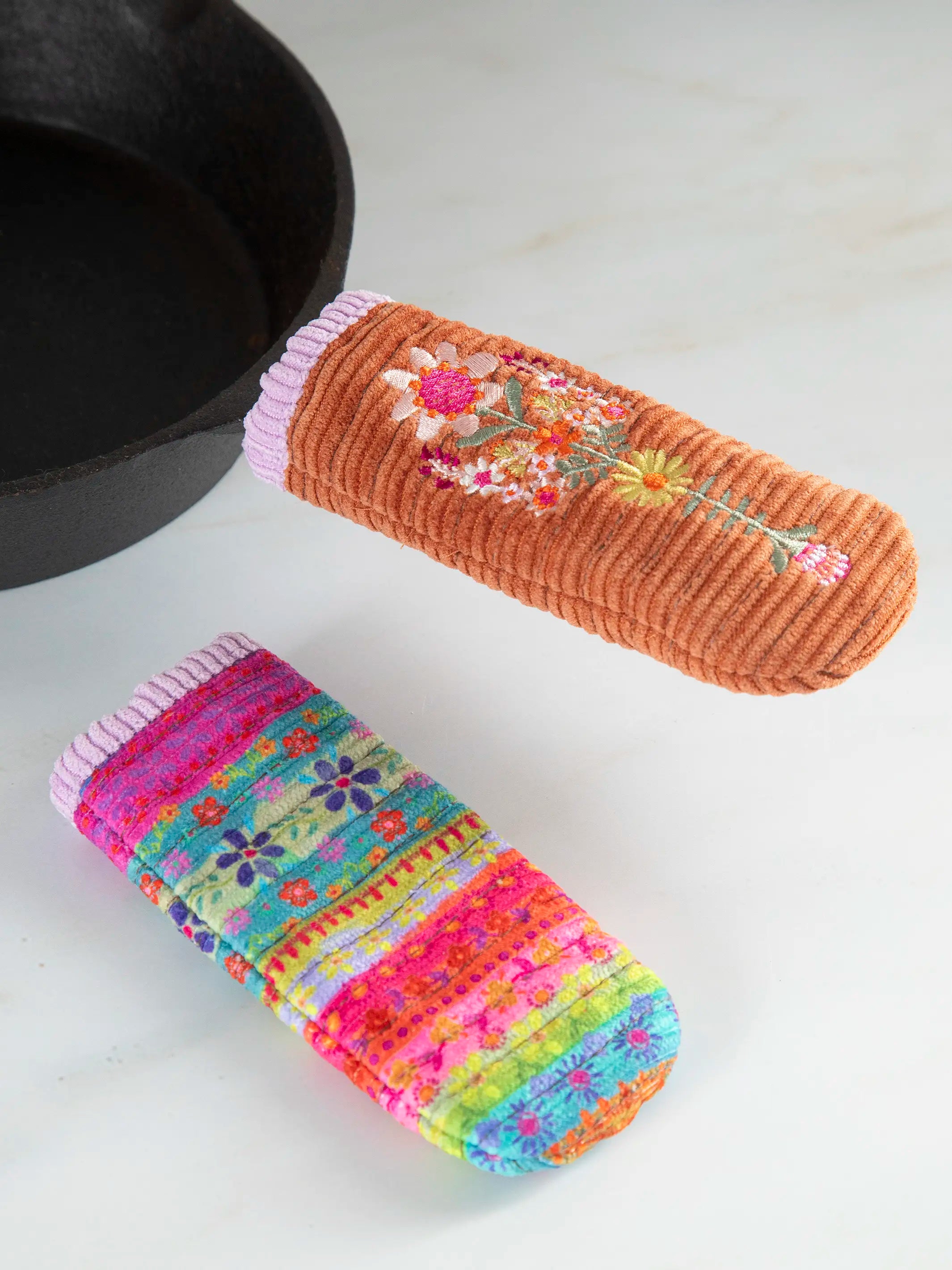 Cook Happy Pot Handle Cover, Set of 2 - Blue Folk Flower Patchwork
