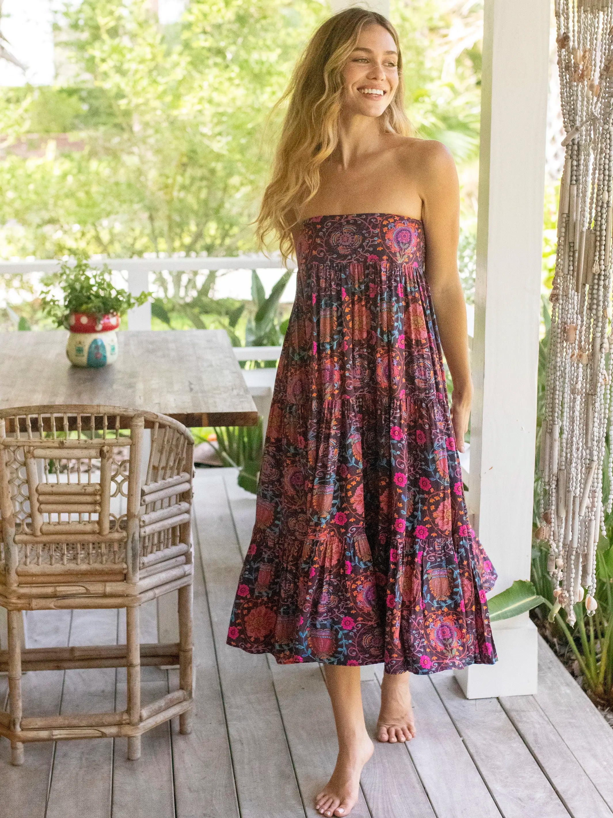 Hanna Convertible Maxi Skirt - Black Printed Folk Circles
