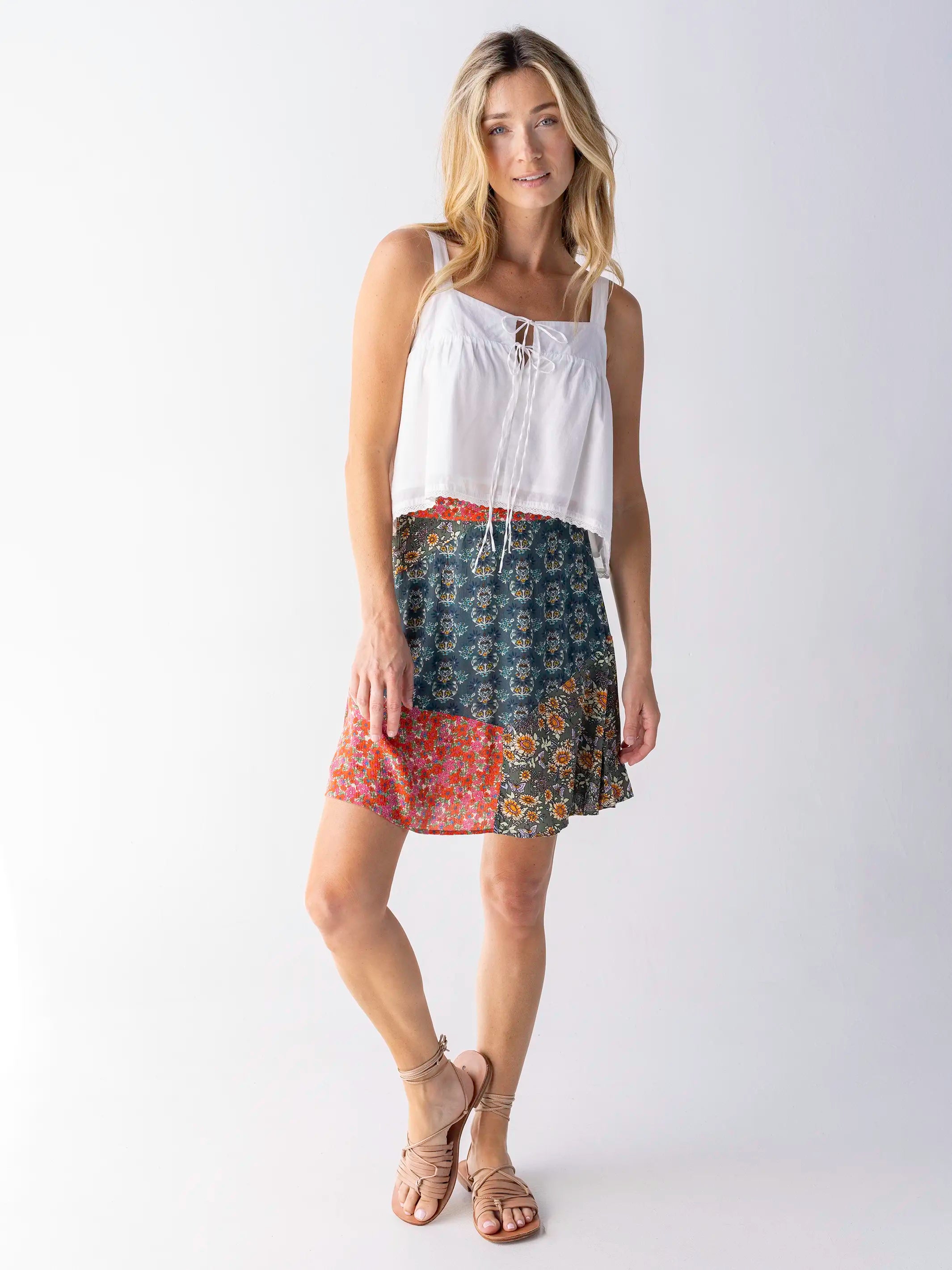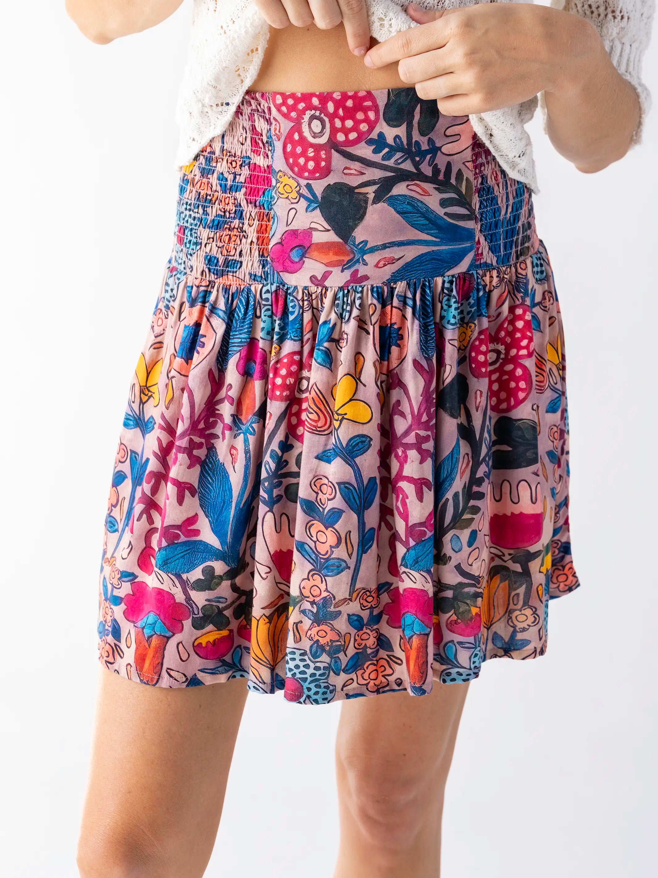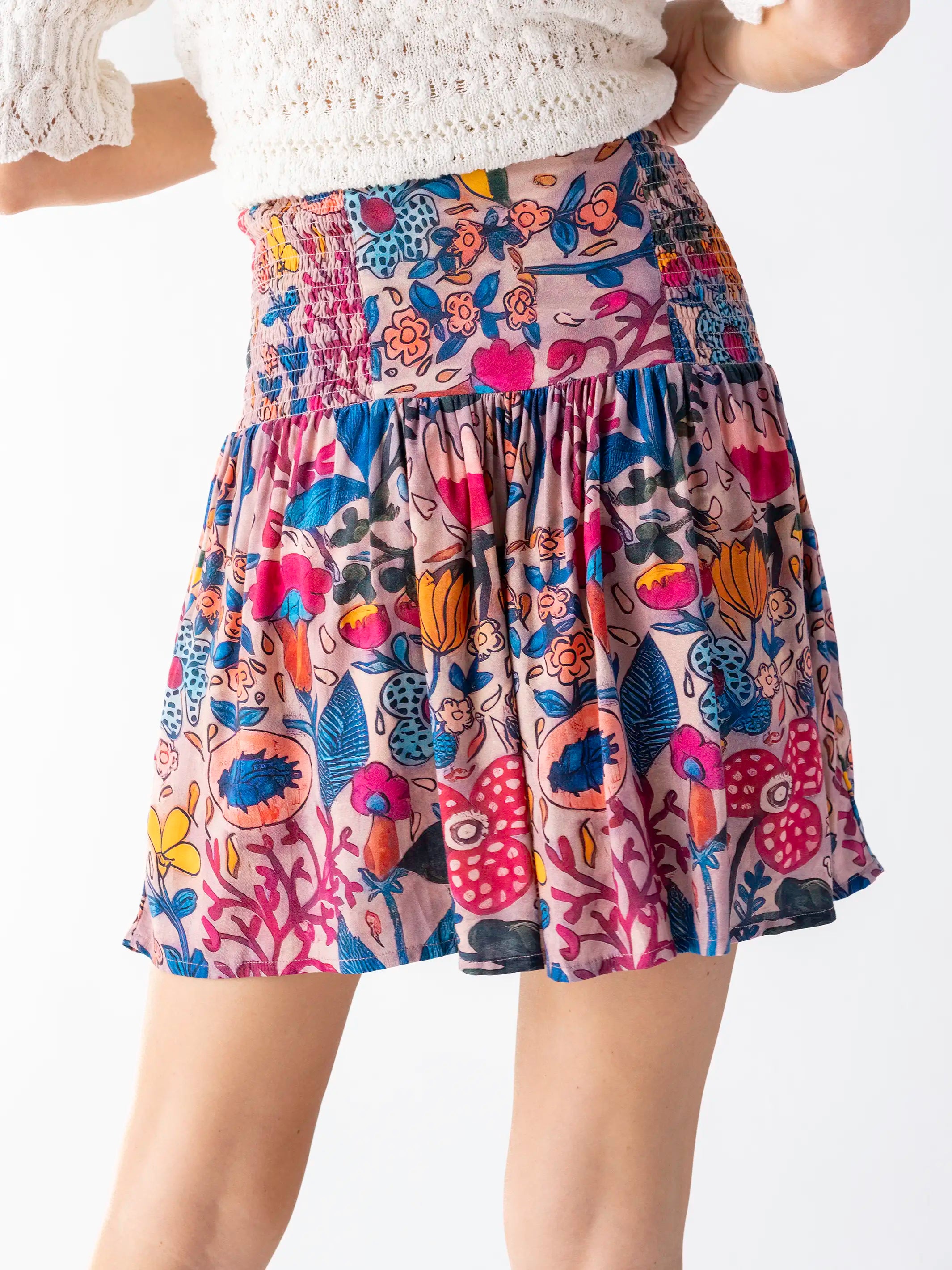 Malia Reversible Mini Skirt - Slate Floral Blooms