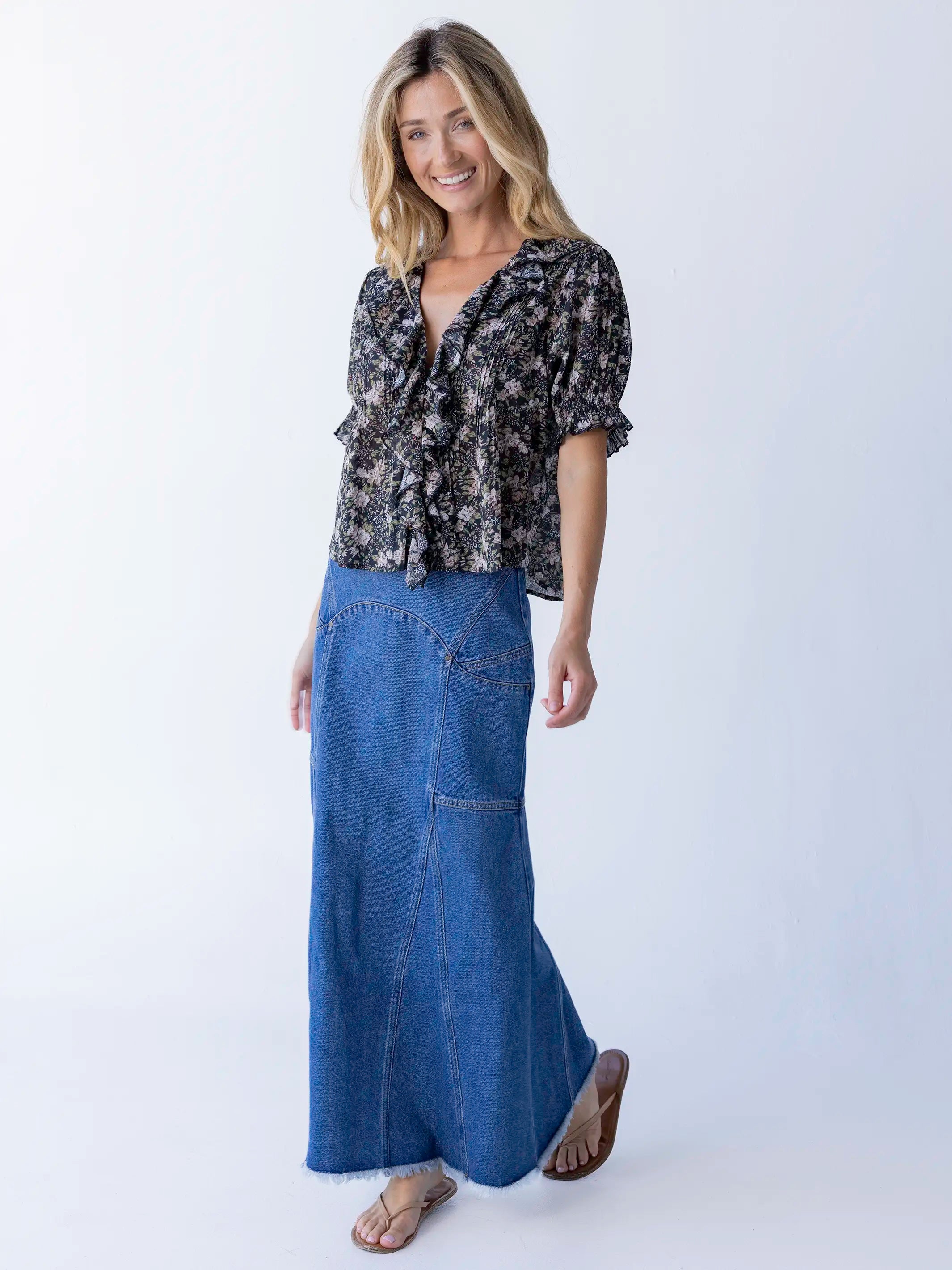 Mix It Up Maxi Skirt - Navy Red Mixed Print