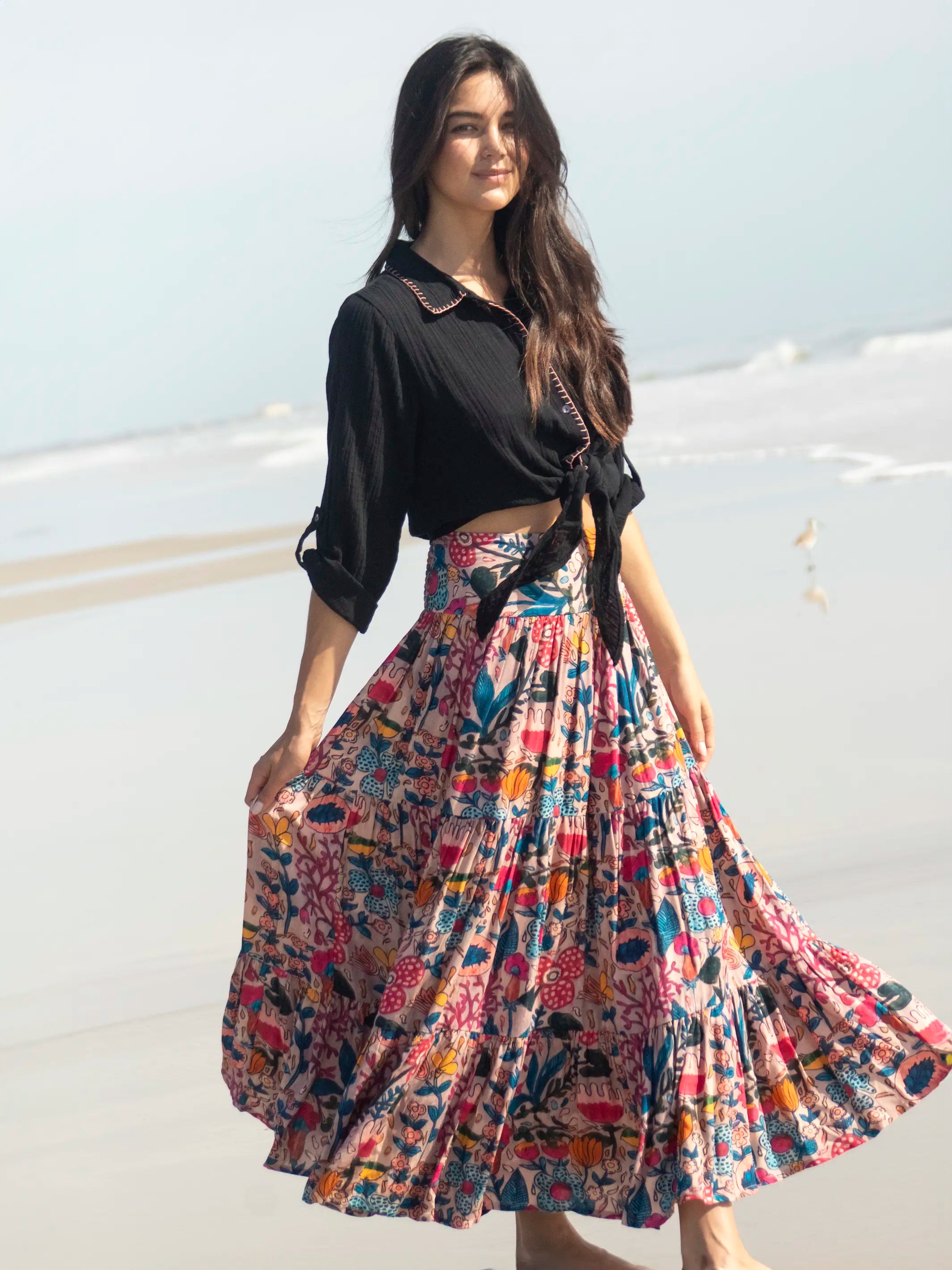 Hanna Convertible Maxi Skirt - Pink Flung Floral