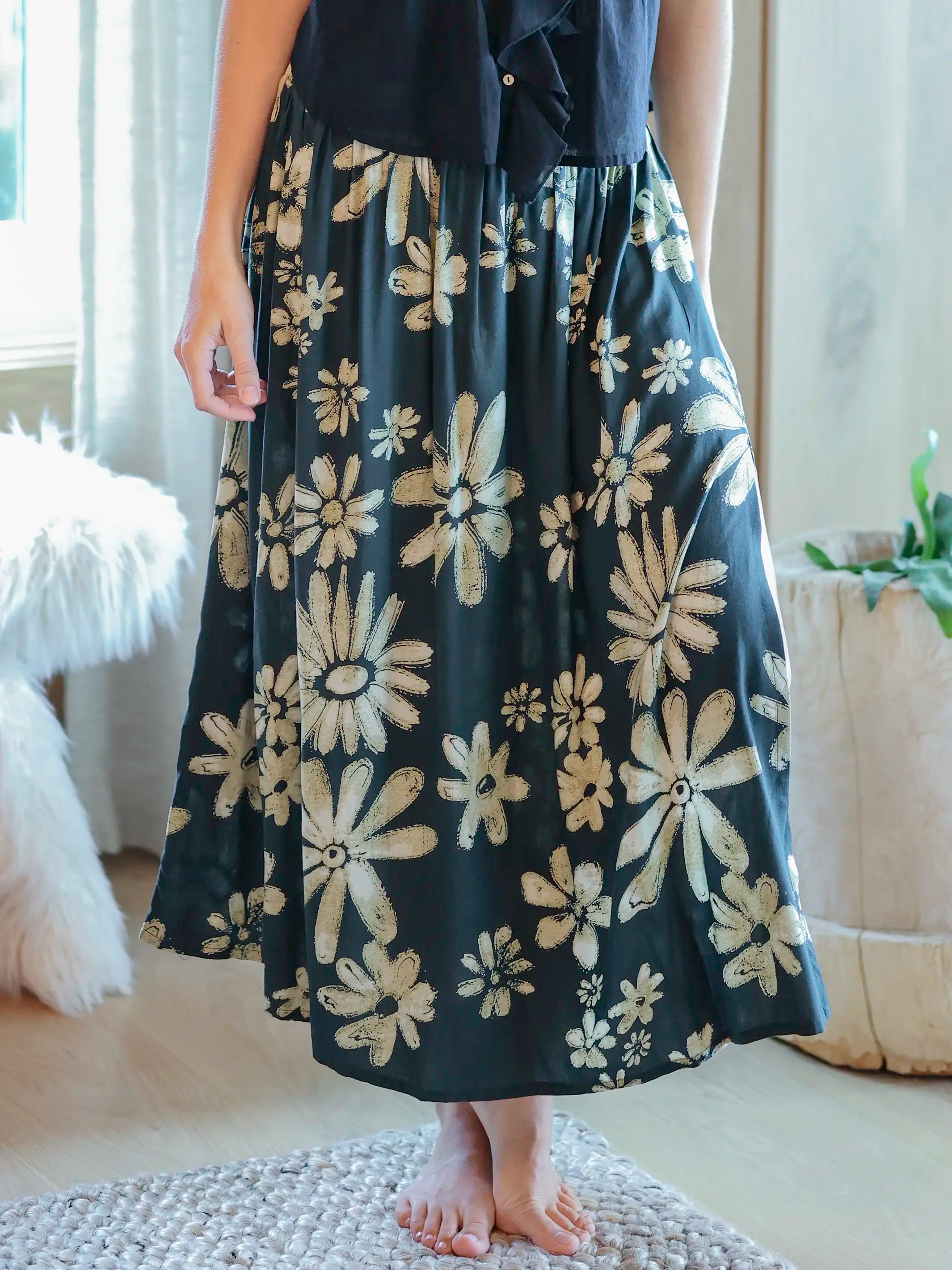 Flora Cotton Convertible Maxi Skirt - Purple Fan Floral