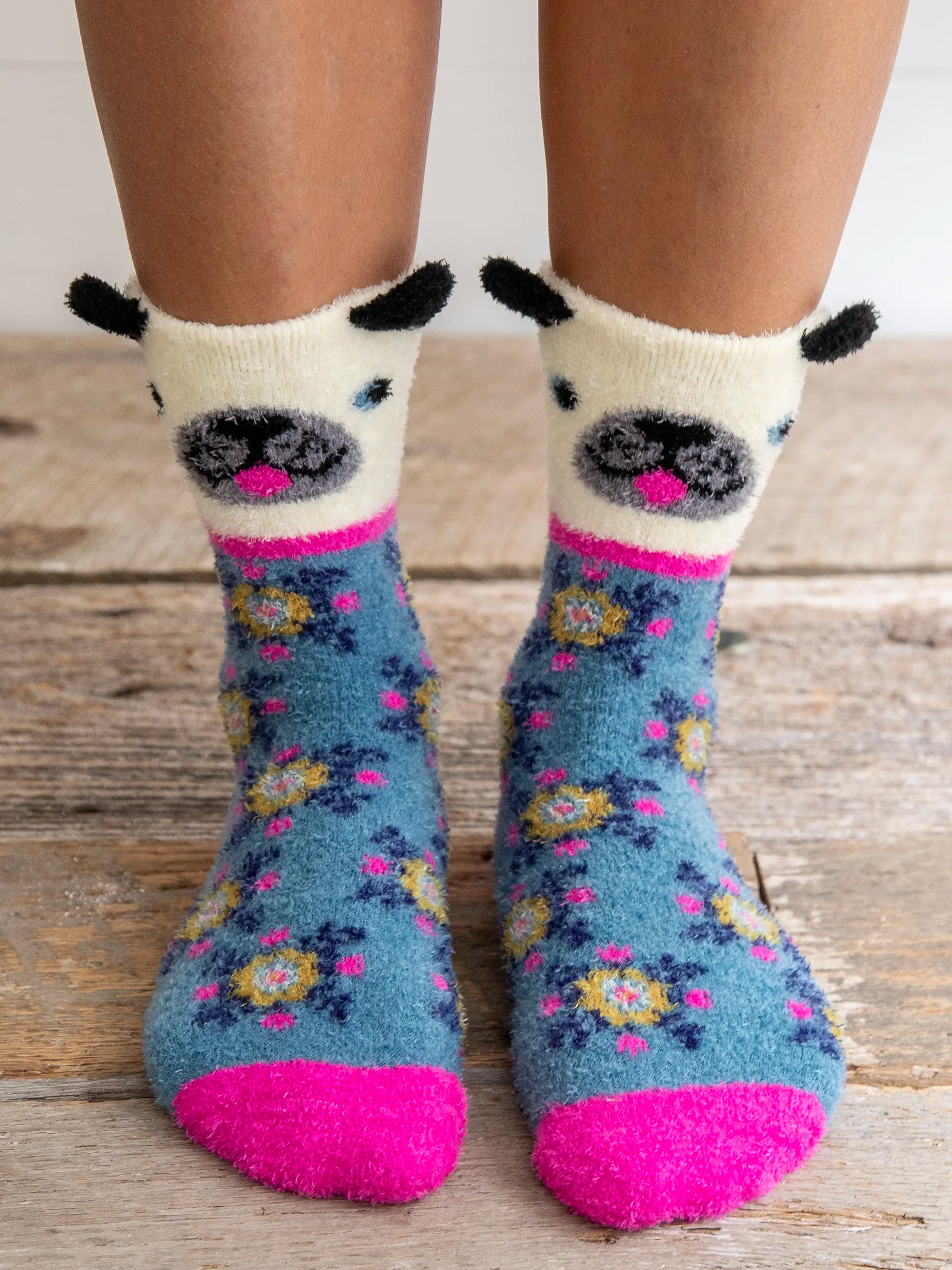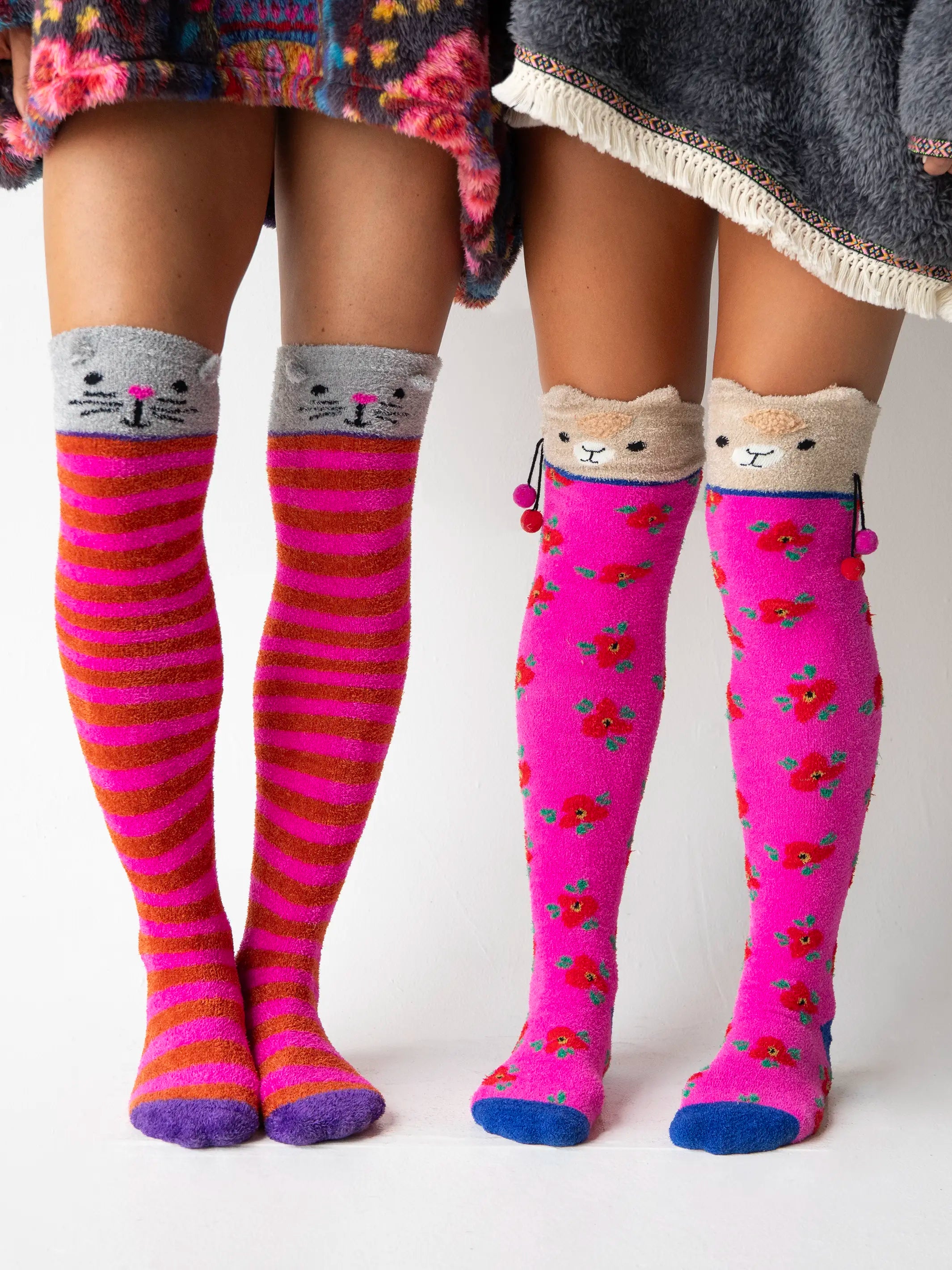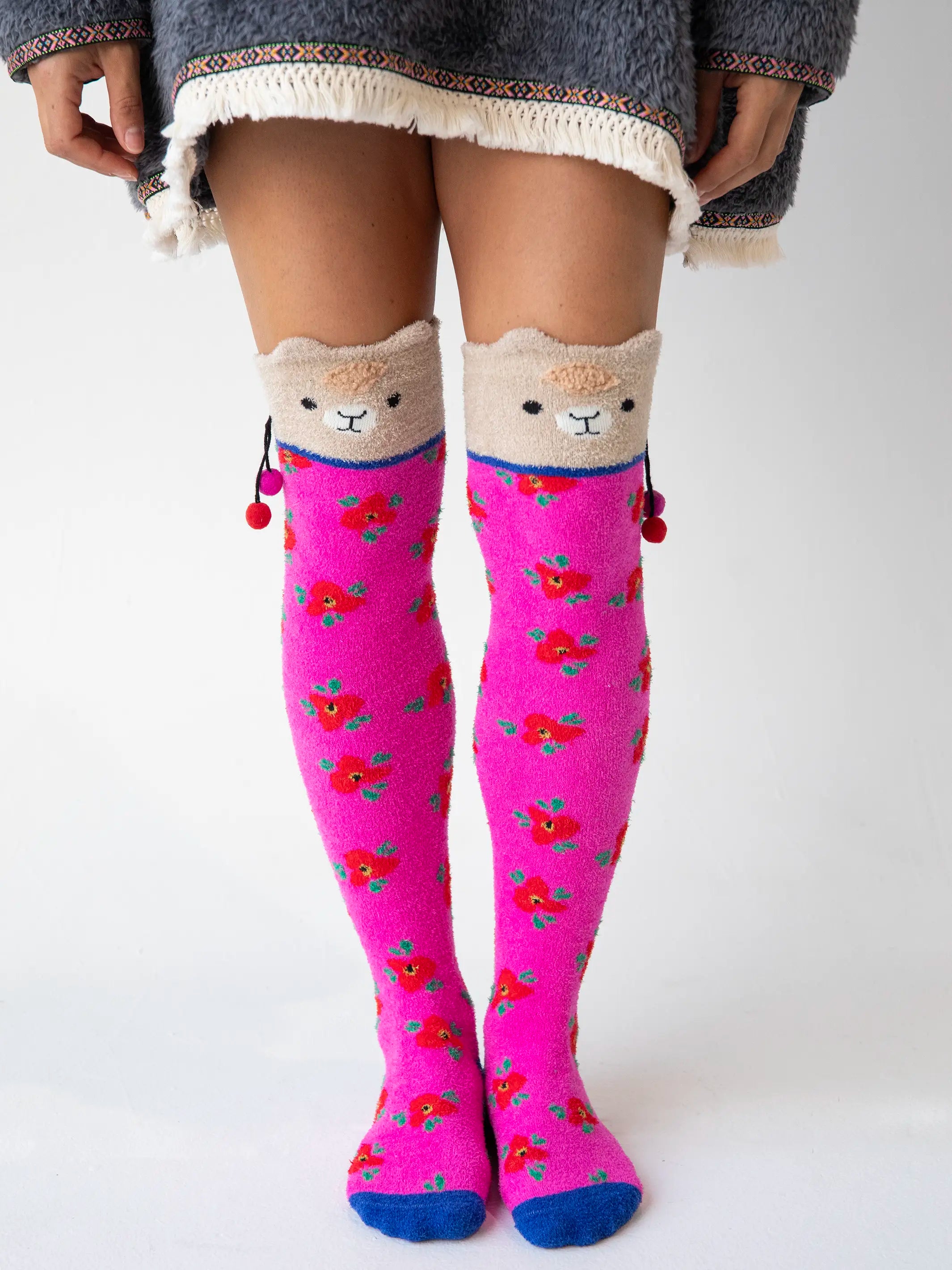 Over-the-Knee Critter Cozy Socks - Hot Pink Llama