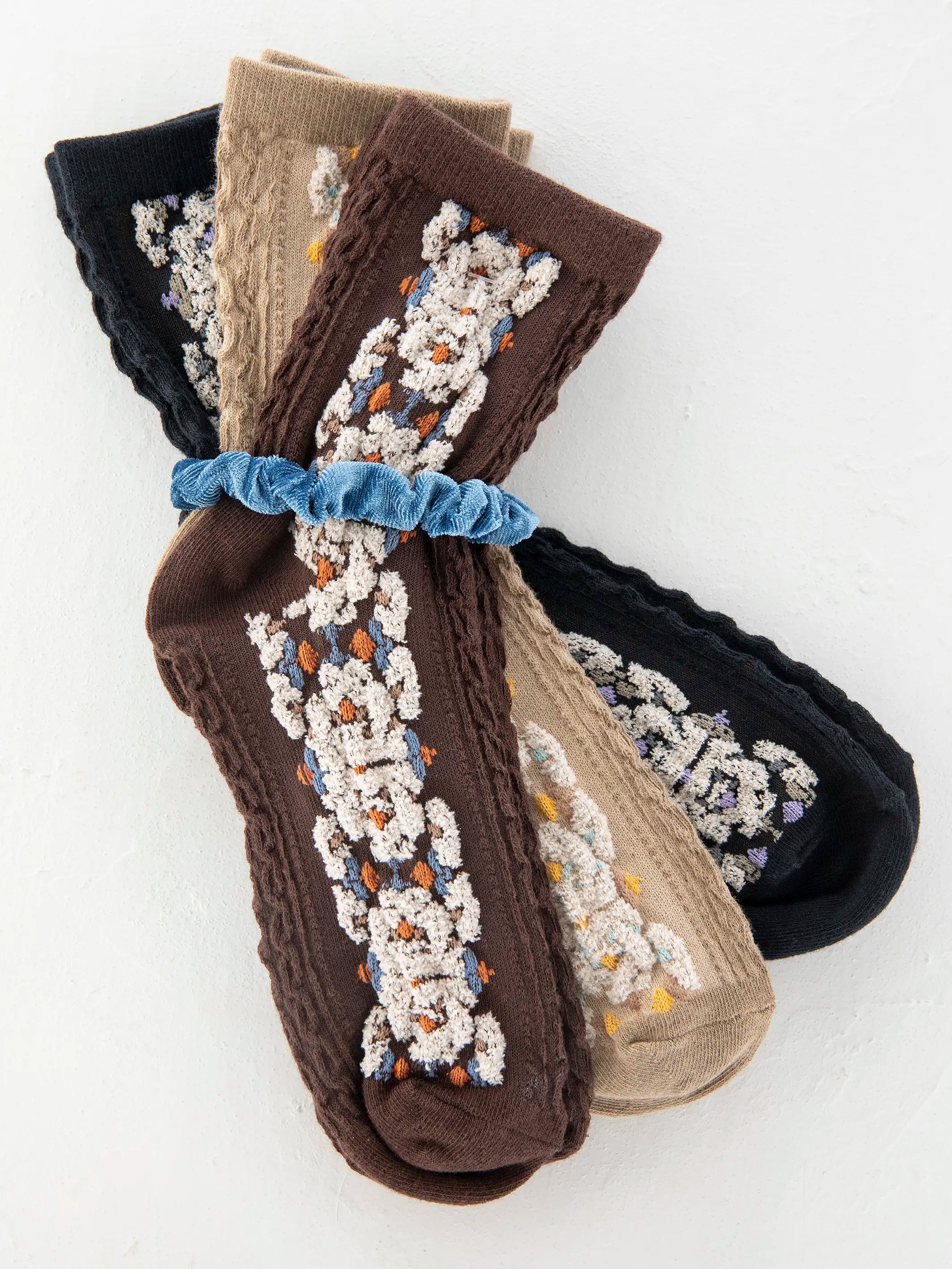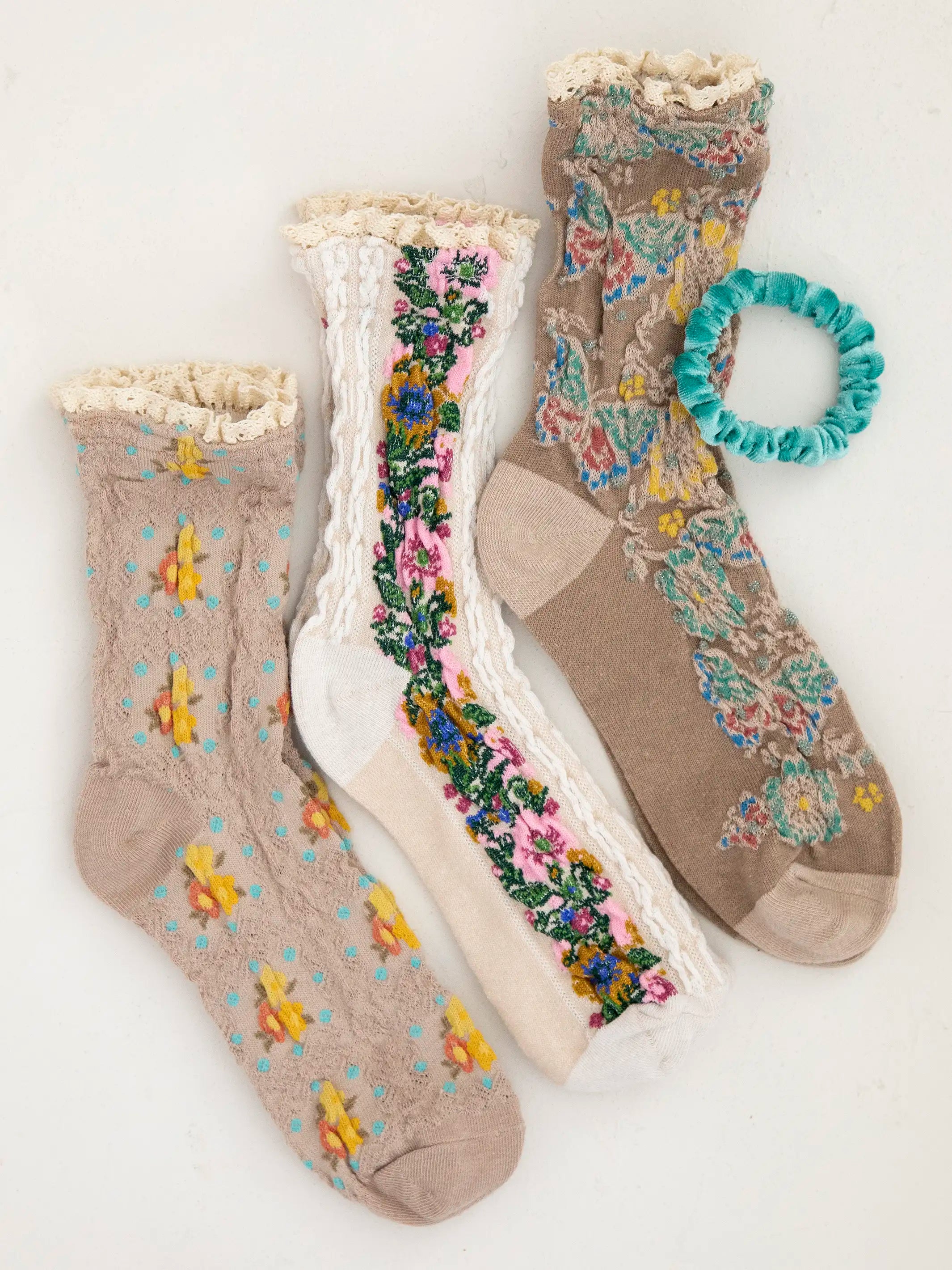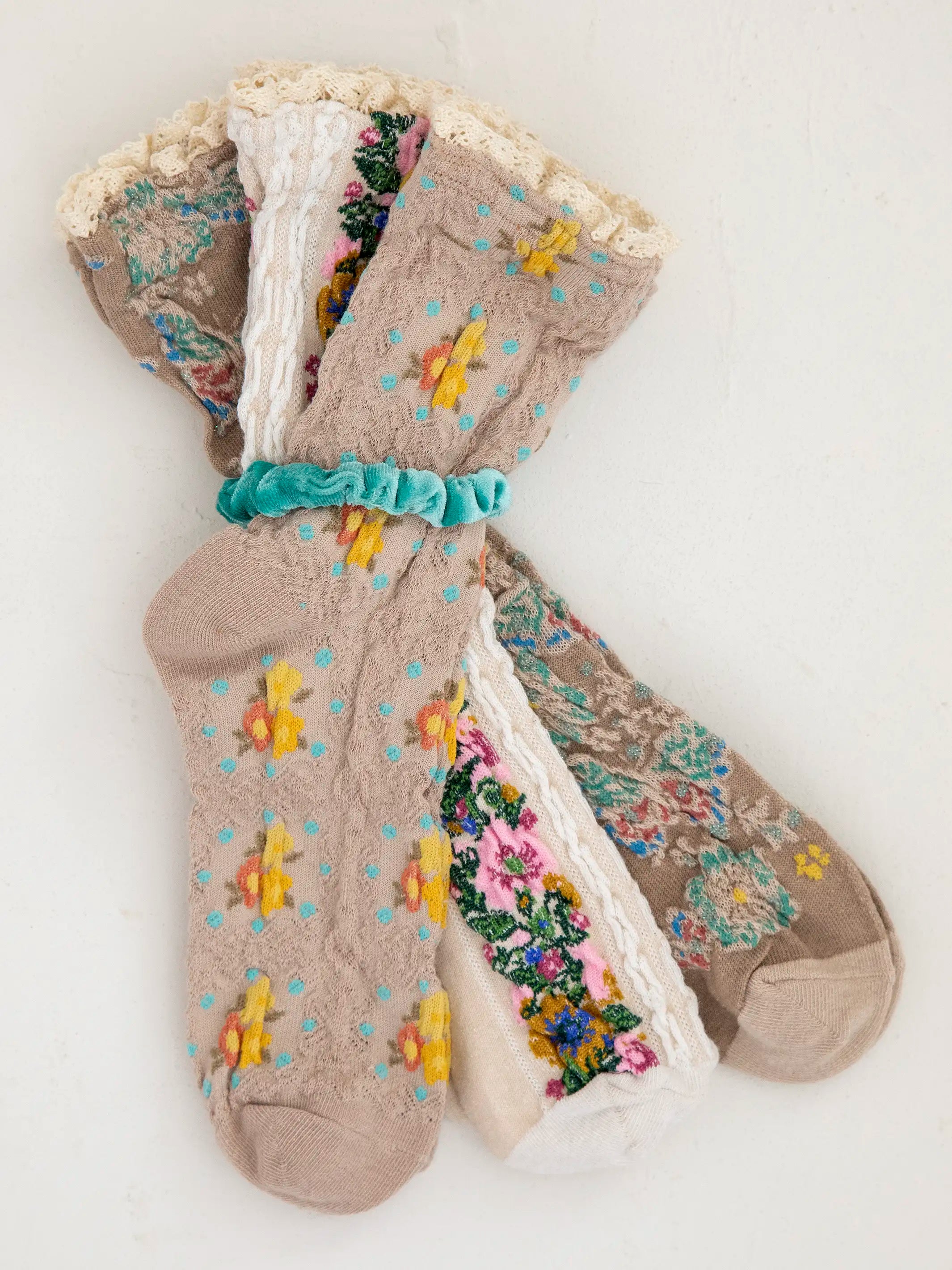 Boxed Boho Sock Set, Set of 3 - Neutral Floral