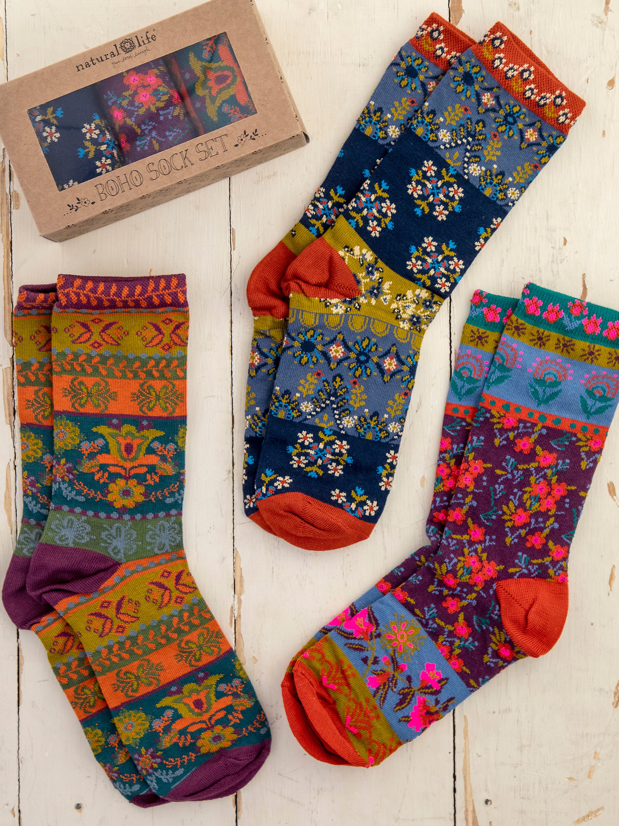 Boxed Boho Sock Set, Set of 3 - Blue Floral