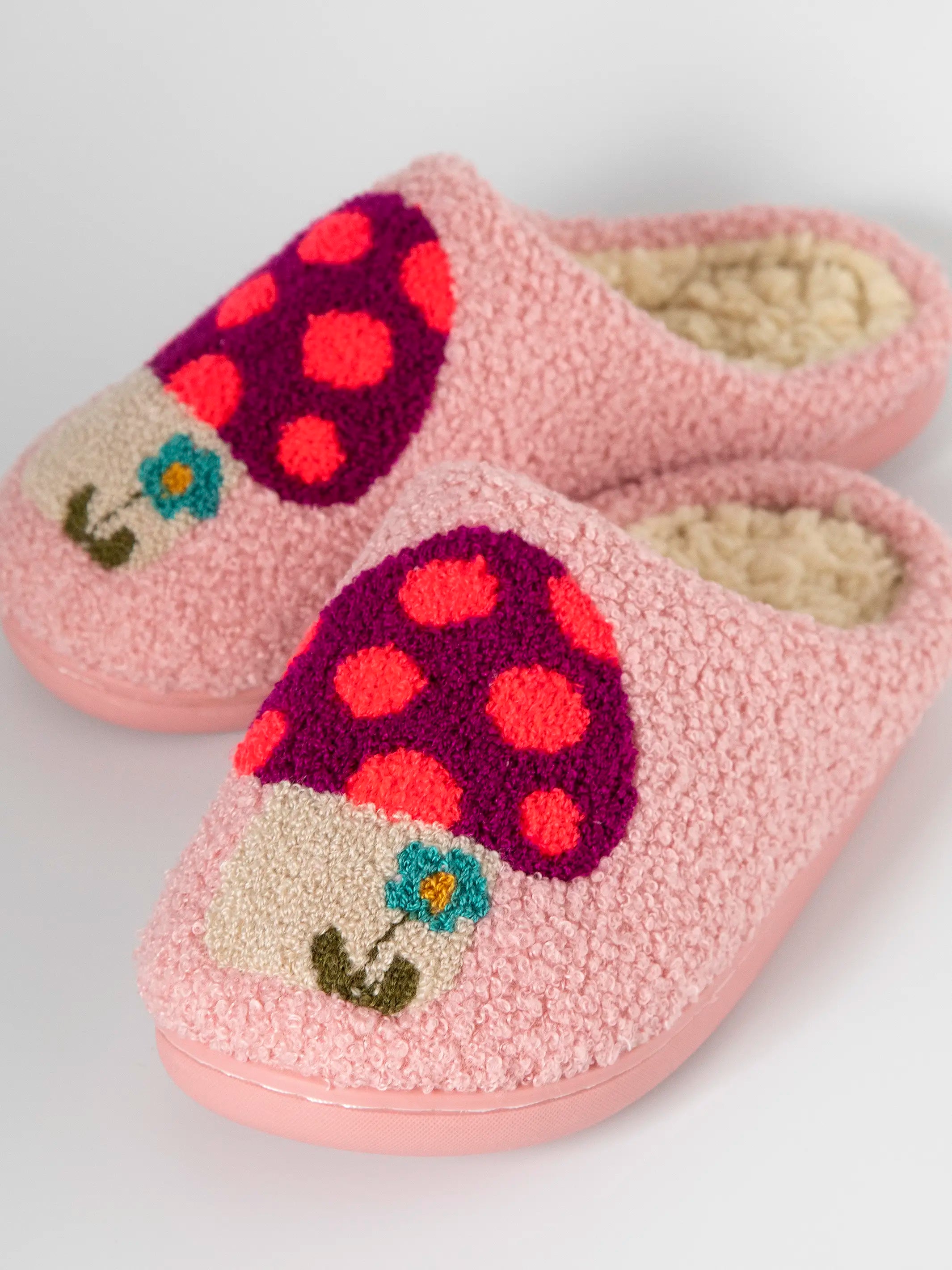 Icon Sherpa Slippers - Charcoal Pink Folk Flower