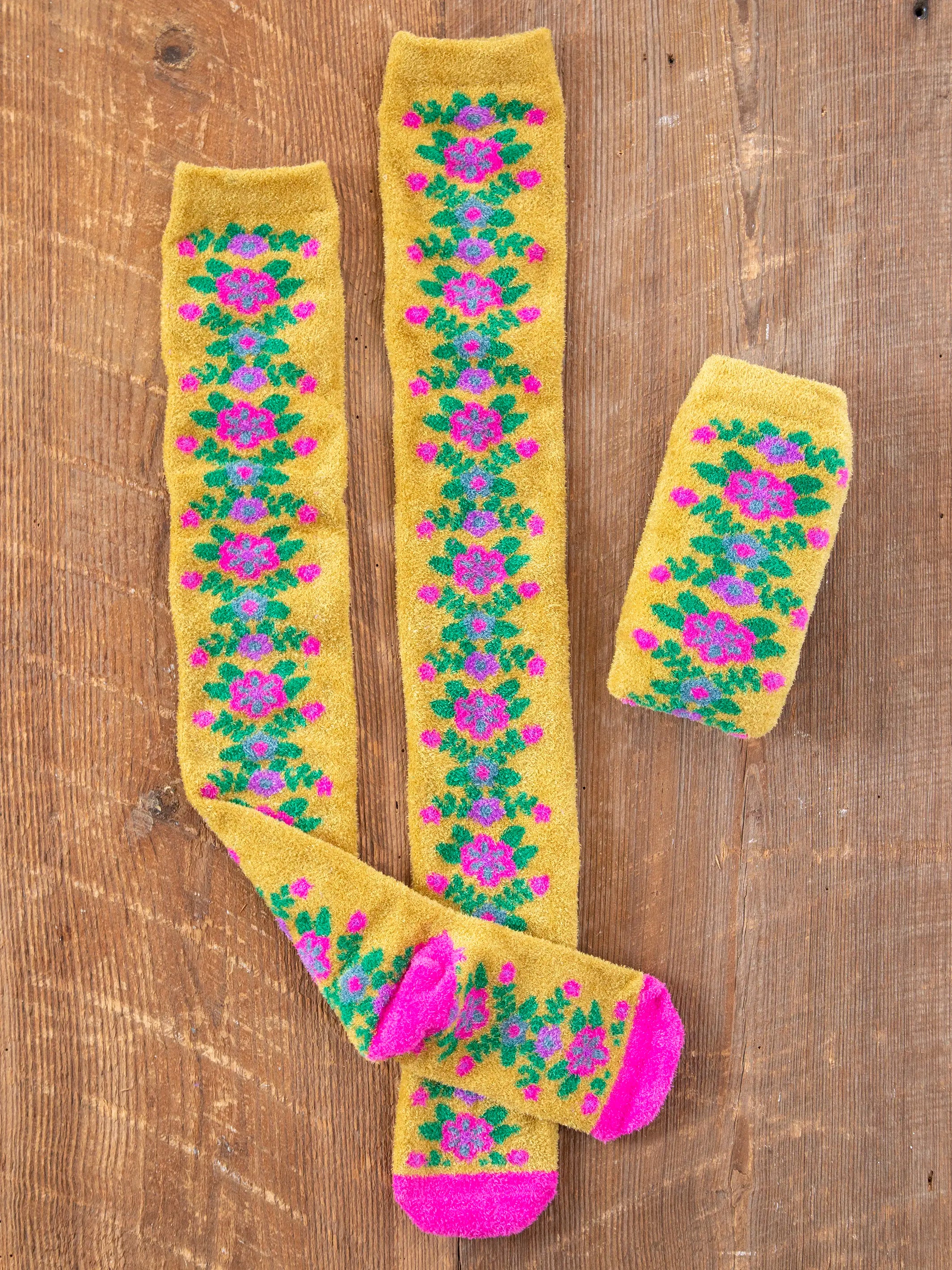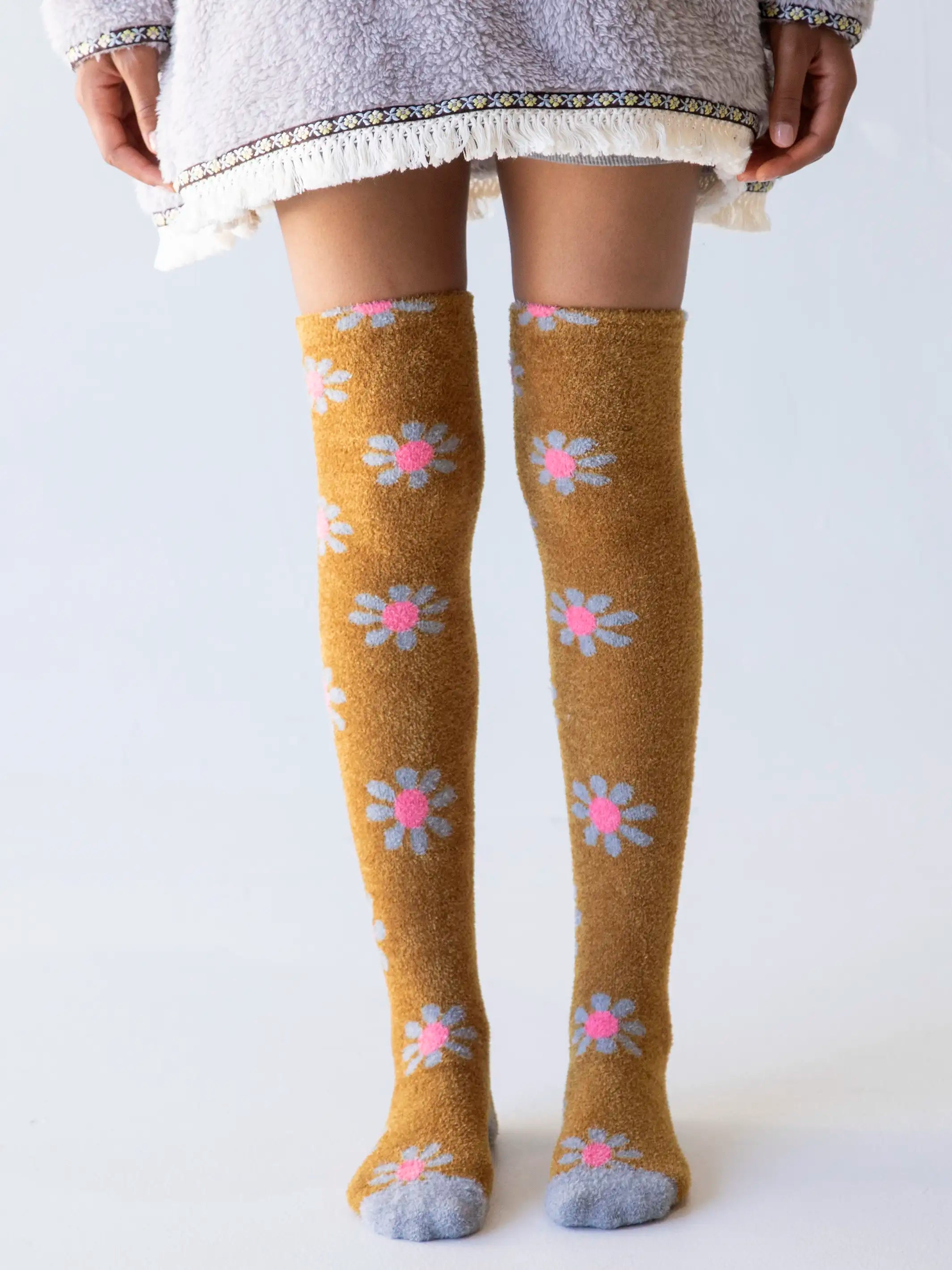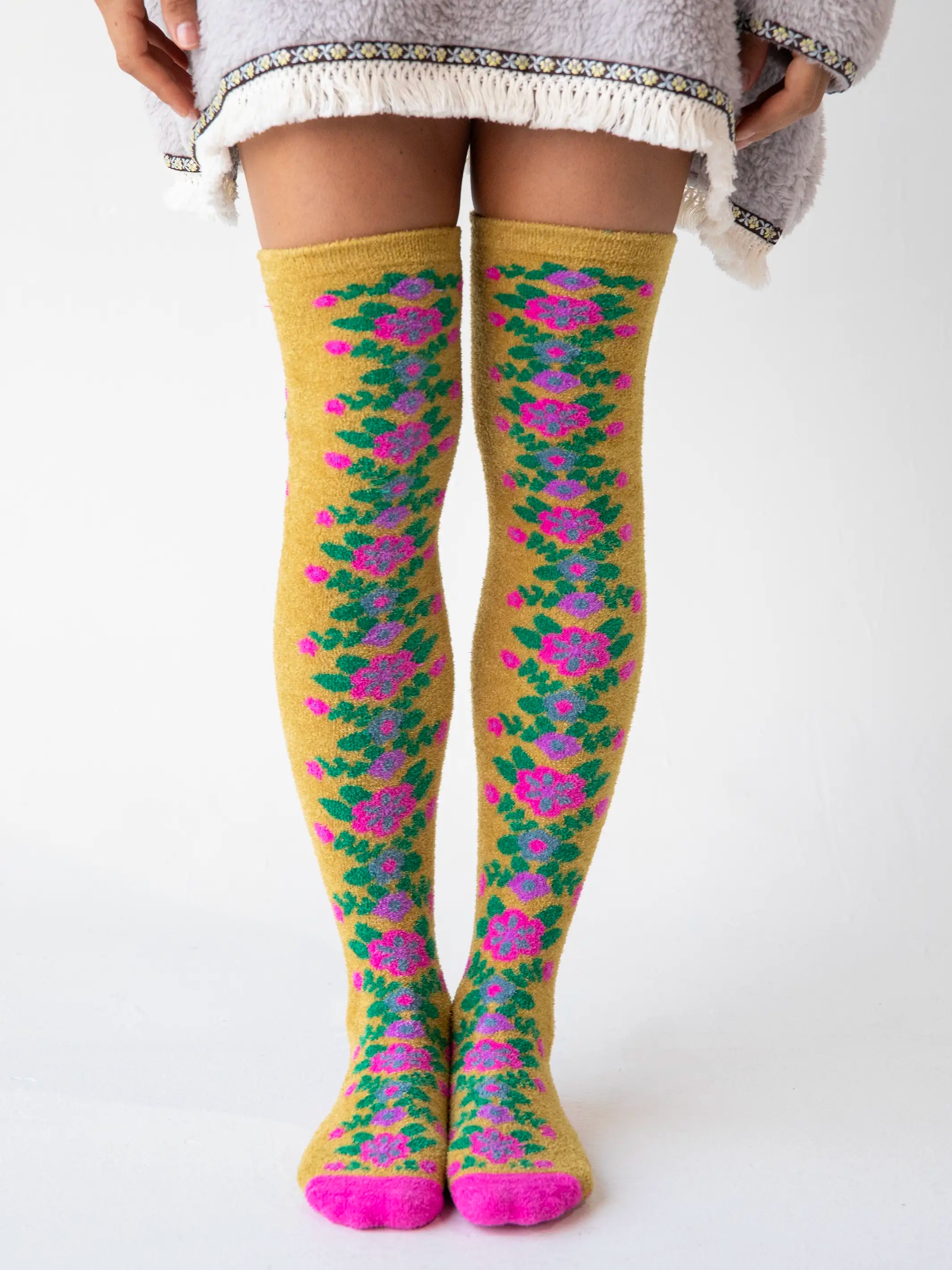 Over-the-Knee Cozy Socks - Mustard Folk Flower