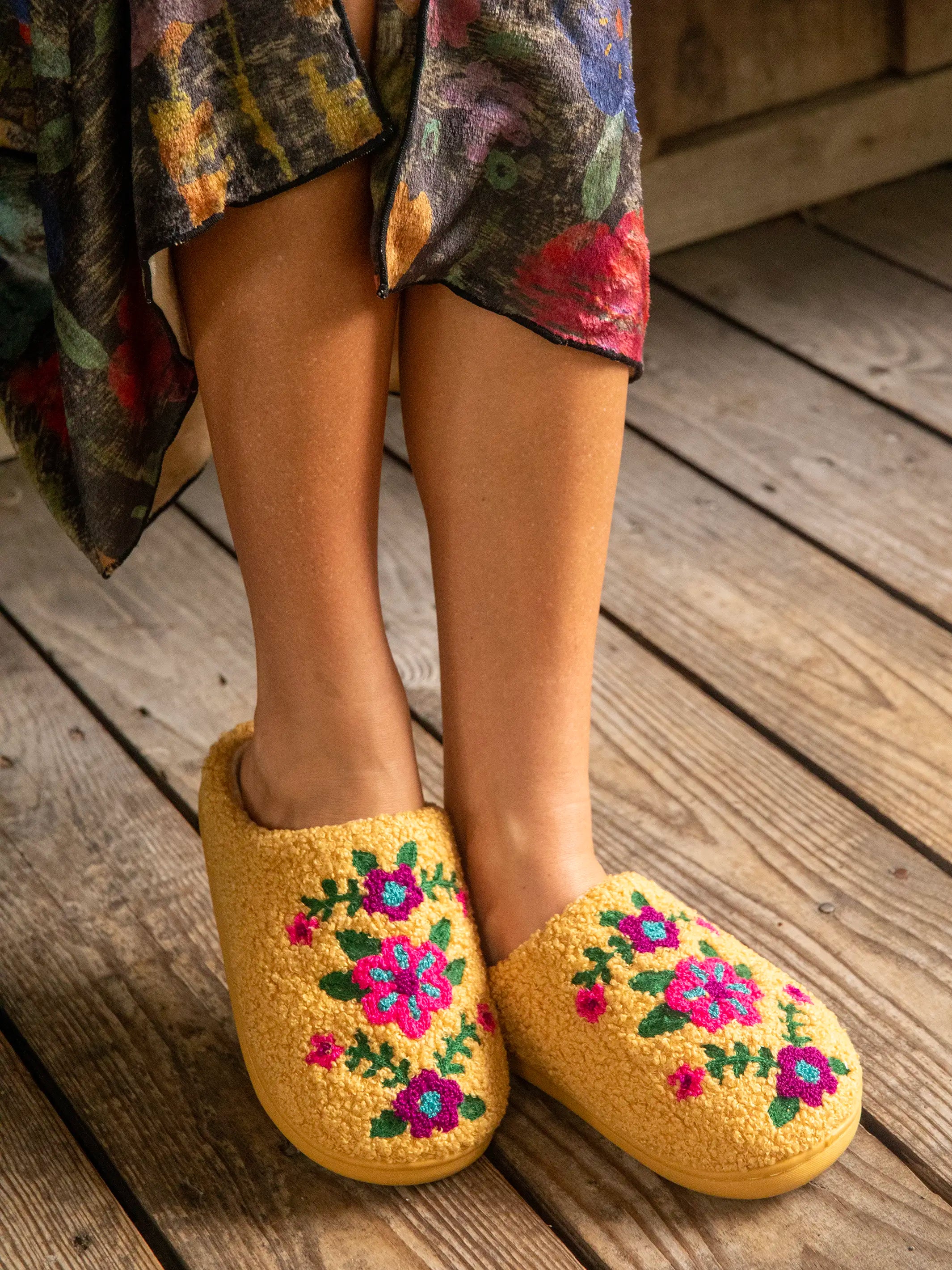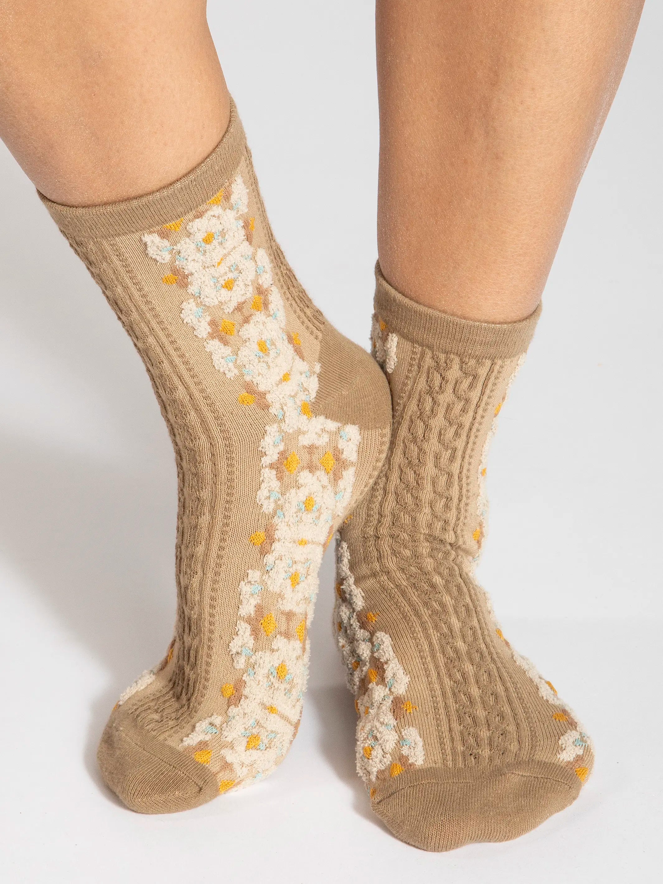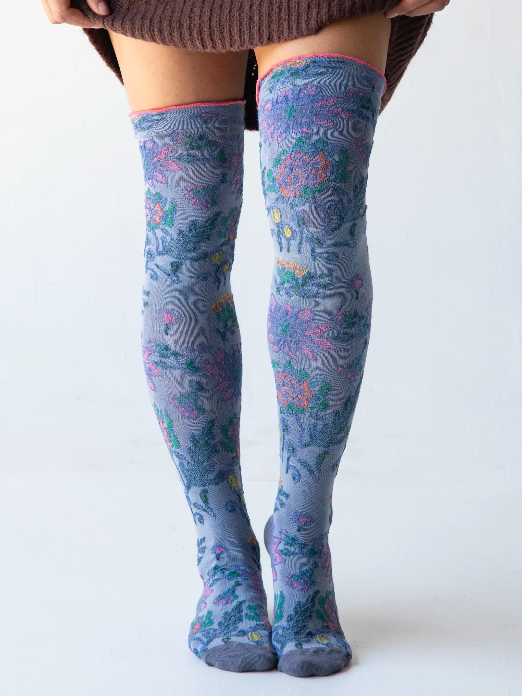 Over-the-Knee Cozy Socks - Mustard Folk Flower
