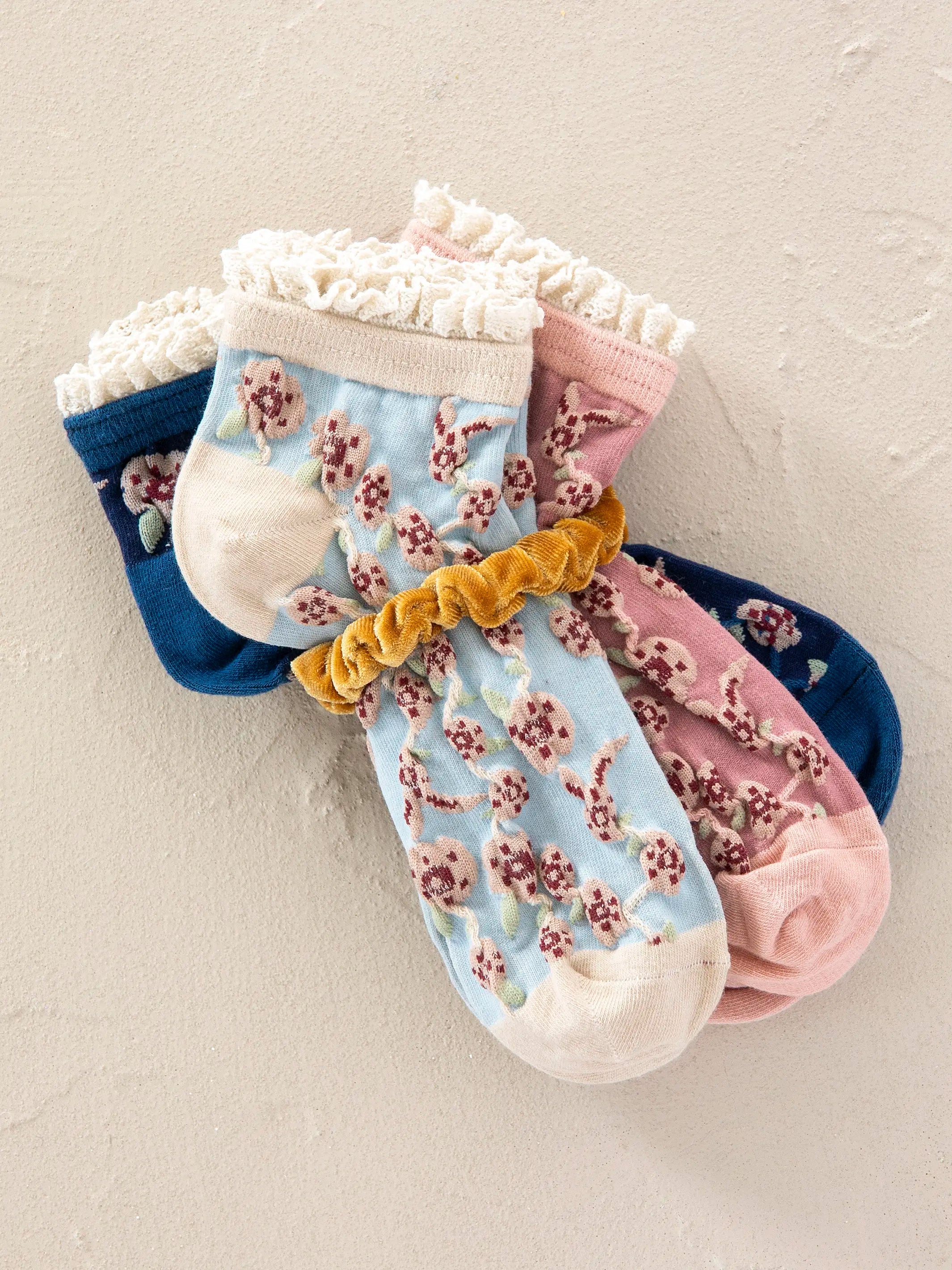 Blossom Ankle Socks & Scrunchie, Set of 3 - Dusty Blue