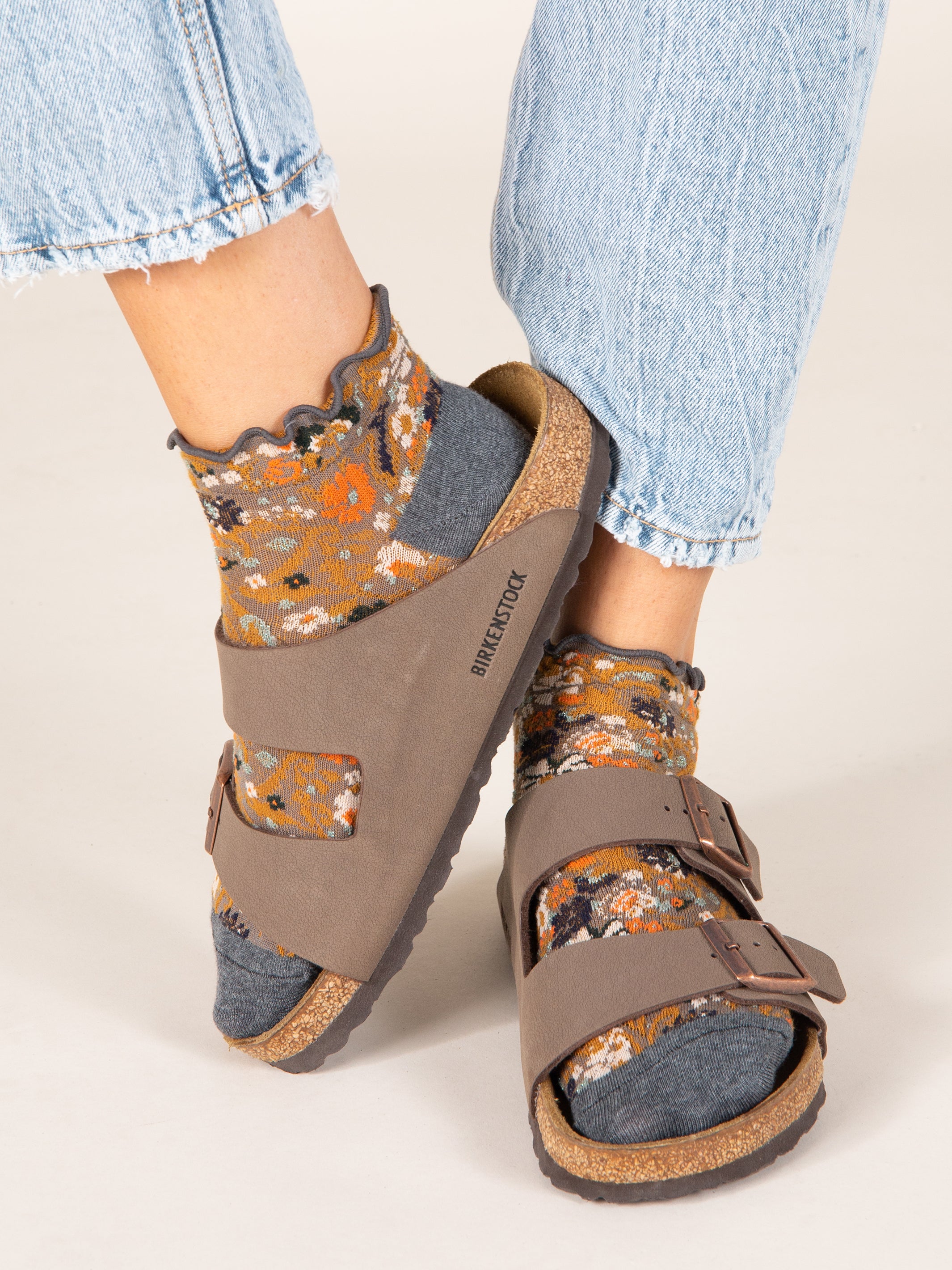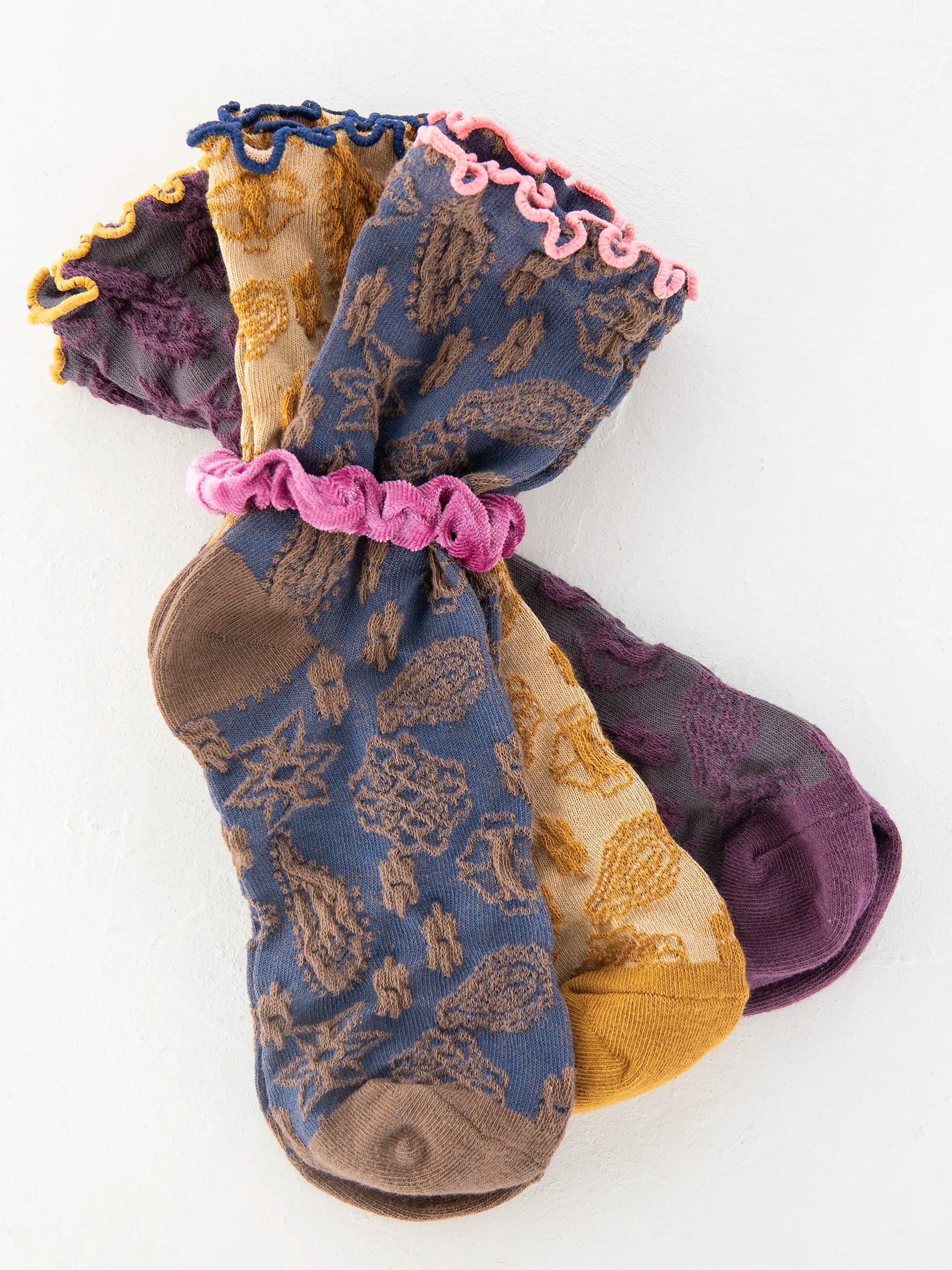 Cozy Ankle Socks, Set of 3 - Mustard Floral