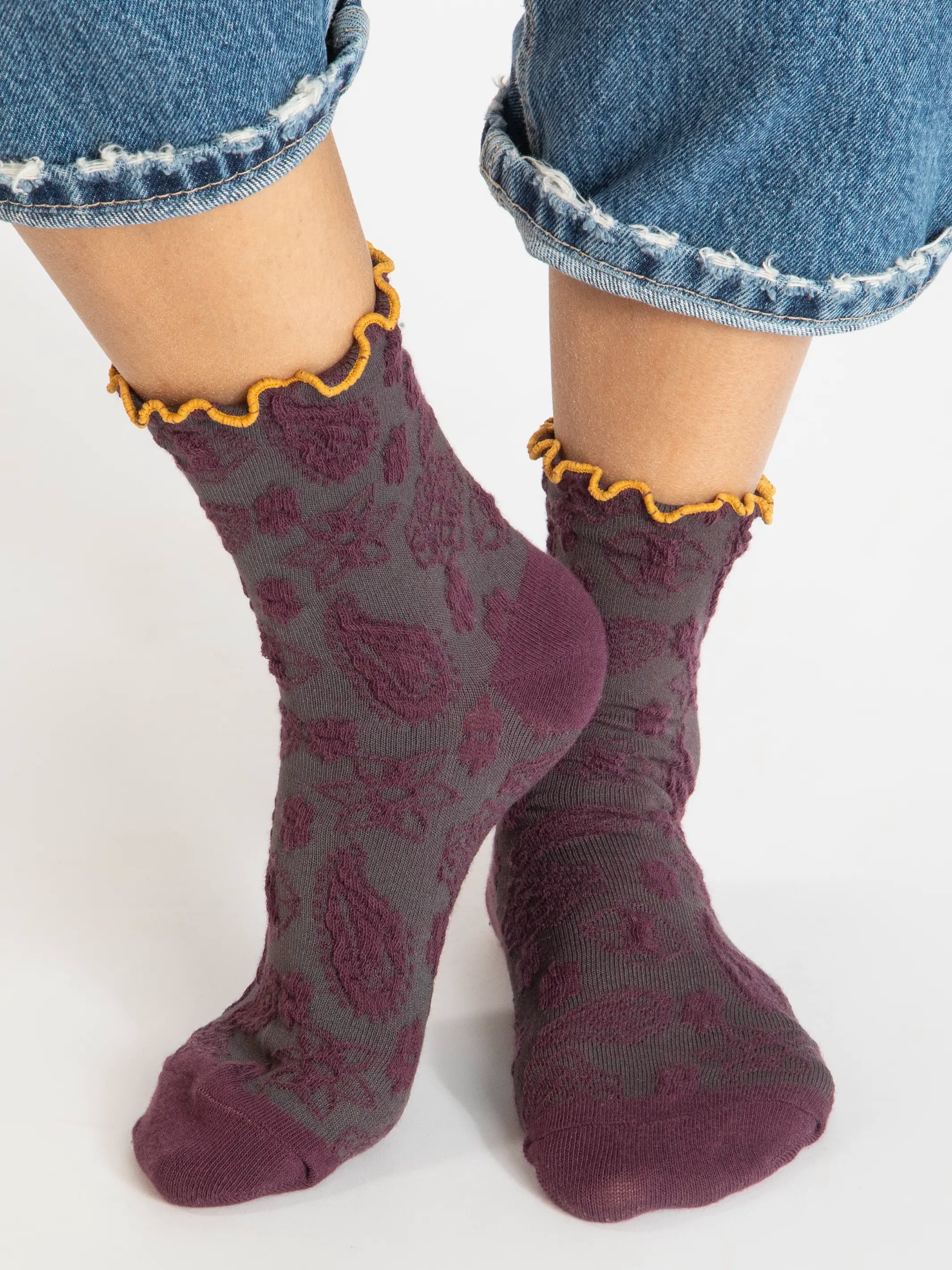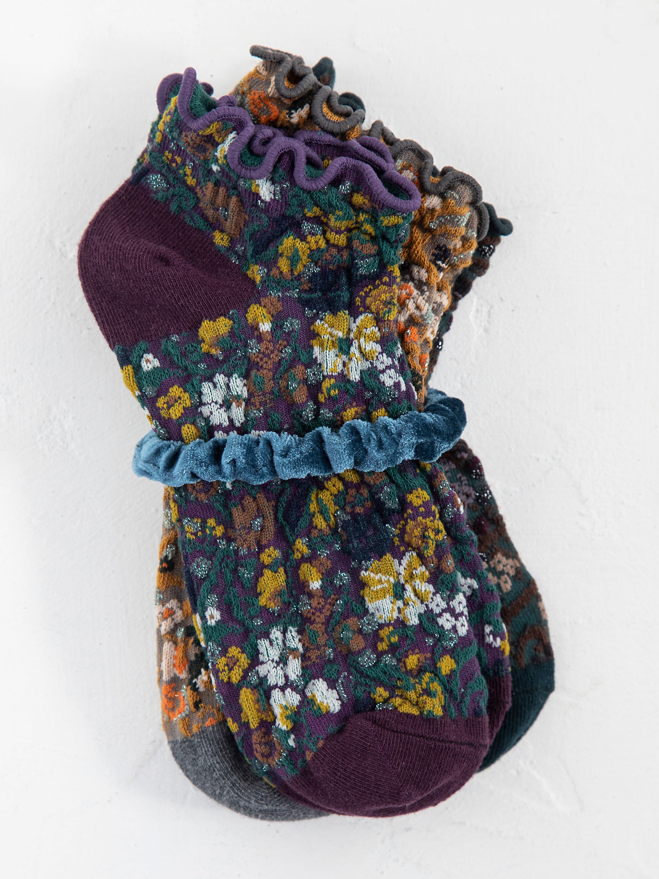 Boxed Boho Sock Set, Set of 3 - Plum Floral
