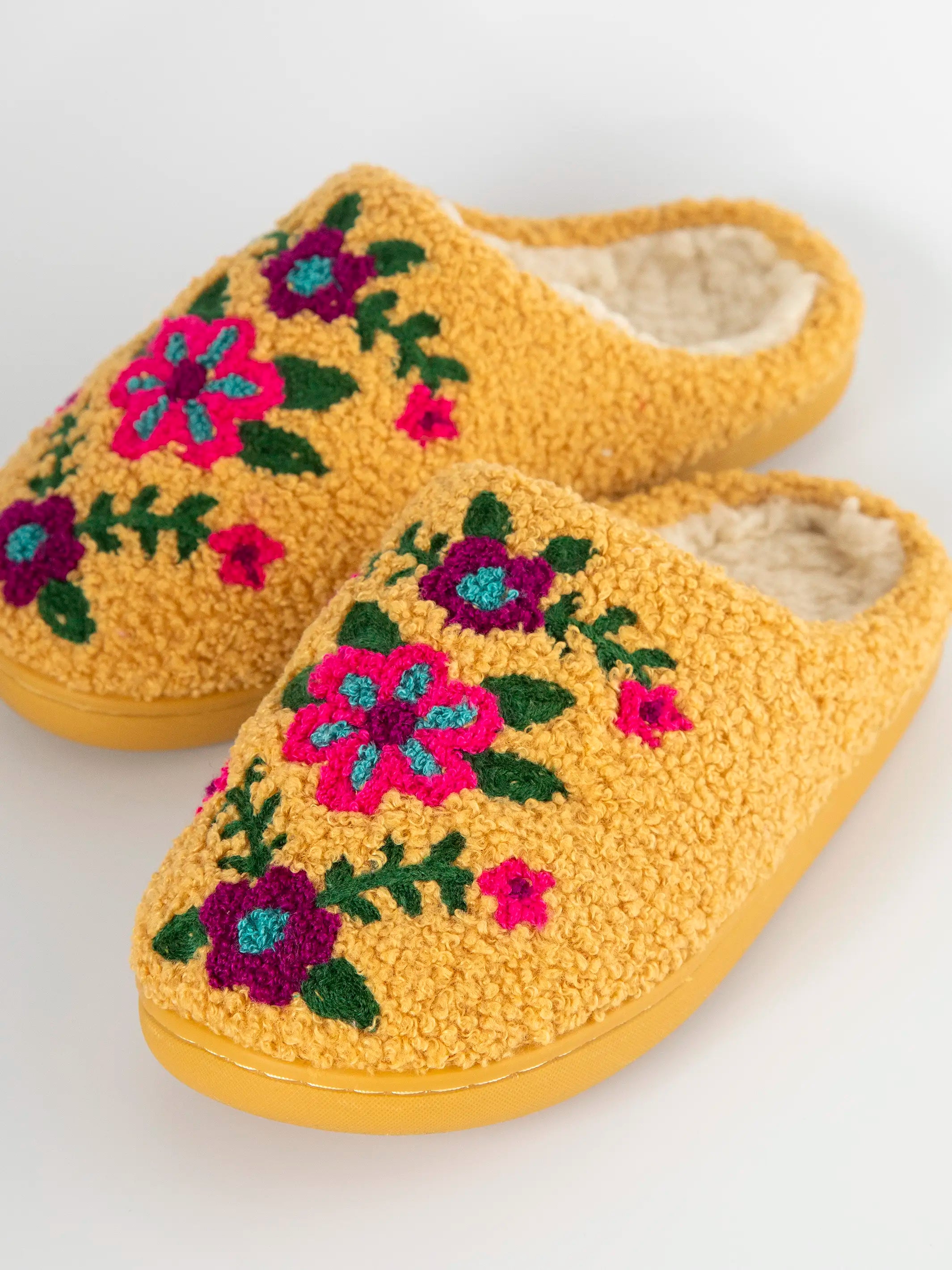 Icon Sherpa Slippers - Dusty Blue Folk Flower