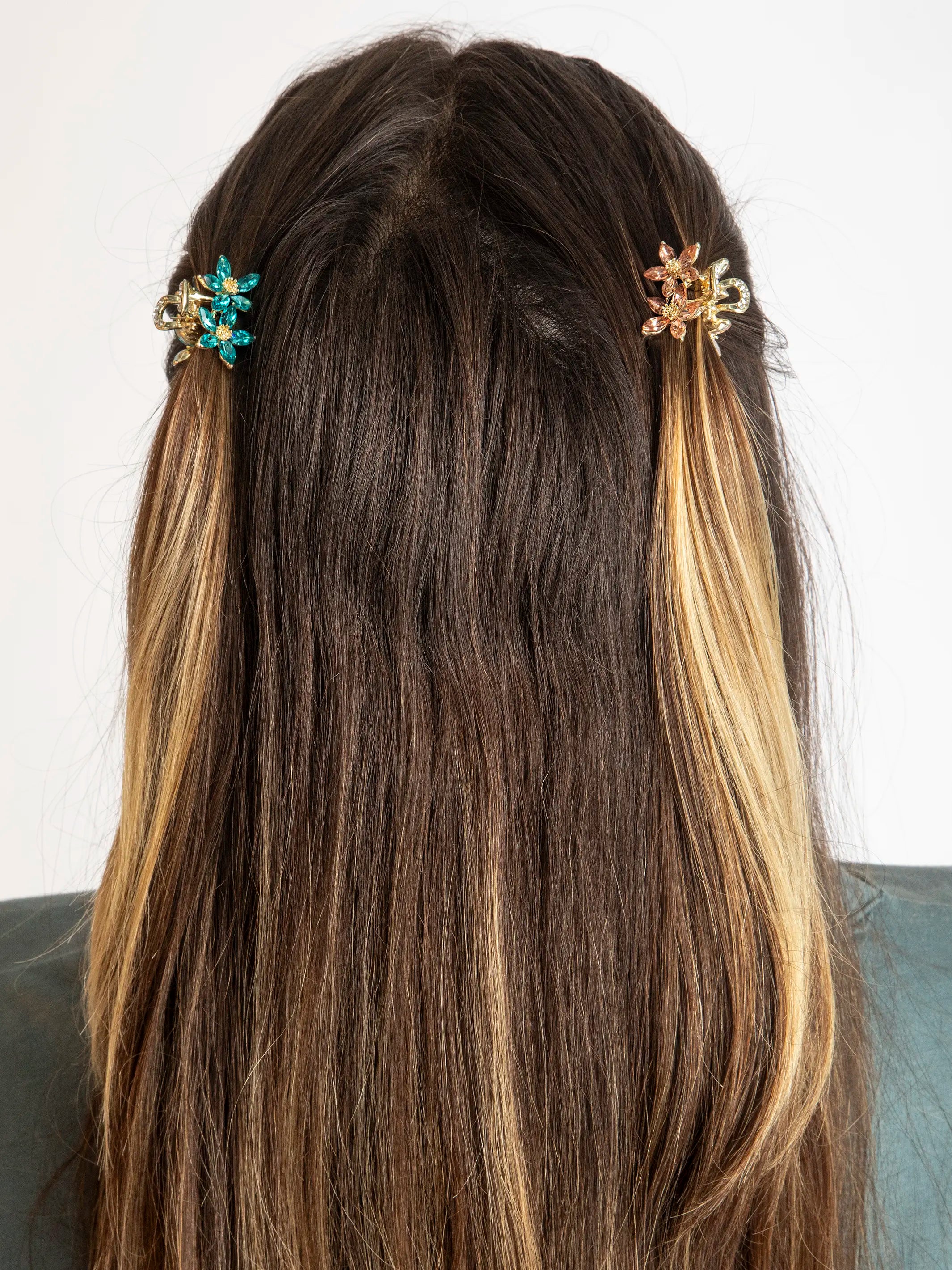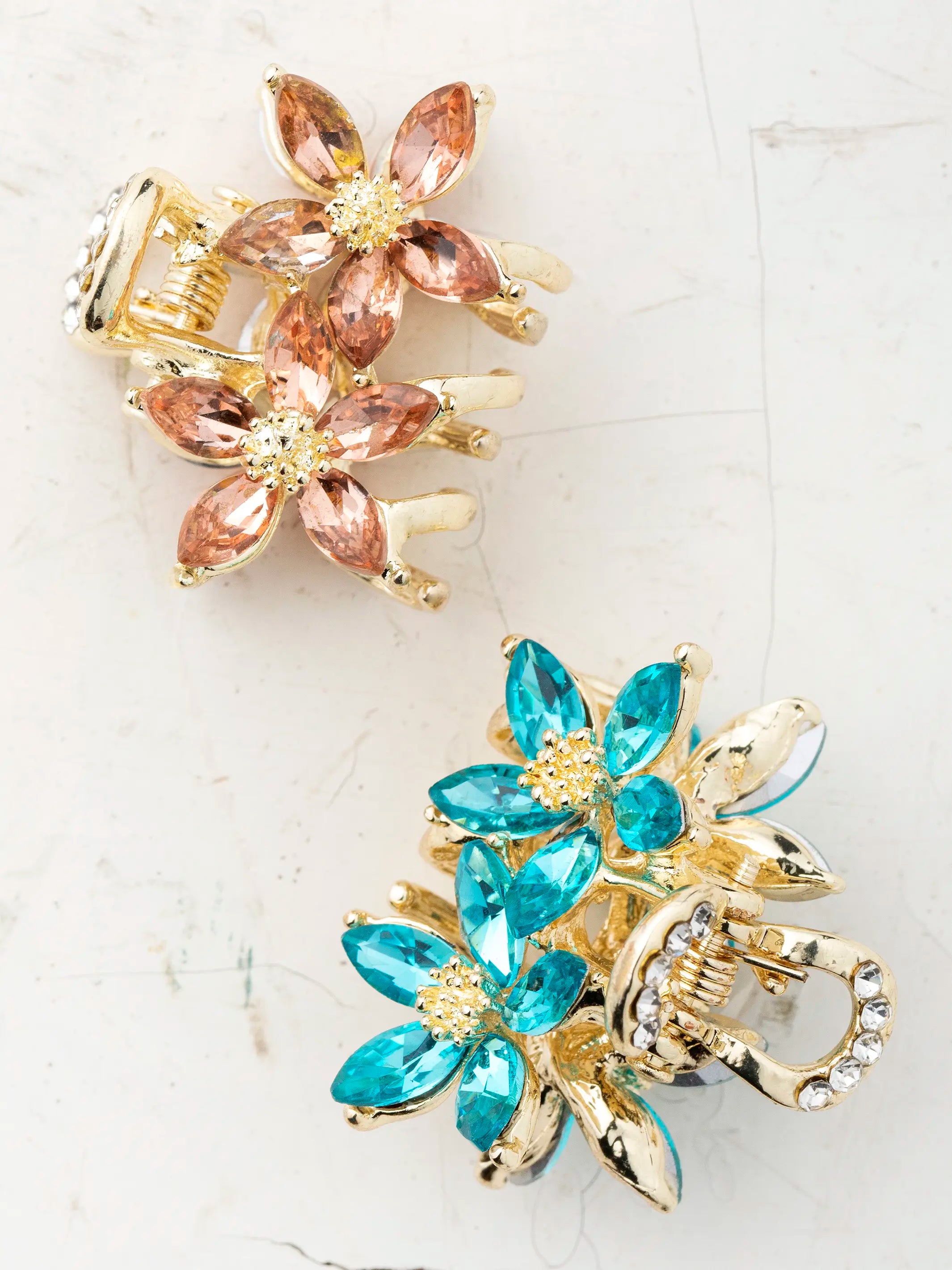 Rhinestone Blossom Claw Clips, Set of 2 - Multicolored