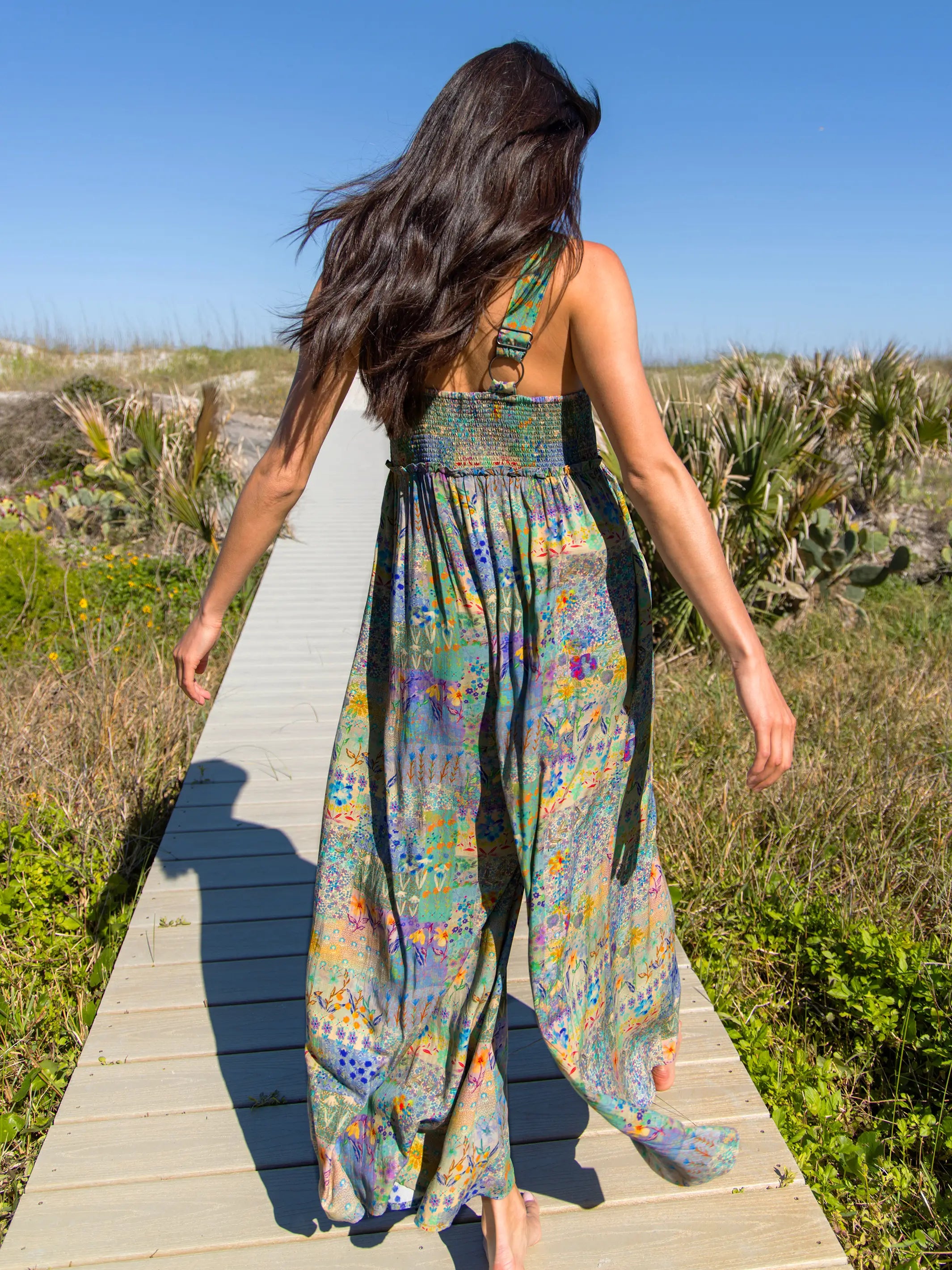 Gabi Jumpsuit - Blue Watercolor Patchwork