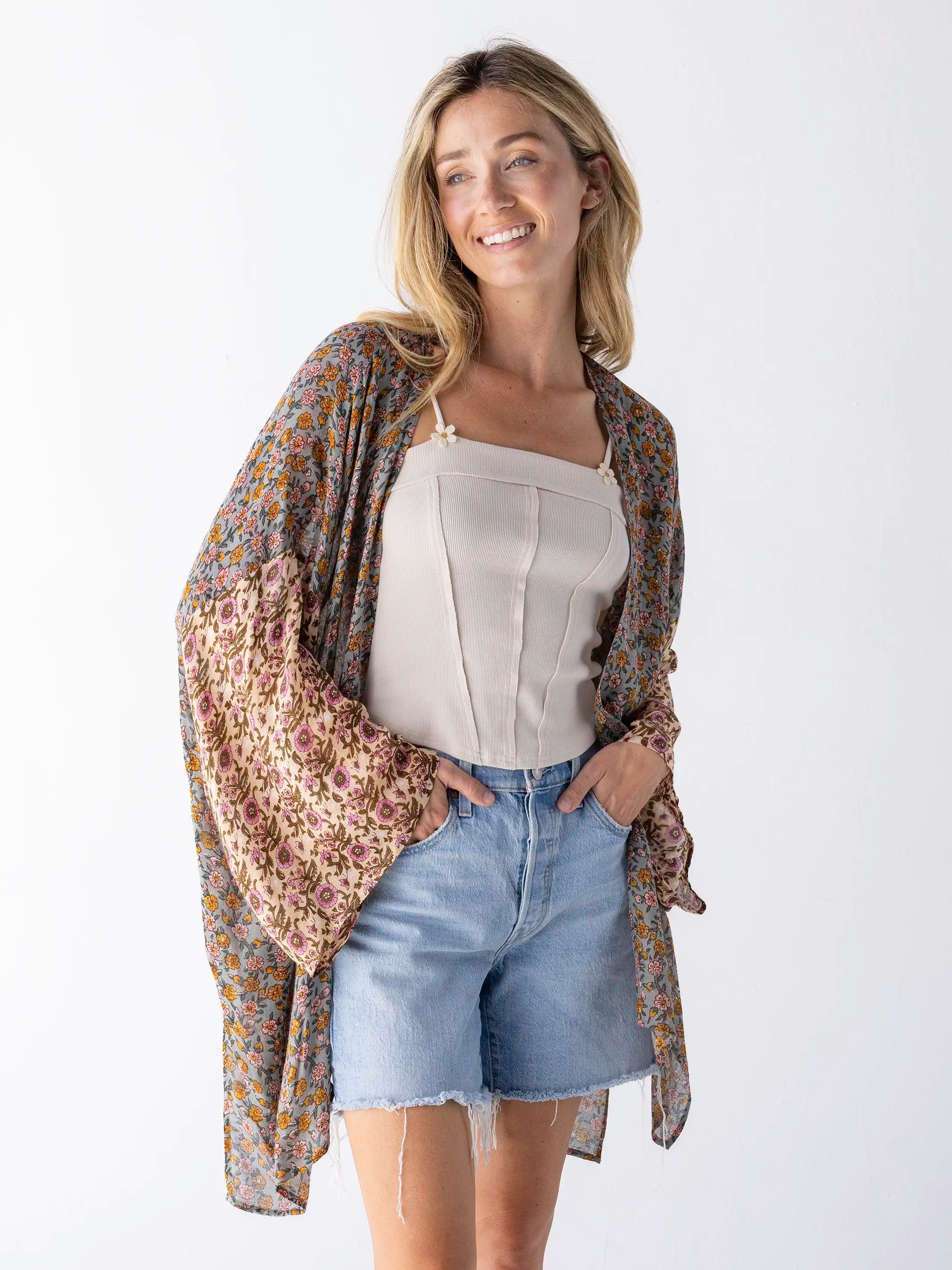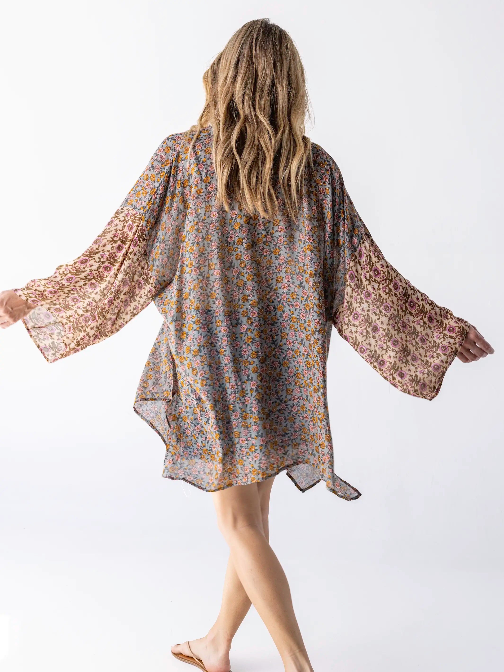 Sierra Kimono - Mustard Pink Floral
