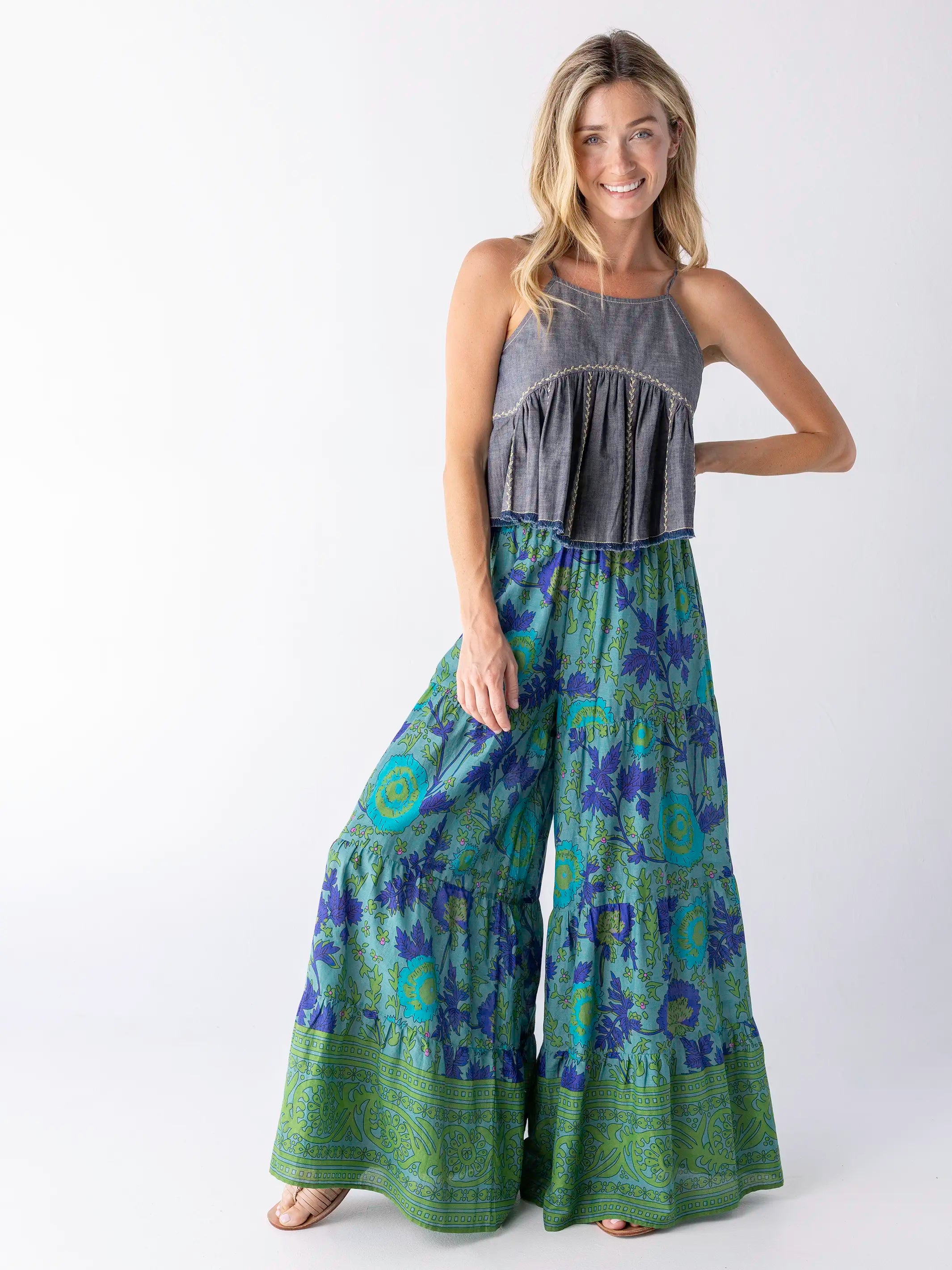 Patti Palazzo Pant - Leafy Teal Cotton