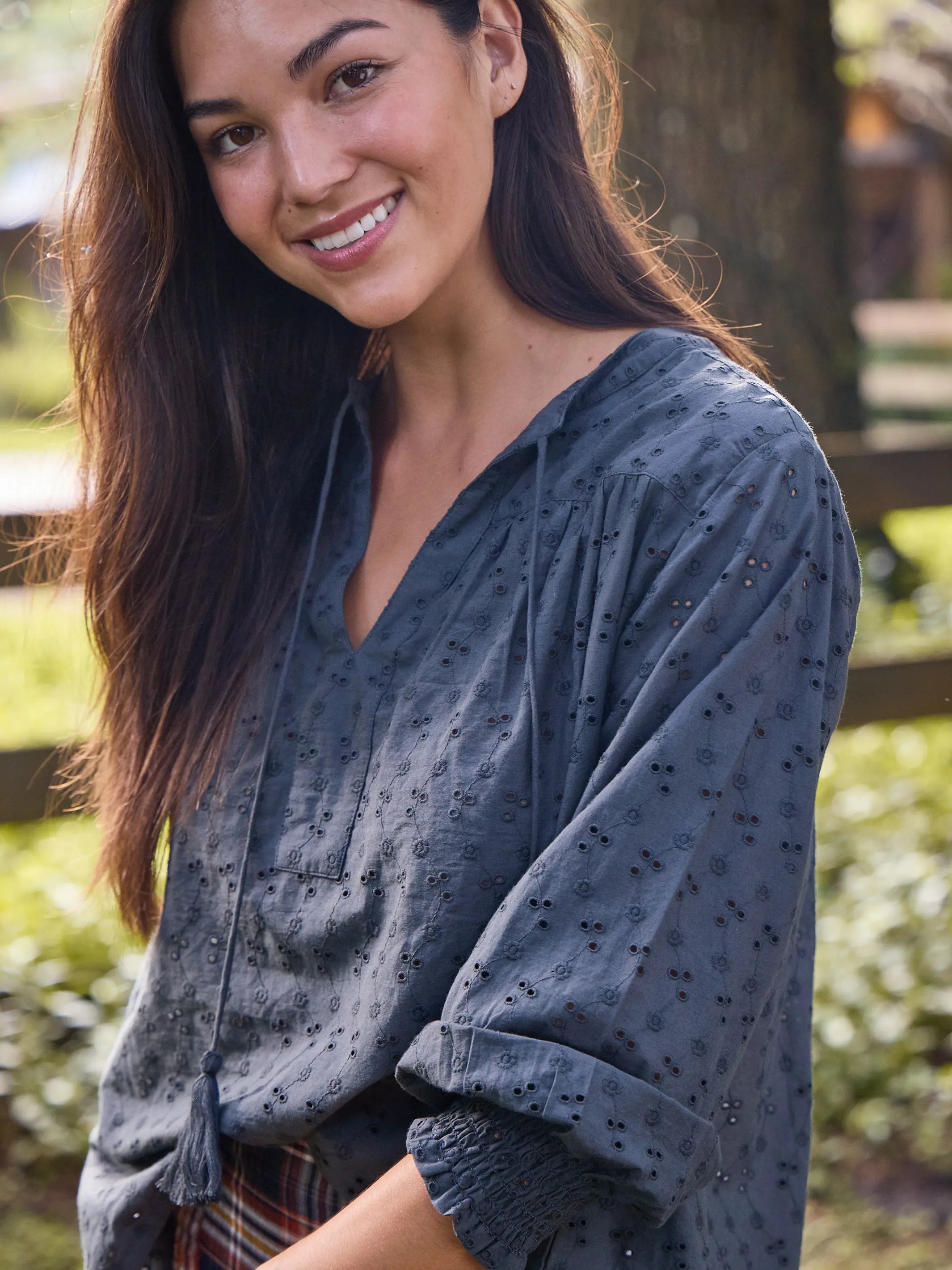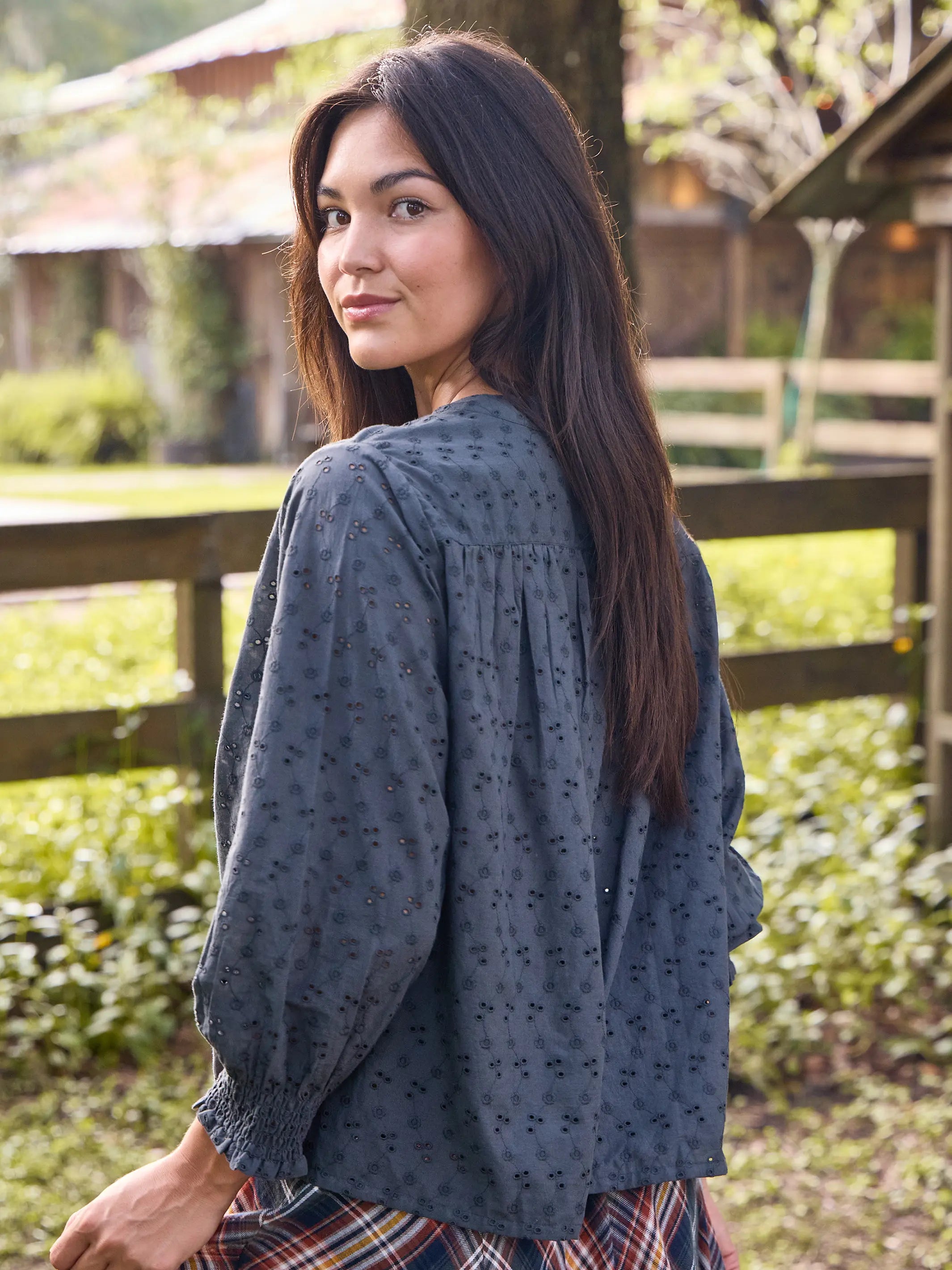 Dara Top - Charcoal Cotton Eyelet