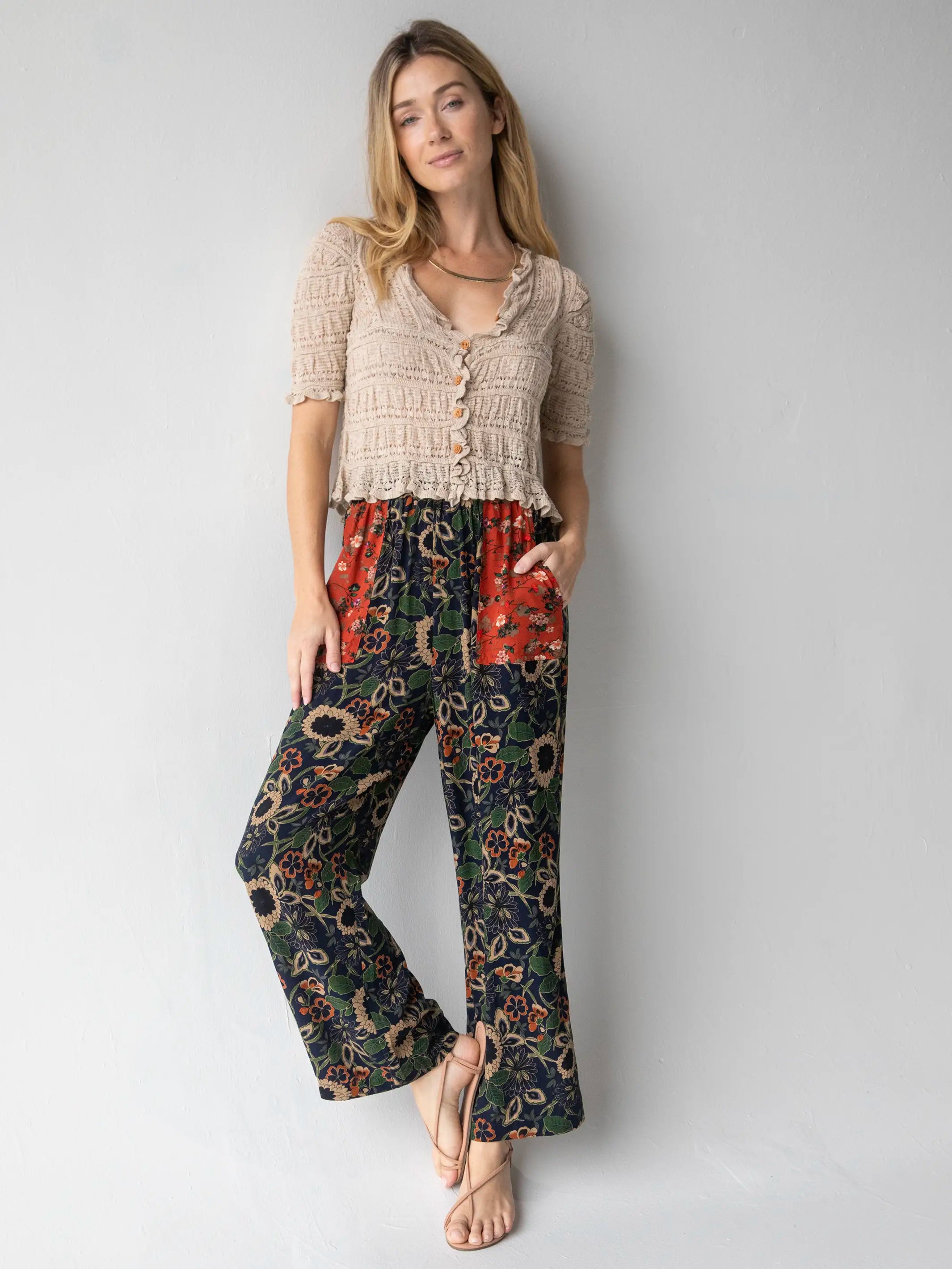 Beckett Pant - Navy Dahlias Rust