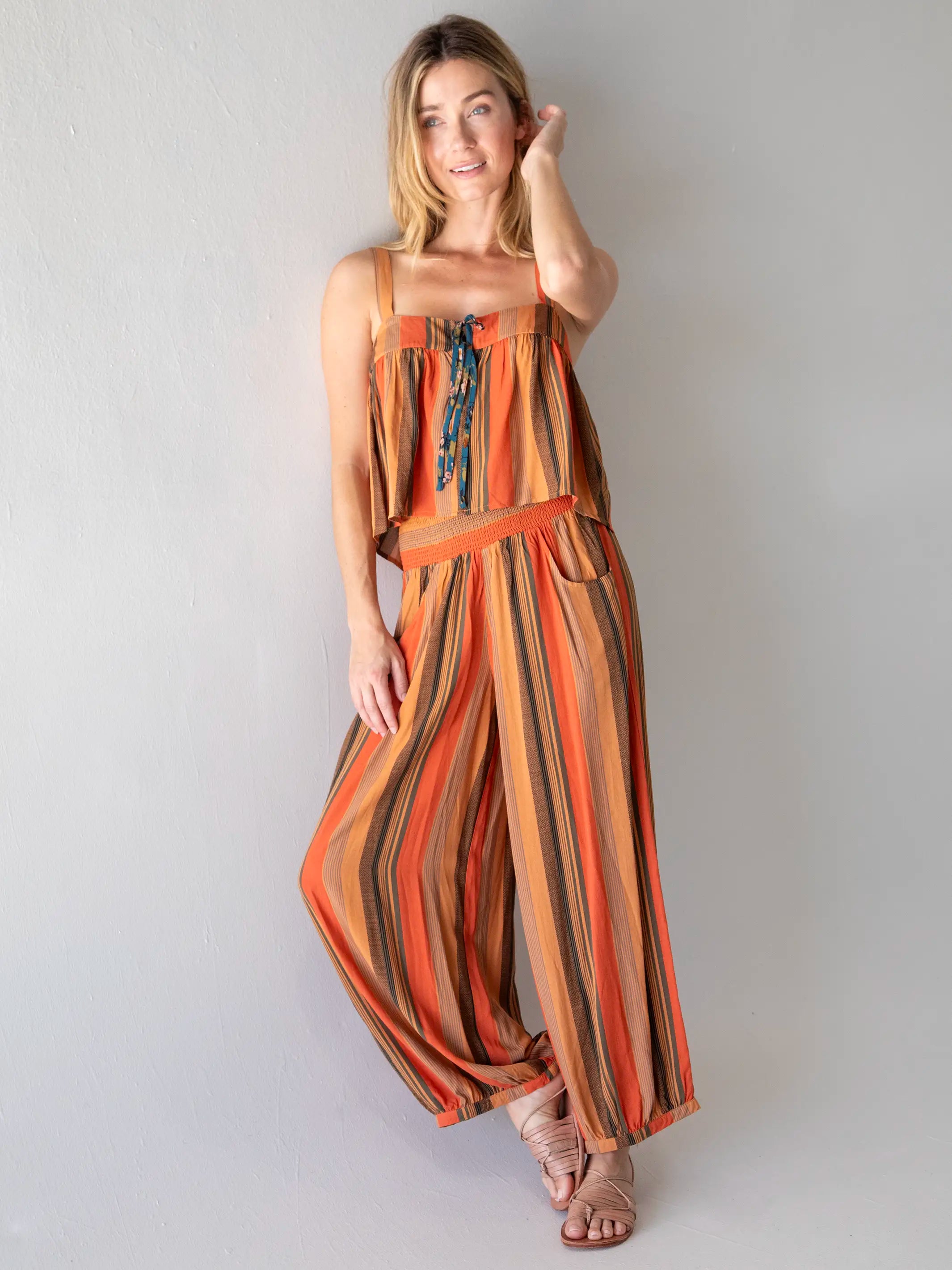 Around The Town Pant - Rust Stripes