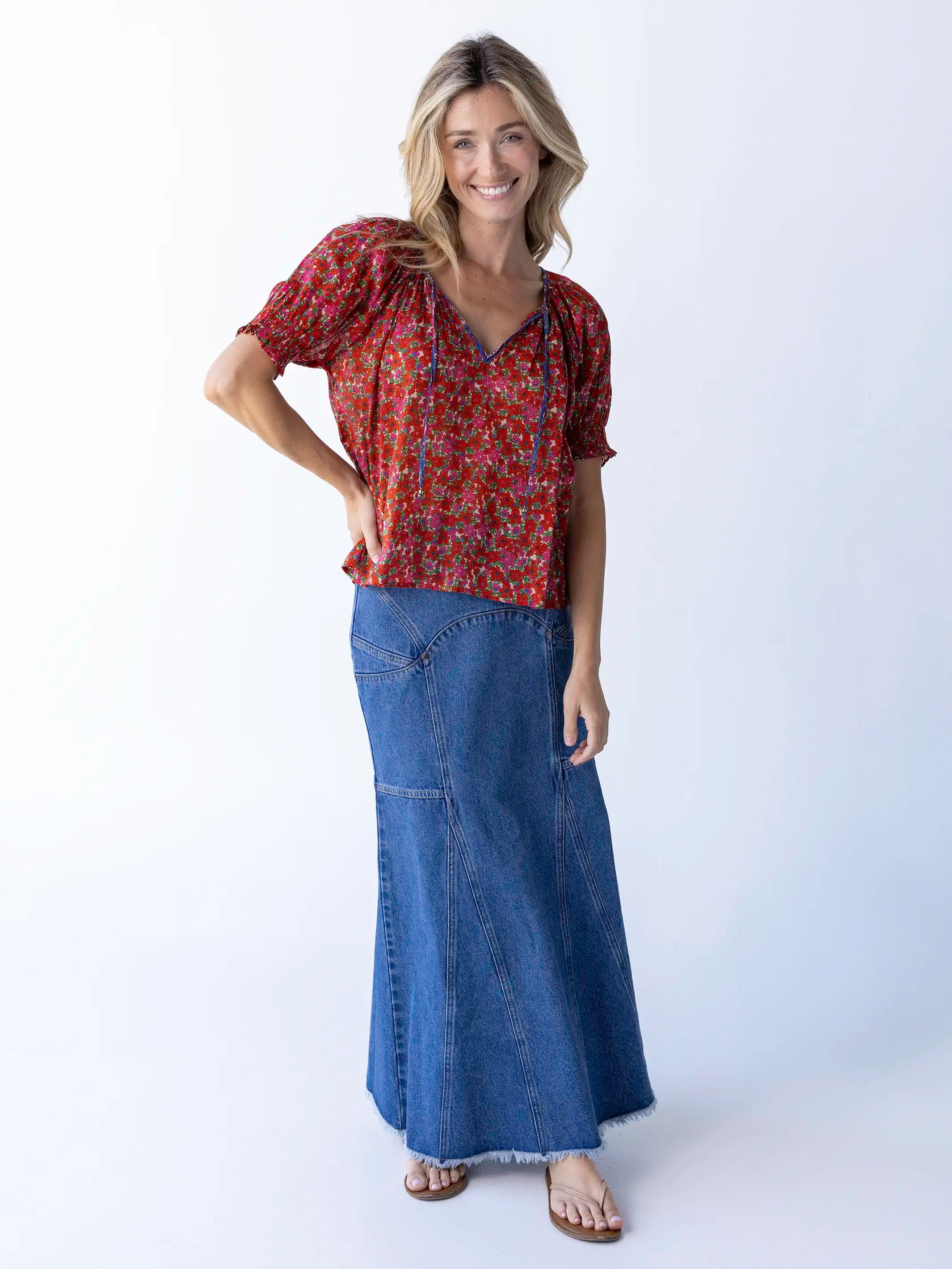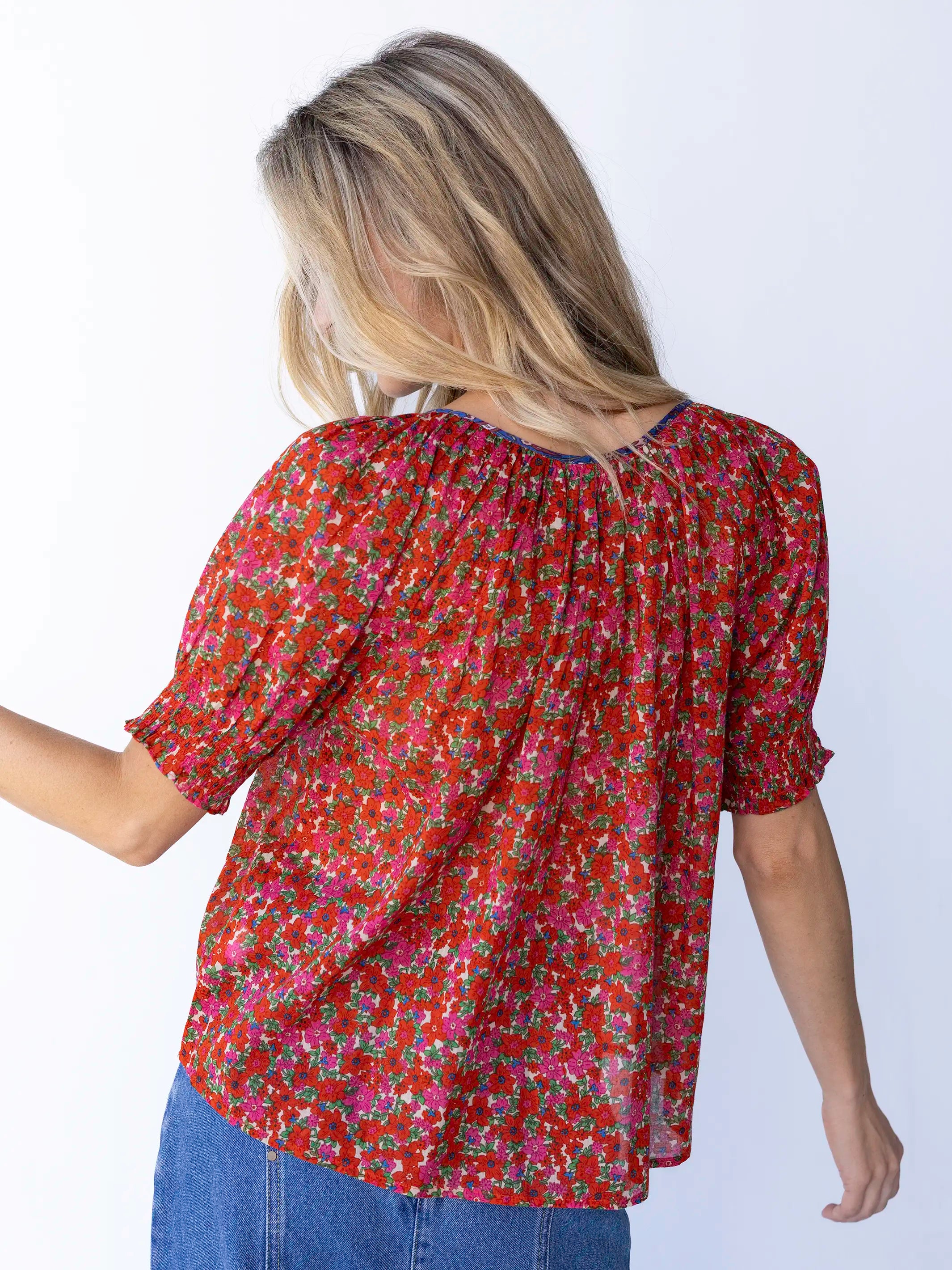 Camille Cotton Swing Top - Pink Painted Vines