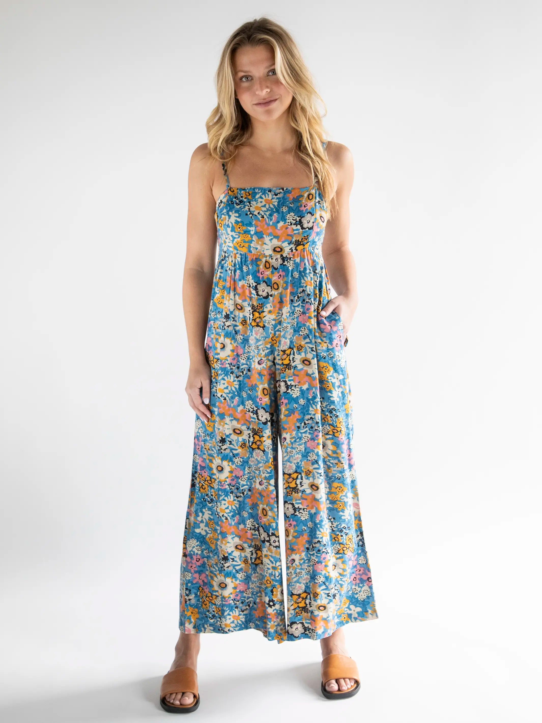 Bailey Jumpsuit - Blue Tan Floral
